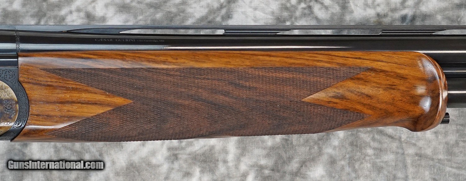 Description: New Caesar Guerini Magnus Field 12GA with 28" factory choke tubed barrels, parallel game rib with solid side-ribs. Case-color hardened action with side-plates featuring fine English scrolls, game scenes inlaid in gold. Factory Prince of Wales pistol grip field stock with schnabel forearm. Includes factory case, chokes and tools. Call 626-633-1002 for pricing. SOLD Shotgun Gauge: 12 Gauge |