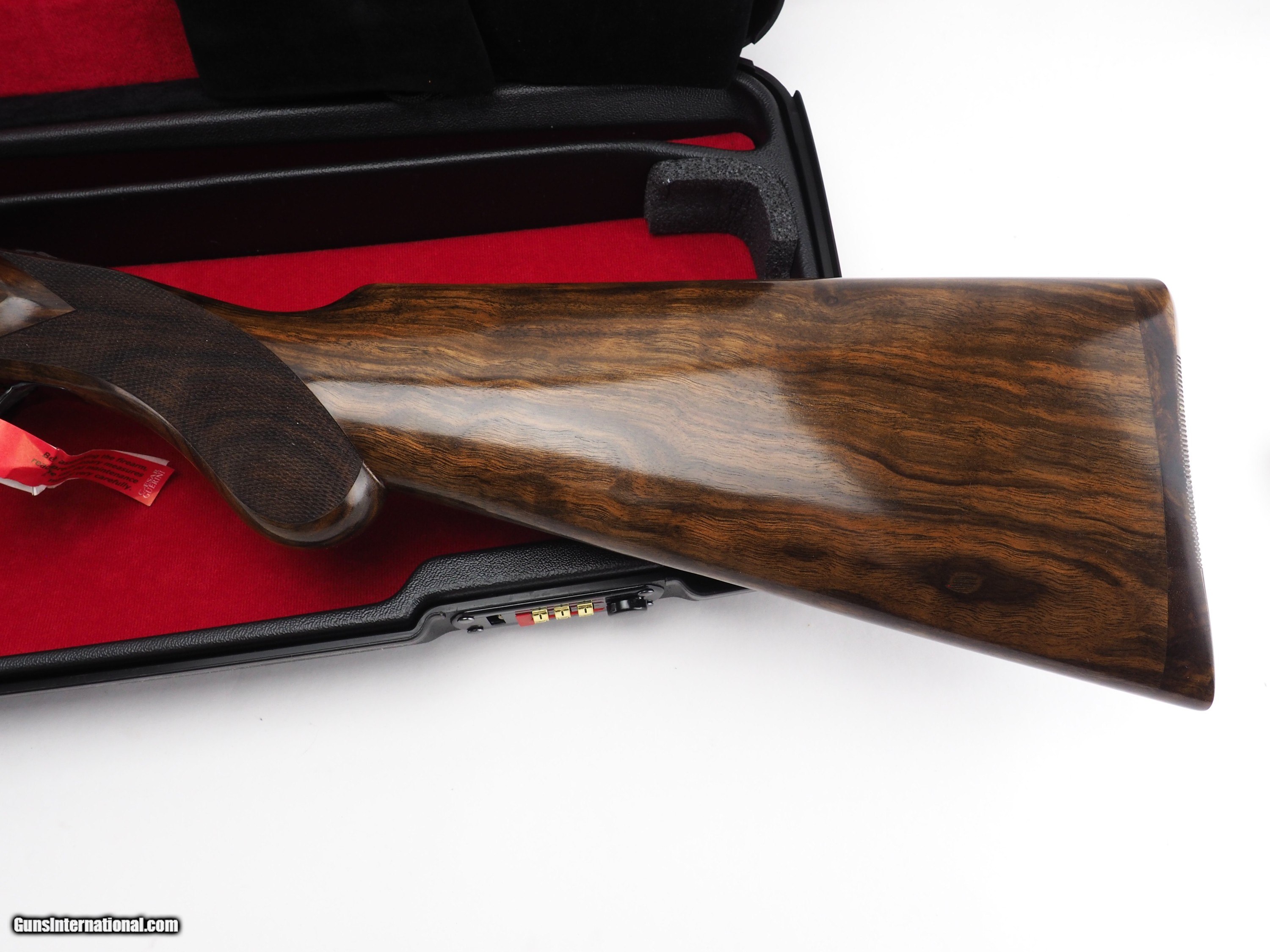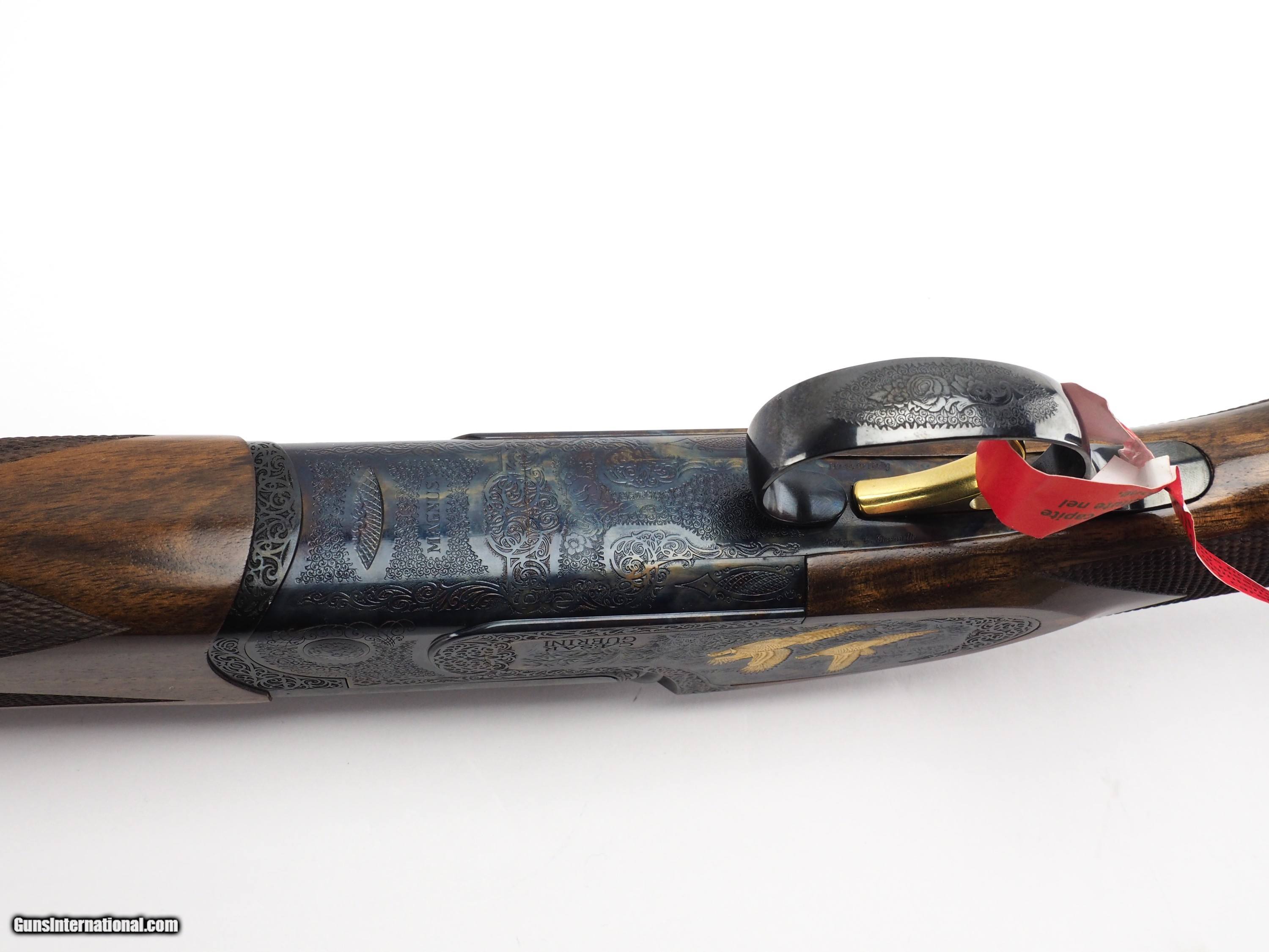 Description: The New Magnus is designed to appeal to the discriminating hunter who appreciates a classic shotgun with timeless qualities. The elegantly sculpted sideplate receiver features upgraded engraving with ornamental scroll, depicting game scenes in gold against a richly colored case hardened finish. The unique sideplates have no pins or screws allowing for a perfectly smooth receiver with uninterrupted engraving. The Magnus series receives a deluxe grade Turkish walnut stock with a traditional hand rubbed oil finish to enhance the highly figured grain. The meticulously fitted wood butt plate allows for snag-free gun mounts and adds a custom look and feel. The grip is in the Prince-of-Wales style with the length-of-pull being fourteen and one-half inches. The fore-end is a schnabel design and incorporates an Anson button latch identical to the most expensive British guns. Every Caesar Guerini field gun comes with a velvet lined lockable hard case and five precision patterned flush chokes (CYL, IC, M, IM, F). A plastic choke case is also included. Make: Caesar Guerini Model: Magnus Field Gauge: 20ga Barrel Lengh: 28" (71cm) Hand: Righ DAC: 1.5" Drop at heel: 2.25" Length of pull: 14.75" Cast at heel: .12" Cast at toe: .3" Pitch: 5° Breech to comb: 7.5" Reach: 4.25" Avg. Weight*: 6lbs. 10oz. Stock Finish: Hand rubbed oil Avg. Barrel Weight: 28”- 1.18kg(2.60lbs.) Chokes: 5 nickel plated, flush fitting chokes Accessories: Choke wrench and case SOLD |