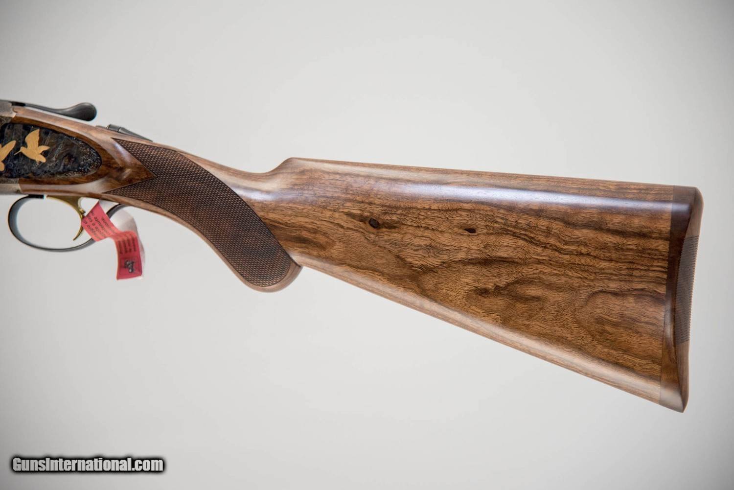 Description: This Caesar Guerini Magnus Field features is chambered in 28 gauge with a 28″ standard flat rib barrel. 5 nickel plated, flush fitting chokes and Caesar Guerini hard case come standard. The Magnus Field is designed to appeal to the discriminating hunter who appreciates a classic shotgun with timeless qualities. The elegantly sculpted sideplate receiver features upgraded engraving with ornamental scroll, depicting game scenes in gold against a richly colored case hardened finish. The unique sideplates have no pins or screws allowing for a perfectly smooth receiver with uninterrupted engraving. The Magnus series receives a deluxe grade Turkish walnut stock with a traditional hand rubbed oil finish to enhance the highly figured grain. The meticulously fitted wood butt plate allows for snag-free gun mounts and adds a custom look and feel. The grip is in the Prince-of-Wales style with the length-of-pull being fourteen and one-half inches. The fore-end is a schnabel design and incorporates an Anson button latch identical to the most expensive British guns. SOLD Manufacturer: CAESAR GUERINI Model: MAGNUS FIELD Condition: NEW Barrels: 28 INCHES Gauge Info: 28 |
