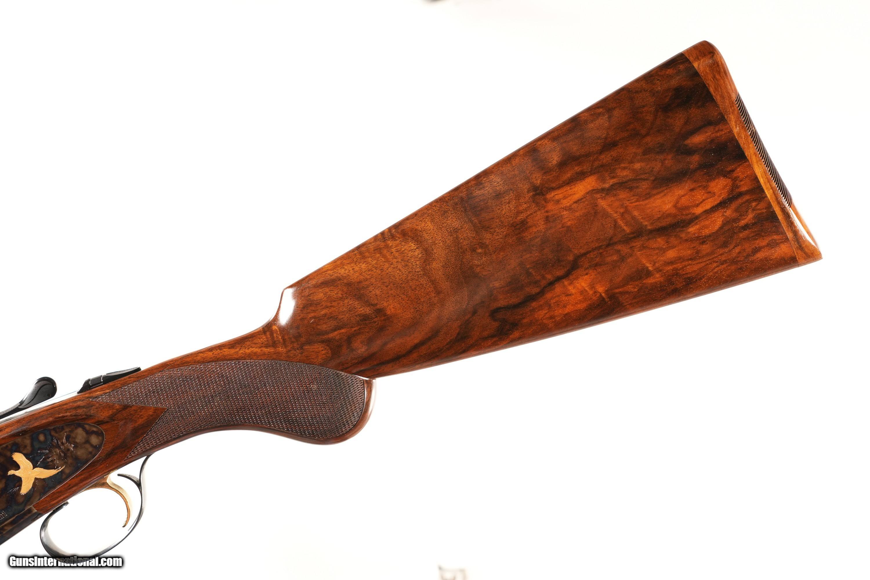 Description: Caesar Guerini Magnus Jaspe 20 Ga over under with 32" Vent rib Bbl 3" chamber with Single Selective trigger and ejectors. Case-colored receiver with gold inlaid game scenes of waterfowl. 32' vent rib Bbl, 14 1/4" LOP over checkered wood butt plate 1 1/2" DAC 2 " DAH Cast off 3mm 6 lbs 14 oz mfd 2008. Interchangeable chokes (5 total w/ wrench). Housed in factory luggage case with slipcovers. Condition, Extremely fine with some light handling marks and light impressions in wood. Mechanically excellent • Free Shipping, No Credit Card Fees. • Lay-a-way available for this firearm. • 1/3 Down, a 1/3 in 30 Days 1/3 in 60 Days. SOLD Shotgun Gauge: 20 Gauge Manufacturer: Caesar Guerini Model: Magnus Jaspe Serial Number: 116572 Barrel Length: 32 |