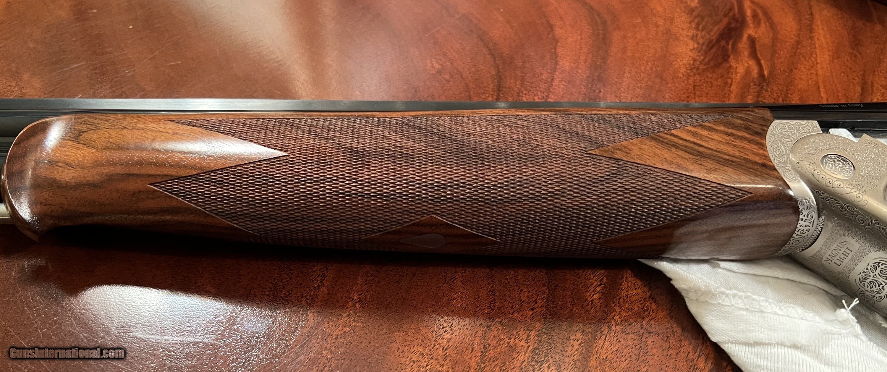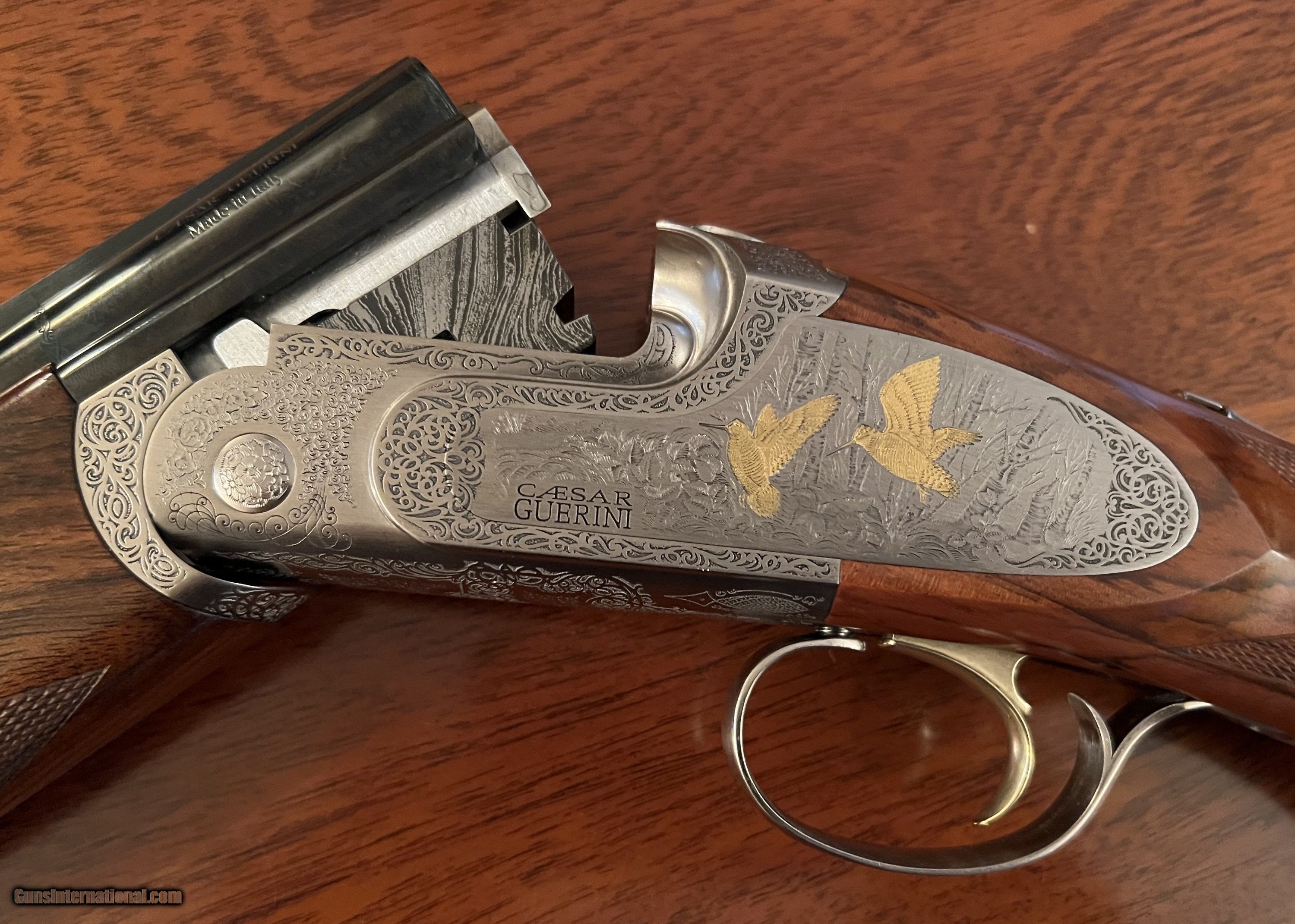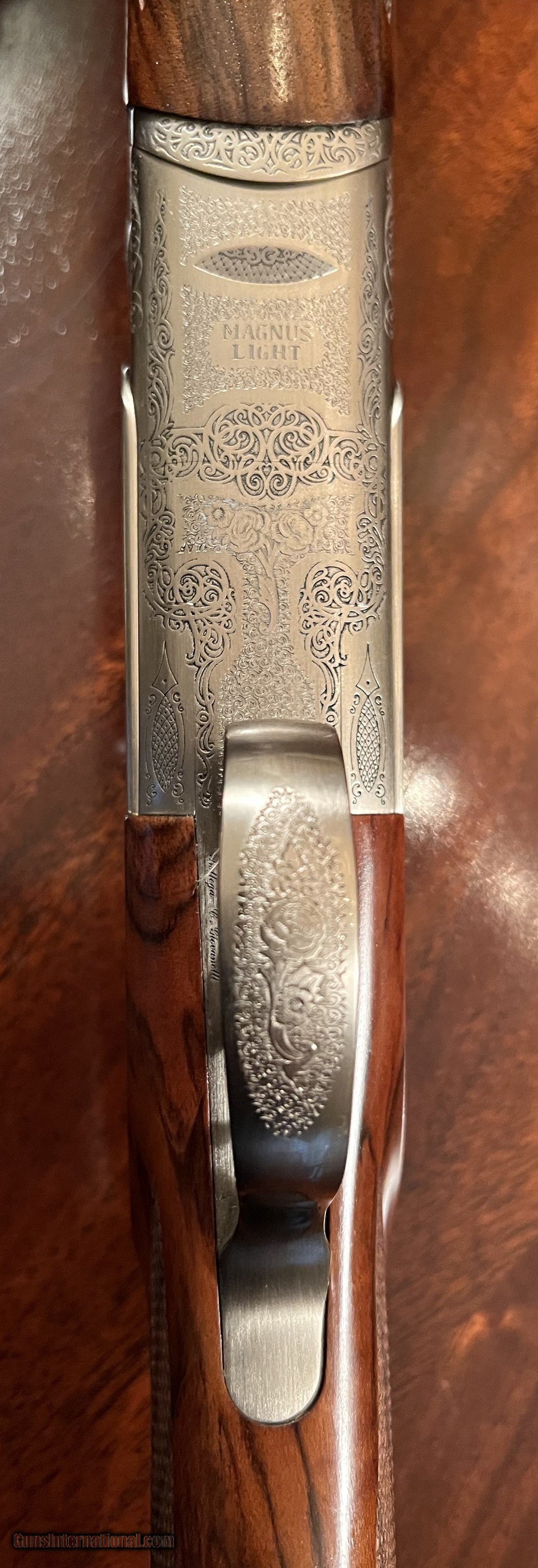 Description: Rare example with 30 inch barrels. Easy to carry all day at 5 lbs 8 ounces! Extreamly well maintained with only very minor handling marks. Less than 1,000 rounds fired. Ornamental scroll engraving with gold game inlays. Highly figured Deluxe Turkish Walnut (#3 grade) wood. Set of 5 flush Selecta chokes. Custom Negrini travel case. Shotgun Gauge: 20 Gauge Manufacturer: Caesar Guerini Model: Magnus Light Serial Number: 171394 Barrel Length: 30 Chambers: 2 Ejectors: yes Condition: Excellent Metal Condition: Excellent Wood Condition: Excellent Bore Condition: Pristine Barrels: 2 Barrel Type: O/U Action: forged nickel alloy Stock: Deluxe Turkish Walnut Stock Comb: 1.5 Stock Heel: 2.25 Stock Cast: .12" Off Fore End: Schnabel Butt Pad: Wood LOP: 14 5/8 Rib: vented Finish: Blued Weight: 5 lbs 8 oz Manufacture Date: 2/25/2022 Chokes: C-IC-M-IM-F Engraving: ornamental scroll Extras: inlayed gold game Case: Negrini Item Location: Mt Pleasant, SC Grips: Prince of Wales Price: $6,150.00 Contact Seller |