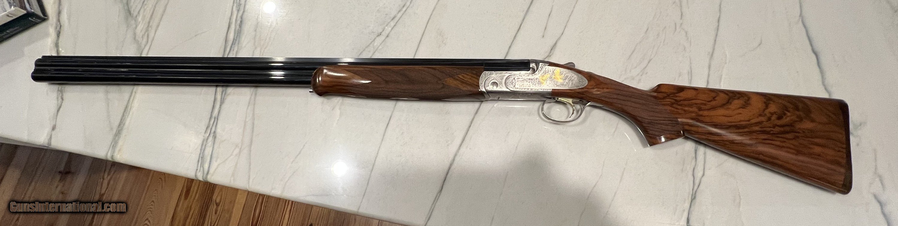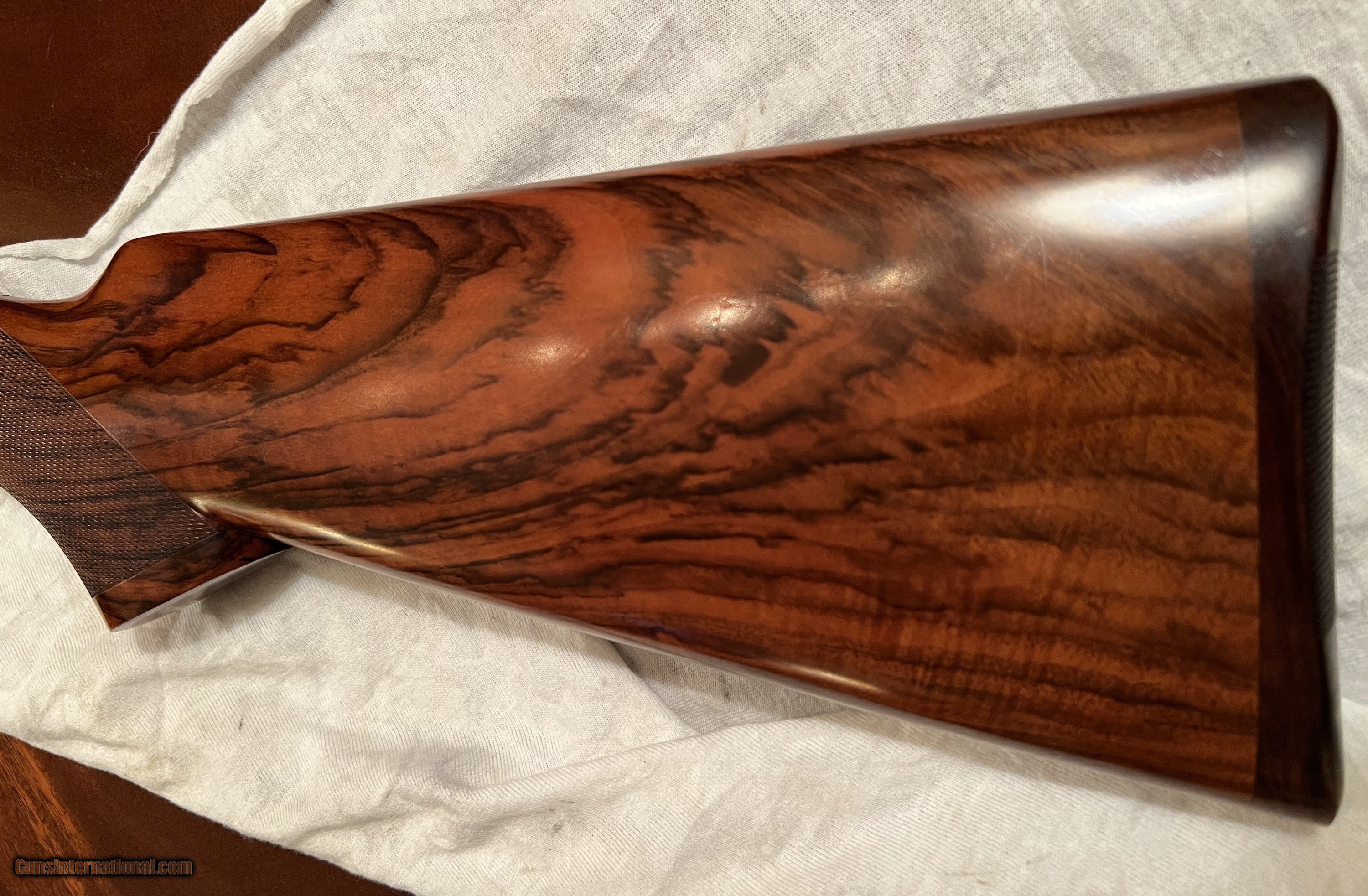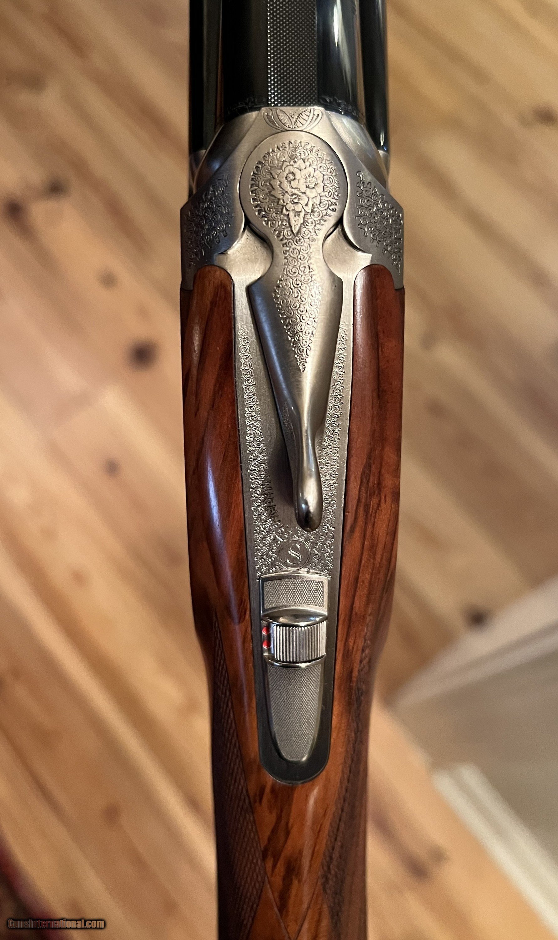 Description: Rare example with 30 inch barrels. Easy to carry all day at 5 lbs 8 ounces! Extreamly well maintained with only very minor handling marks. Less than 1,000 rounds fired. Ornamental scroll engraving with gold game inlays. Highly figured Deluxe Turkish Walnut (#3 grade) wood. Set of 5 flush Selecta chokes. Custom Negrini travel case. Shotgun Gauge: 20 Gauge Manufacturer: Caesar Guerini Model: Magnus Light Serial Number: 171394 Barrel Length: 30 Chambers: 2 Ejectors: yes Condition: Excellent Metal Condition: Excellent Wood Condition: Excellent Bore Condition: Pristine Barrels: 2 Barrel Type: O/U Action: forged nickel alloy Stock: Deluxe Turkish Walnut Stock Comb: 1.5 Stock Heel: 2.25 Stock Cast: .12" Off Fore End: Schnabel Butt Pad: Wood LOP: 14 5/8 Rib: vented Finish: Blued Weight: 5 lbs 8 oz Manufacture Date: 2/25/2022 Chokes: C-IC-M-IM-F Engraving: ornamental scroll Extras: inlayed gold game Case: Negrini Item Location: Mt Pleasant, SC Grips: Prince of Wales Price: $6,150.00 Contact Seller |