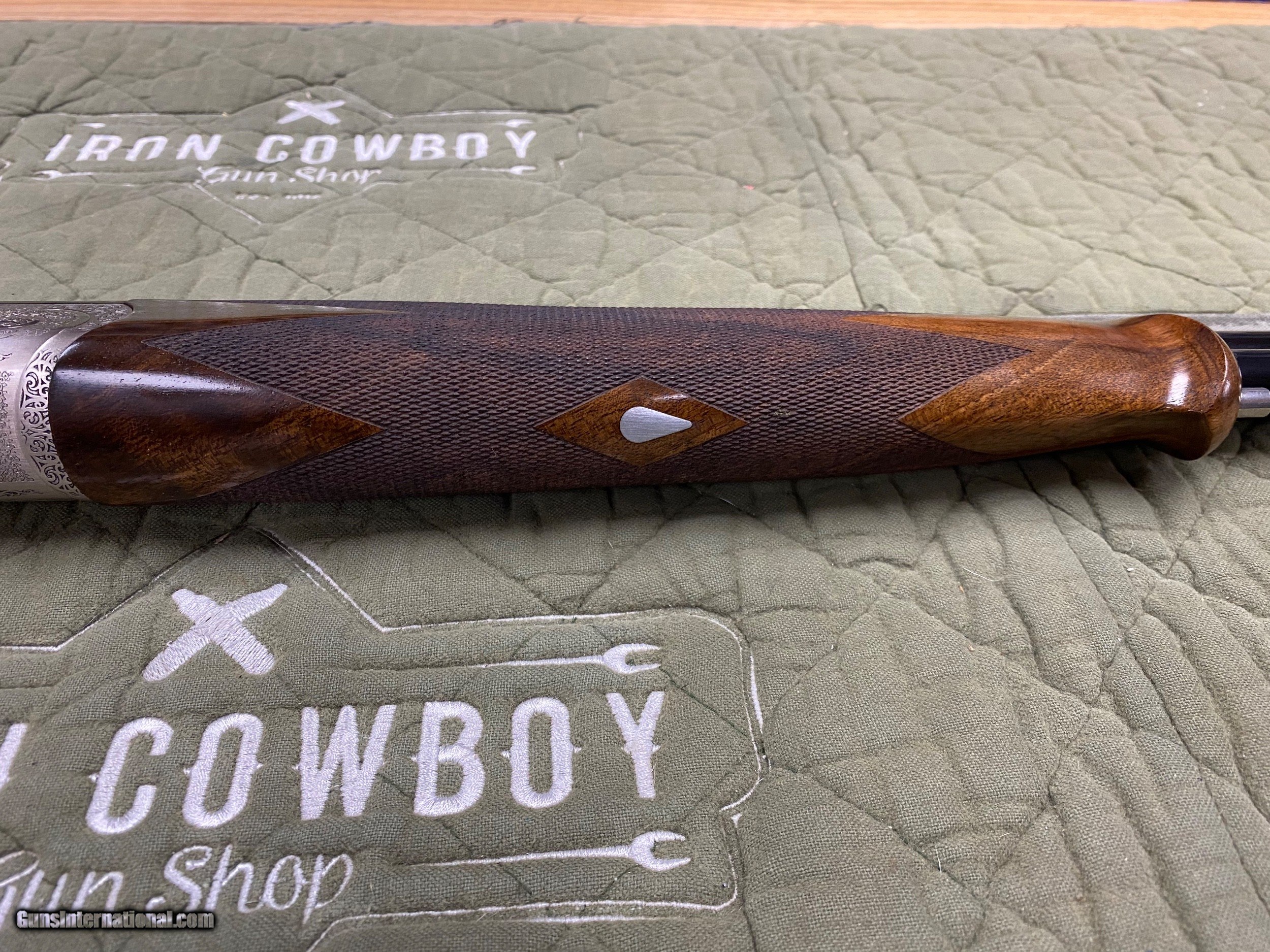 Description: Up for sale is a new Caesar Guerini Magnus Light Field. This fine game gun is chambered in 20 ga and sports 28-inch barrel. Below you will find a description from CG’ssite. WHY IRON COWBOY? Buying a fine gun is not shopping cart transaction. Buying from Iron Cowboy means buying a gun from me. It means buying from someone as passionate as you about fine guns. I want you to get the right gun both for you and your application, and my advice reflects what I feel is in your best interests. No clerks, no ‘other’ salesman – just me. Odds are we will have a discussion on my shooting experience with the gun you are after, and every transaction gets my personal best. Thank you, as always, for looking. GROWTH THROUGH SERVICE Everyone is a customer at some point. I’ve taken the good from my experiences and apply it to my transactions. I’ve taken the bad and sworn to never pass that same experience on to my customers. I strive to act the way I would respect someone else for acting. In this way, Iron Cowboy differentiates itself with growth through service and repeat business. It’s my commitment to you, my customer. Iron Cowboy Gun Shop, LLC Edward Kondraski III (570) 733-2042 Chosen as the best new shotgun by a panel of experts at Outdoor Life Magazine, the Magnus Light is truly an extraordinary shotgun. Now we have decided to make it even better. We have dramatically enhanced the engraving with ornamental scroll and gold game scenes while not changing the price. It weighs an astounding six pounds in twelve gauge and barely over five pounds in 20, 28, and .410 gauges. Every detail is carefully considered to reduce weight and maintain balance. The frame and fore-end iron are machined from a solid forging of the best aircraft grade aluminum alloy. Durability is insured through the use of hardened steel at all high-wear points. To make the gun as light as possible and maintain perfect balance, we hollow the stock and craft the fore-end hardware from the same alloy as the receiver. If you hunt demanding terrain or just appreciate a light, responsive bird gun, the Magnus Light is the shotgun of choice. Every Caesar Guerini field gun comes with a velvet lined lockable hard case and five precision patterned flush chokes (CYL, IC, M, IM, F). A plastic choke case is also included. There are three things you want to take hunting with you; a well-trained dog, a good friend and a great shotgun… we can help you with the shotgun. A great bird gun has to become like an extension of your body. To accomplish this we make shotguns that are light and well balanced. Special care is taken in engineering the barrels to be as light and responsive as possible. On the other end of the shotgun we calibrate the weight of the stock by hollowing out the stock bolt hole, ensuring the gun is perfectly balanced. To further enhance handling we utilize a trim stock design that features swept back open radius pistol grips that enhance the natural pointing characteristics of the shotgun while making the gun comfortable to carry during long days in the field. We take the time to perfectly fit a matching walnut butt plate to make the gun easy to mount without catching on your clothing. These features are focused on making our shotguns as functional as they are beautiful. That is what makes a great shotgun. Gauge 20 Barrel length 28”(71cm) Avg. Weight* 5lbs. 7oz. Receiver finish Nickel Alloy finish with Invisalloy™ protective finish Stock Finish Hand rubbed oil Checkering 26 lines per inch Recoil Pad Wood butt plate Chamber 3" Top Rib Width 7mm Width 6mm (.24") parallel and ventilated Center Rib Non-Ventilated Forcing Cones Standard Avg. Barrel Weight 28"-1.21kg (2.66lbs.) Avg. Bore . .626, Chrome lined Chokes 5 nickel plated, flush fitting chokes Sight(s) Silver front bead Fore-end Schnabel Trigger Single selective Single selective Single selective Safety Manual (Automatic as an option) Accessories Choke wrench and case Case Plastic hard case with fit interior and velvet stock sleeve and barrel sleeve Overall length of gun 45.5" (28" barrels) SOLD |