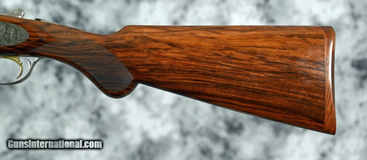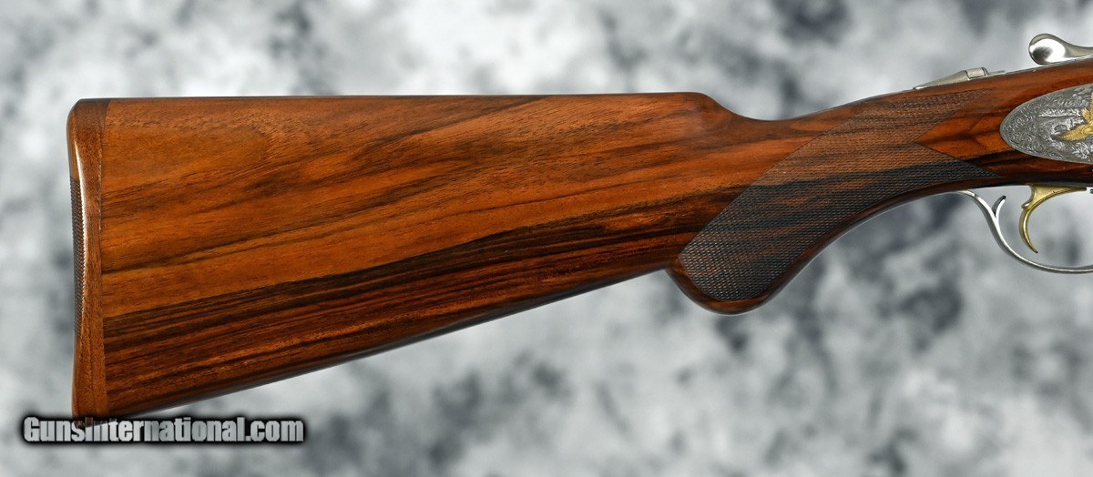 Description: Pre-owned, in very good condition, Caesar Guerini Magnus Light 20ga. Features factory flush choke tube 28" barrels with flat game rib. Engraved side plate receiver featuring elegant scroll engraving with gold game scenes and fixed selectable trigger. Highly figured right hand Prince of Wales with wood checkered butt plate and Schnabel forend. Comes in factory case. Pacific Sporting Arms is the largest dealer in high grade shotguns in the world. SOLD Shotgun Gauge: 28 Gauge |