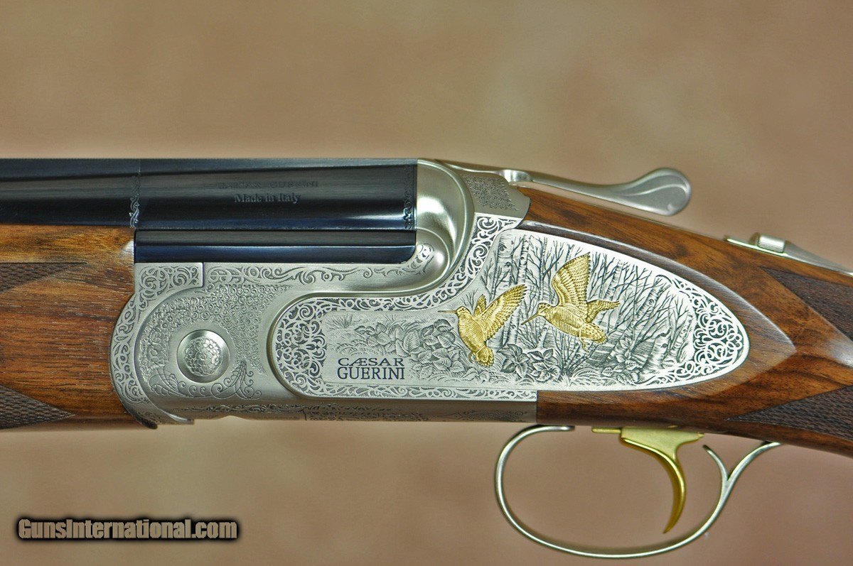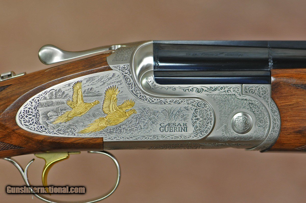 Description: New Caesar Guerini Magnus Sporting 12ga. Features factory extended choke tube 30" barrels with flat sporting rib. Engraved side plate receiver featuring gold Pheasants and Woodcock. Highly figured right handed Sporting stock with adjustable comb and Schnabel forend. Comes in factory case. SOLD Shotgun Gauge: 12 Gauge |