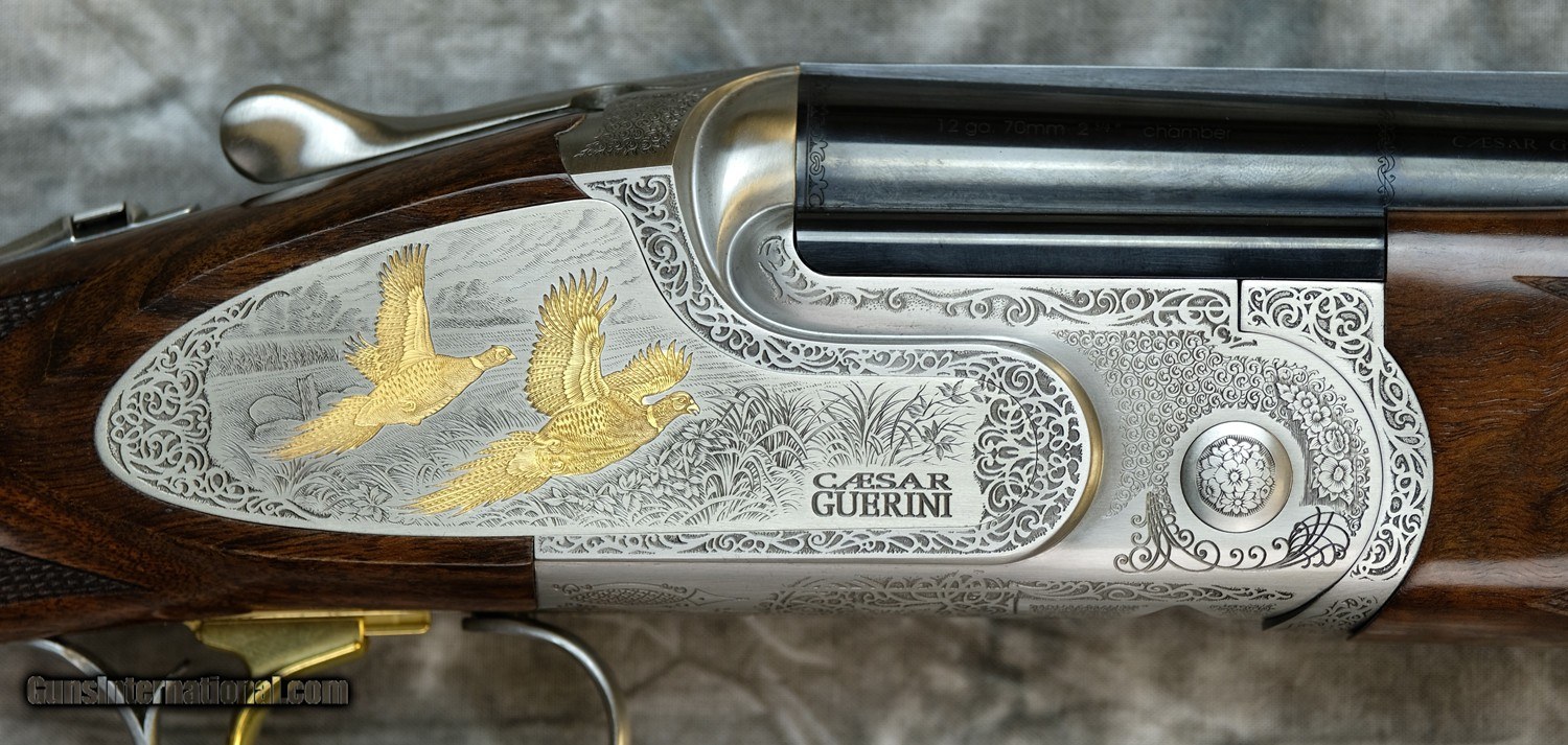 Description: New Caesar Guerini Magnus Sporting 12GA with 32" factory choke tubed barrels, factory flat tapered rib. Silver nitride finished action with fully engraved sideplates featuring fine English scrolls framing game scenes inlaid in gold. Factory pistol grip stock with right-hand palmswell and schnabel forearm. Includes factory case, chokes and tools. Call 626-633-1002 for pricing. SOLD Shotgun Gauge: 12 Gauge |