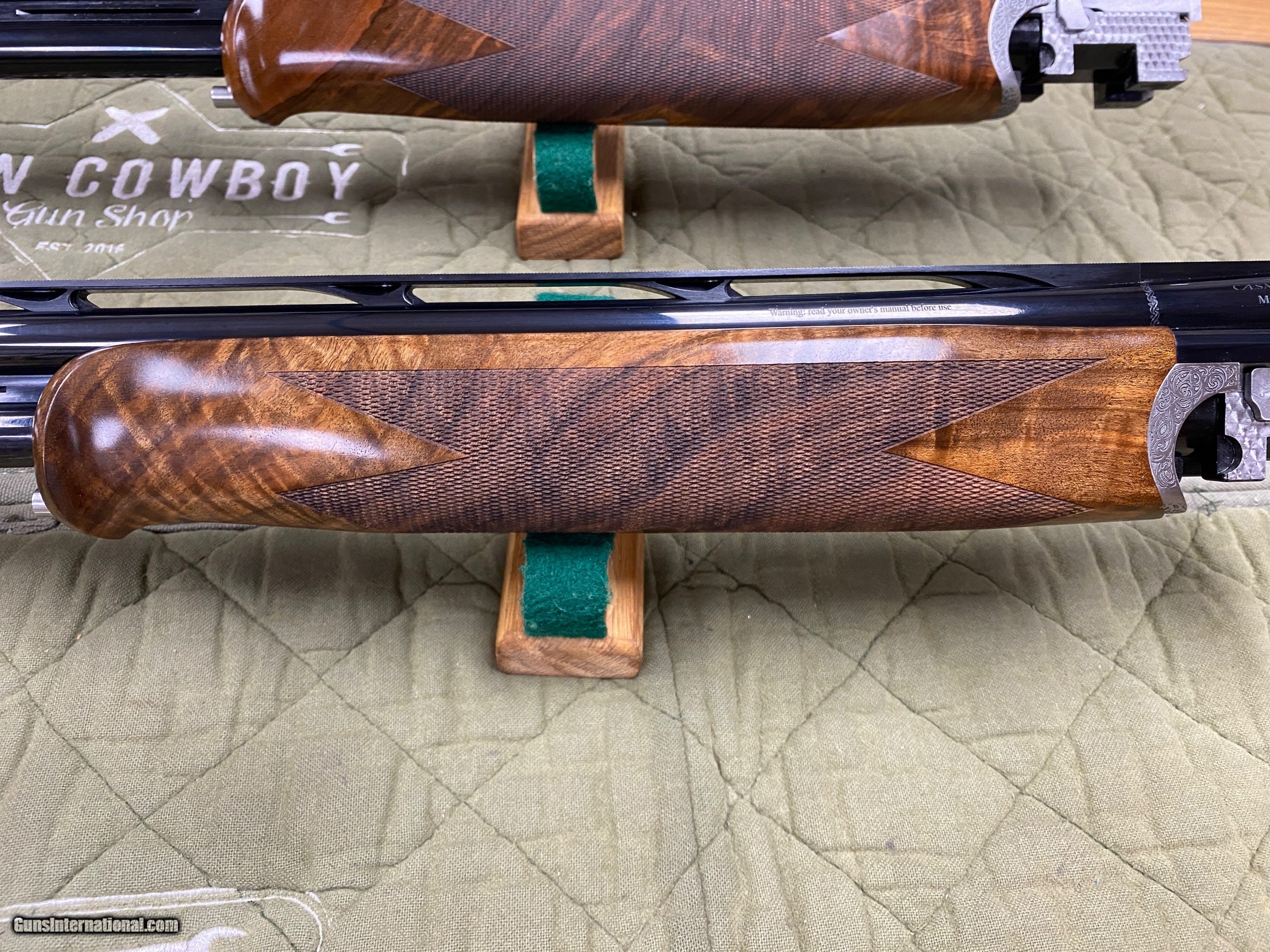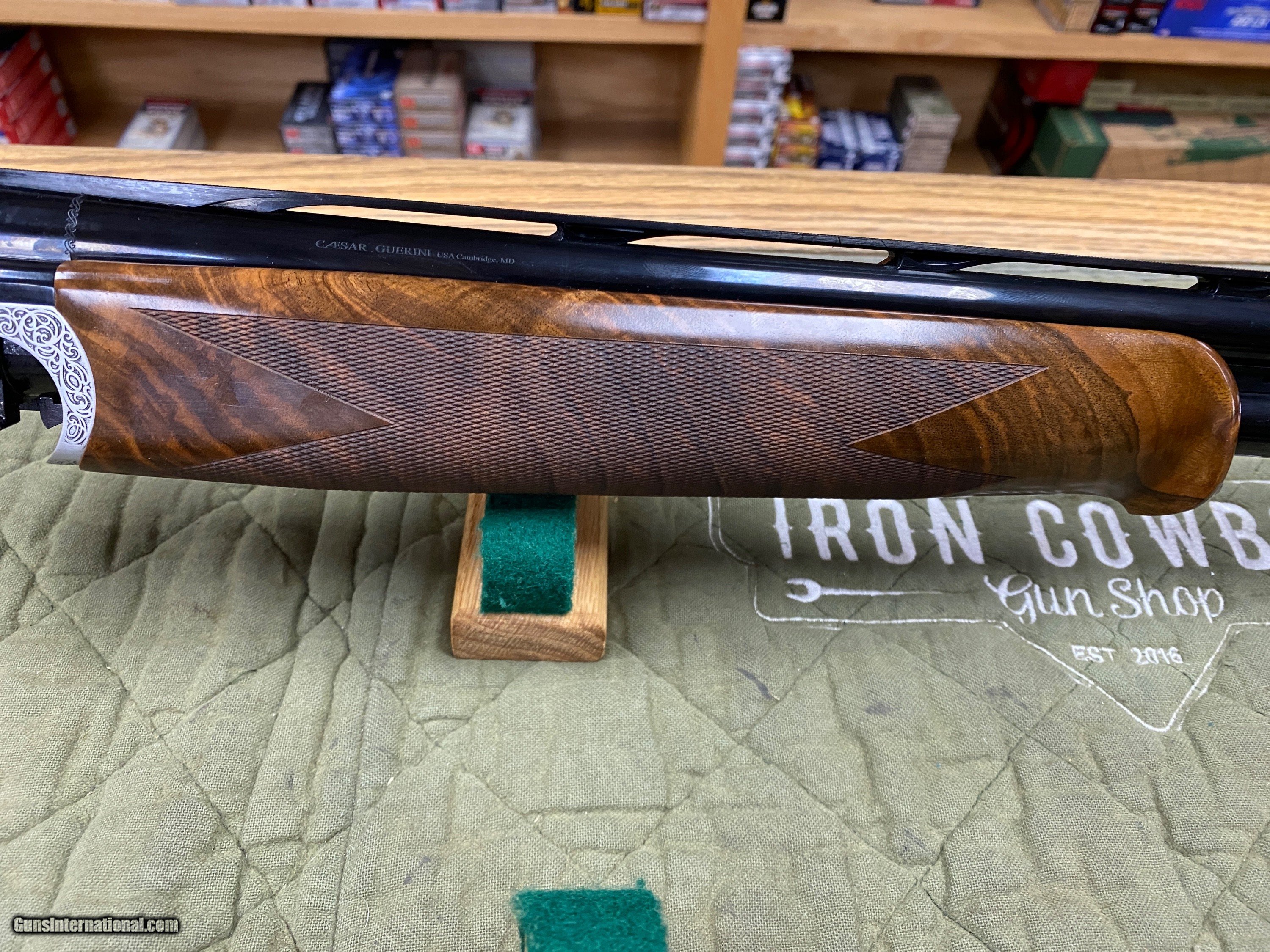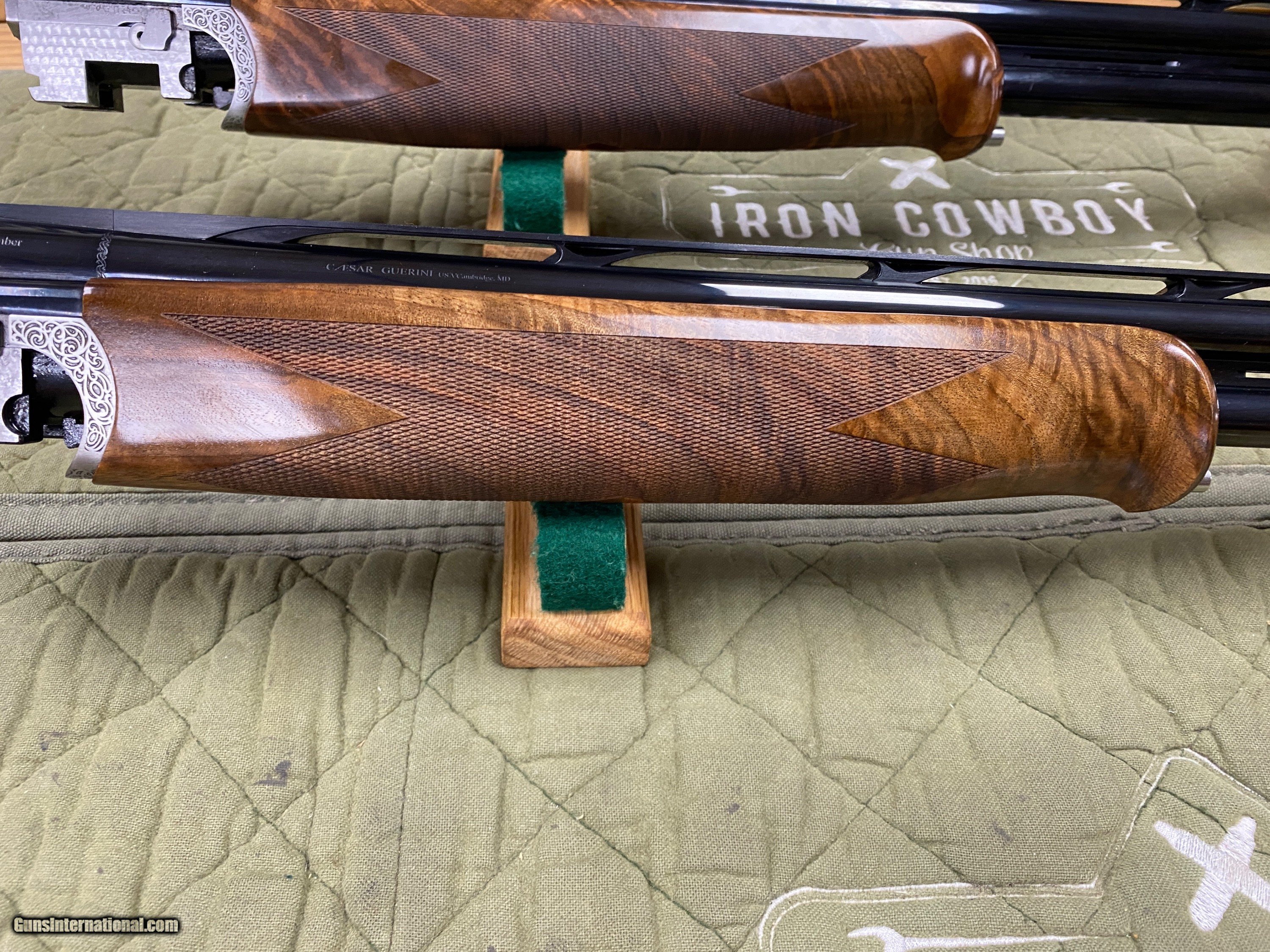Description: Up for sale is a like new Caesar Guerini Magnus Sporting. This combo set has 20GA & 28GA barrels. Both are 32’’ Long with a full set of factory chokes. Both sets of barrels have Hi-Viz sights installed. This remains unfired in the box. It does have one small mark in the wood from safe storage the iPhone camara has a hard time showing it. This was taken in on trade. Below you will find a description from CG’ssite. WHY IRON COWBOY? Buying a fine gun is not shopping cart transaction. Buying from Iron Cowboy means buying a gun from me. It means buying from someone as passionate as you about fine guns. I want you to get the right gun both for you and your application, and my advice reflects what I feel is in your best interests. No clerks, no ‘other’ salesman – just me. Odds are we will have a discussion on my shooting experience with the gun you are after, and every transaction gets my personal best. Credit cards are welcome; however, a 3% fee will apply Thank you, as always, for looking. GROWTH THROUGH SERVICE Everyone is a customer at some point. I’ve taken the good from my experiences and apply it to my transactions. I’ve taken the bad and sworn to never pass that same experience on to my customers. I strive to act the way I would respect someone else for acting. In this way, Iron Cowboy differentiates itself with growth through service and repeat business. It’s my commitment to you, my customer. Iron Cowboy Gun Shop, LLC Edward Kondraski III (570) 733-2042 Seems as though all you hear about these days is the word change; changing your diet, changing your job, changing your mind. While not all change is good, it is the only means to progress. So we decided to analyze what we could do to make one of our most popular guns even better. Staying with the same general theme, we dramatically improved the engraving. Then we removed some weight out of the muzzle end of the barrels to make the gun handle better. Additionally, we created a new top rib featuring an 8 to 10mm taper and gracefully sculpted the rib posts. Finally, we re-shaped the stock and increased the mass for enhanced recoil reduction. The only thing that did not change is the price. Now that is progress at its finest. Magnus Sporting Gauge 20 28 Barrel length 30" (76cm), 32" (81cm) 32" (81cm) Avg. Weight** 7lbs. 6oz., 7lbs. 8oz. 7lbs. 6oz. Receiver finish Nickel with Invisalloy™ protective finish Stock Finish Hand rubbed oil Hand rubbed oil Hand rubbed oil Checkering 26 lines per inch Recoil Pad Black rubber Chamber 2 3/4" 2 3/4" Top Rib Width 10mm (.4") parallel and ventilated Rib Height* 6mm Center Rib Ventilated Forcing Cones 5" DuoCon 4" DuoCon Avg. Barrel Weight 30"-1.49kg (3.28lbs.) 32"-1.52kg (3.35lbs.) 34"-1.56kg (3.44lbs.) 30"-1.35kg (2.98lbs.) 32"-1.41kg (3.11lbs.) 32"-1.35kg (2.98lbs.) Avg. Bore .626, Chrome lined .554, Chrome lined Chokes 6 MAXIS competition chokes Sight(s) White Bradley style front Silver center bead Fore-end Schnabel Trigger New DTS trigger system with two trigger pull weight options, take up, over travel and length of pull adjustments. Safety Manual (Automatic as an option) Accessories Stock and trigger wrench, choke case, friction choke wrench Case Plastic hard case with fit interior and velvet stock sleeve and barrel sleeve Overall length 50.25” (32” barrels) STOCK DIMENSIONS Magnus Sporting 20GA & 28GA Drop at comb 1.5" Drop at heel 2.25" Length of pull* 14.75" (adjustable) Cast at heel .15" Cast at toe .315" Pitch 5° Breech to comb 7.75" Reach* 4.25" (adjustable) SOLD Antique: Yes Shotgun Gauge: 20 Gauge |