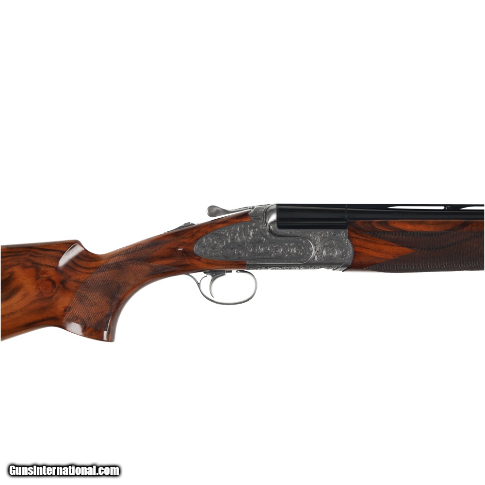 Description: Caesar Guerini has produced a truly stunning sporting shotgun with the Maxum. From its Deluxe grade Turkish walnut stocks to the hand finished fully engraved reciever and side plates, it is truly unique amongst others in the sporting clays course. This slightly used example is no diferent. The stocks show little to no wear and the barrels are much the same. this example of the magnus has an aftermarket recoil pad, increasing the length of pull to 15 inches, making it perfect for longer arm shooters. Unfortunately the combination to the case has been lost. Manufactured in: Italy Hand: Right Hand Action Finish: Engraved Action Description: Over / Under Metal Finish: Original Barrel Length: 32 Inches Barrel Condition: Very Good Stock Finish: Original Stock Condition: Very Good Type of Butt: Kick - EEZ Pad Pad Thickness: 1" Grip: Pistol Forend: Checkered Schnabel Cast Amount: 1/4" Extra Barrels: NONE SOLD Manufacturer: Caesar Guerini Model: Maxum Sporting Chambers: 2 3/4 Ejectors: Yes Condition: Preowned Metal Condition: Very Good Action: Over / Under Triggers: Single Gauge Info: 12 Gauge Stock Comb: 1 1/2 Stock Heel: 2 1/8 Stock Cast: Off Fore End: Checkered Schnabel Butt Pad: 1 LOP: 15 Rib: Matted Vent Rib Finish: Original Weight: 8.6 lbs Chokes: 2 Factory Chokes Extras: NONE Case: Makers ABS Case |