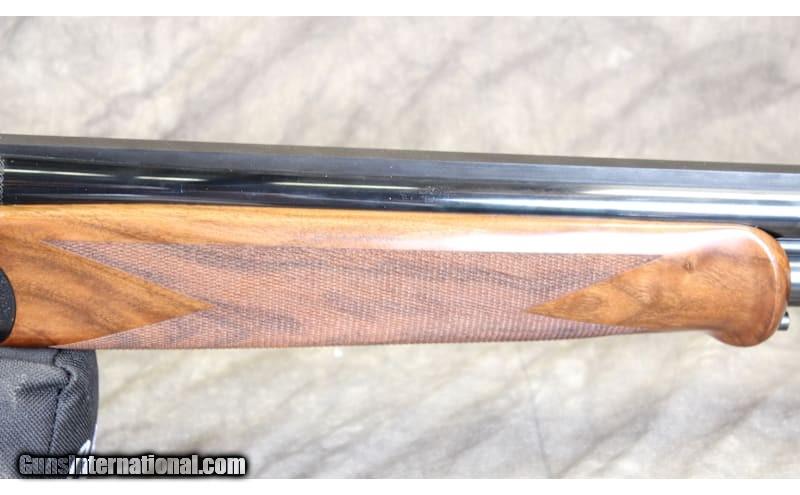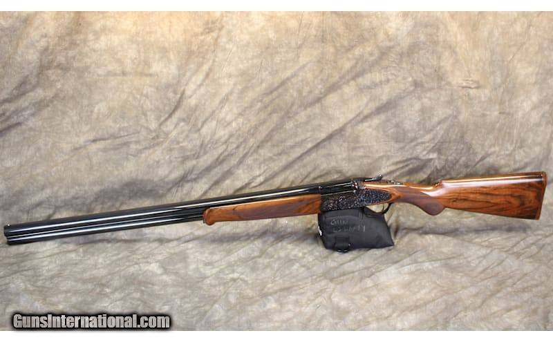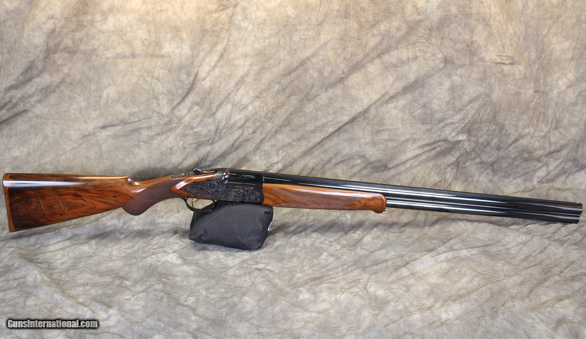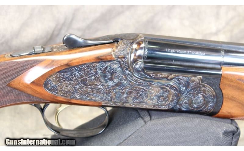 Description: The Maxum is a true collector grade shotgun, featuring deep relief floral scroll hand finished engraving on the receiver, side plates, and forearm assembly. The hand work and design are from the studios of the world renowned Italian engraving house, Bottega Incisioni C. Giovanelli. An elegant coin finish complements the strikingly detailed classic style engraving, creating a functional work of art. Balancing the beauty of the deeply sculpted engraving is a deluxe grade of Turkish walnut, featuring precision cut 26 lines-per-inch checkering and a natural oil finish hand rubbed to a stunning sheen. The lightweight barrels have solid center ribs to keep out debris, 8-6 mm solid tapered top rib in 12 gauge, completed by a high luster deep blue finish. 12 Gauge Metal Condition: Excellent Wood Condition: Excellent Bore Condition: Excellent Barrels: 30 Weight: 6 lbs Item Location: Nashville, TN Price: $5,999.99 Contact Seller |