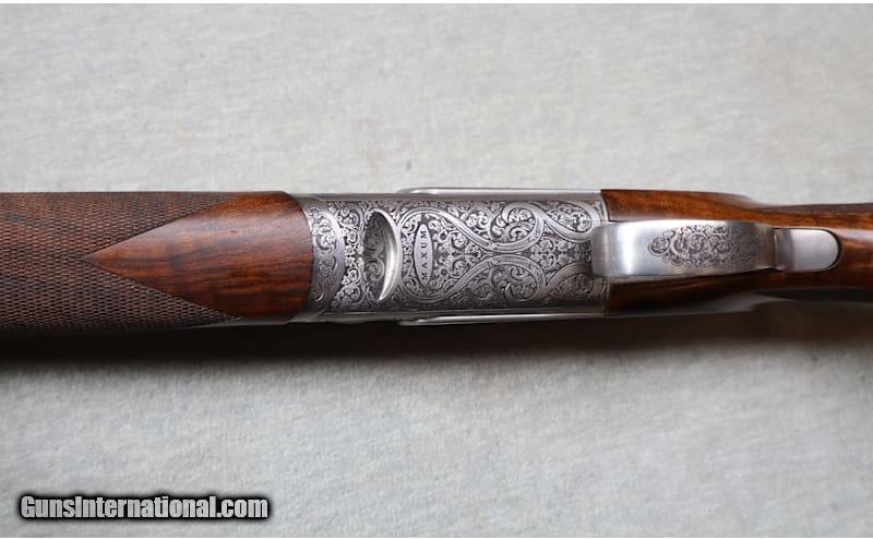 Description: The Maxum is a true collector grade shotgun, featuring deep relief floral scroll hand finished engraving on the receiver and side plates. The hand work and design are from the studios of the world renowned Italian engraving house, Bottega Incisioni C. Giovanelli. An elegant coin finish complements the strikingly detailed classic style engraving, creating a functional work of art. Balancing the beauty of the deeply sculpted engraving is a deluxe grade of Turkish walnut, featuring precision cut 26 lines-per-inch checkering and a natural oil finish hand rubbed to a stunning sheen. This example has been lightly used and still presents very well. Previous owner added a fiber optic front sight but original white bead sight is still there. The stock shows some small marks. It comes with the orignal case and 5 chokes. This is a high end shotgun that doesn't come on the market very often. A great piece for the collector or anyone who likes fine, high end, firearms. 12 Gauge Chambers: 2 3/4 Metal Condition: good Wood Condition: good Bore Condition: bright Barrels: 32" ribbed barrel with ejectors Triggers: single trigger Stock Dimensions: 15" LOP Fore End: checkered wood Butt Pad: rubber Weight: 7 lbs. 12 oz. Sights: "white bead front sight, fiber optic front sight added Chokes: adjustable choke Item Location: La Vista, NE Price: $7,499.99 Contact Seller |