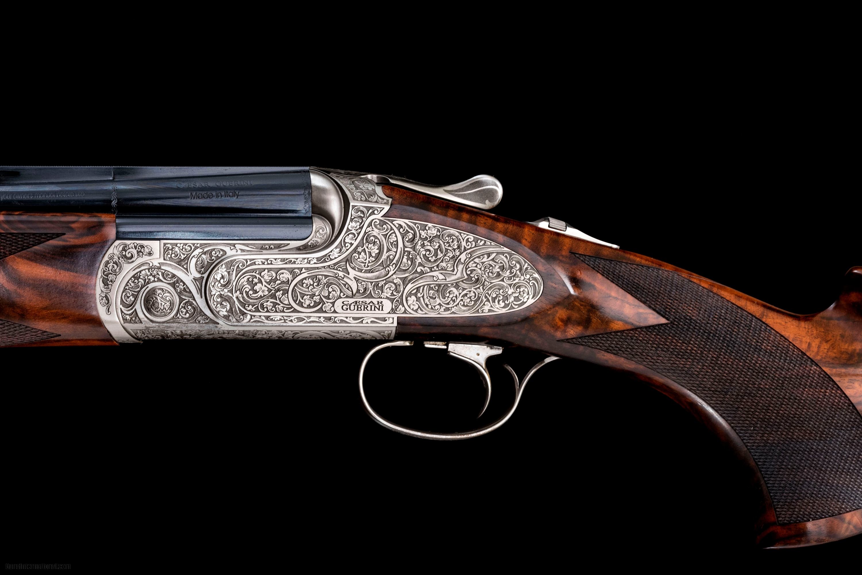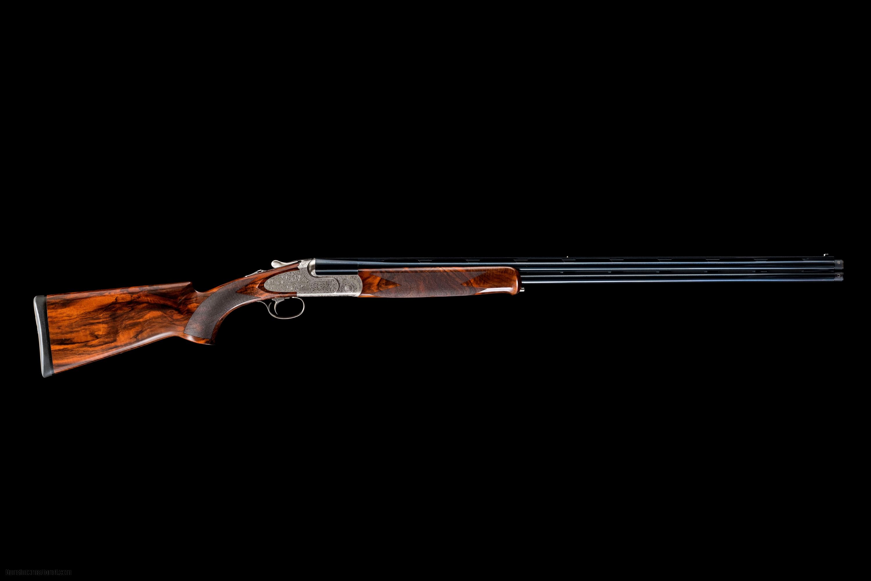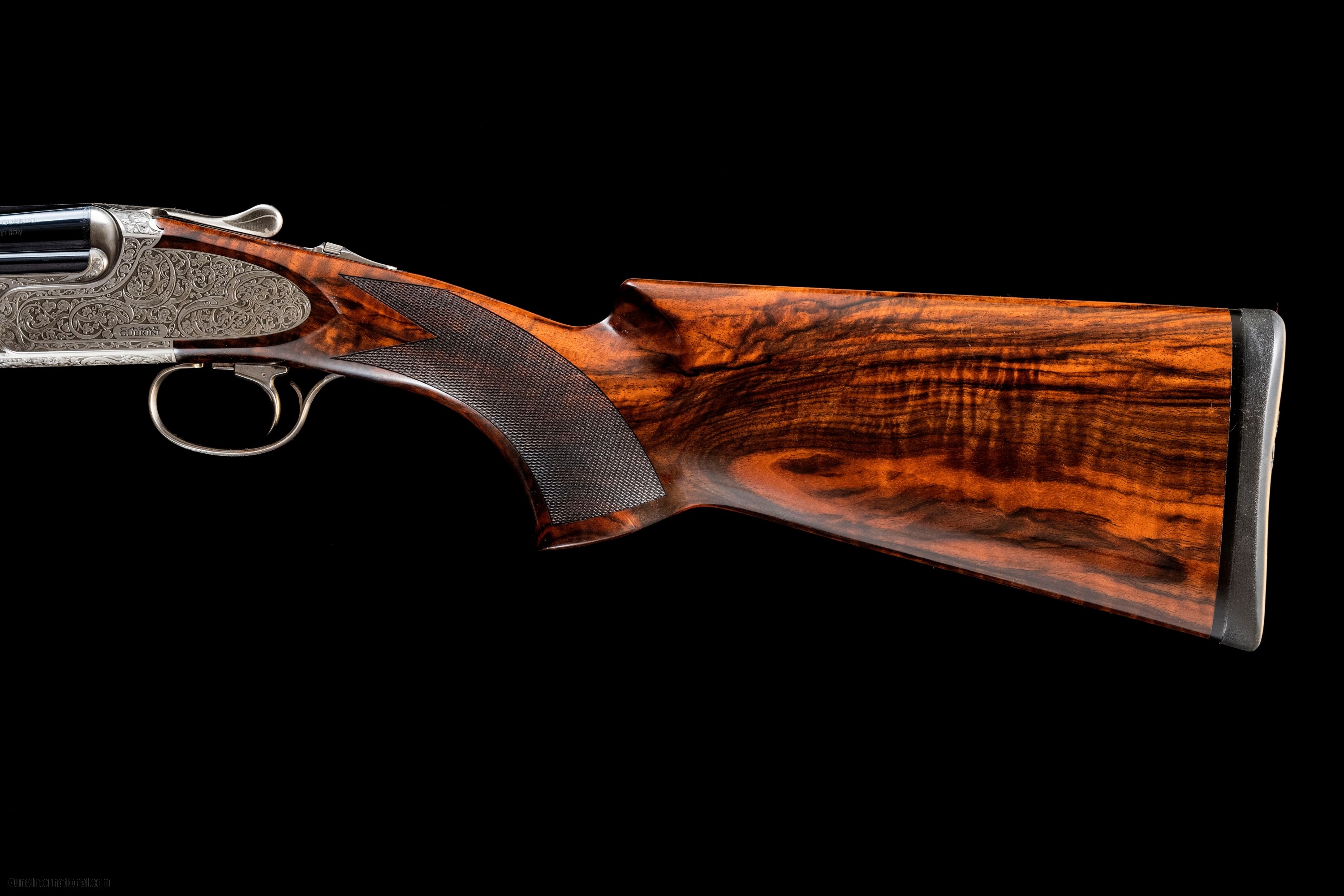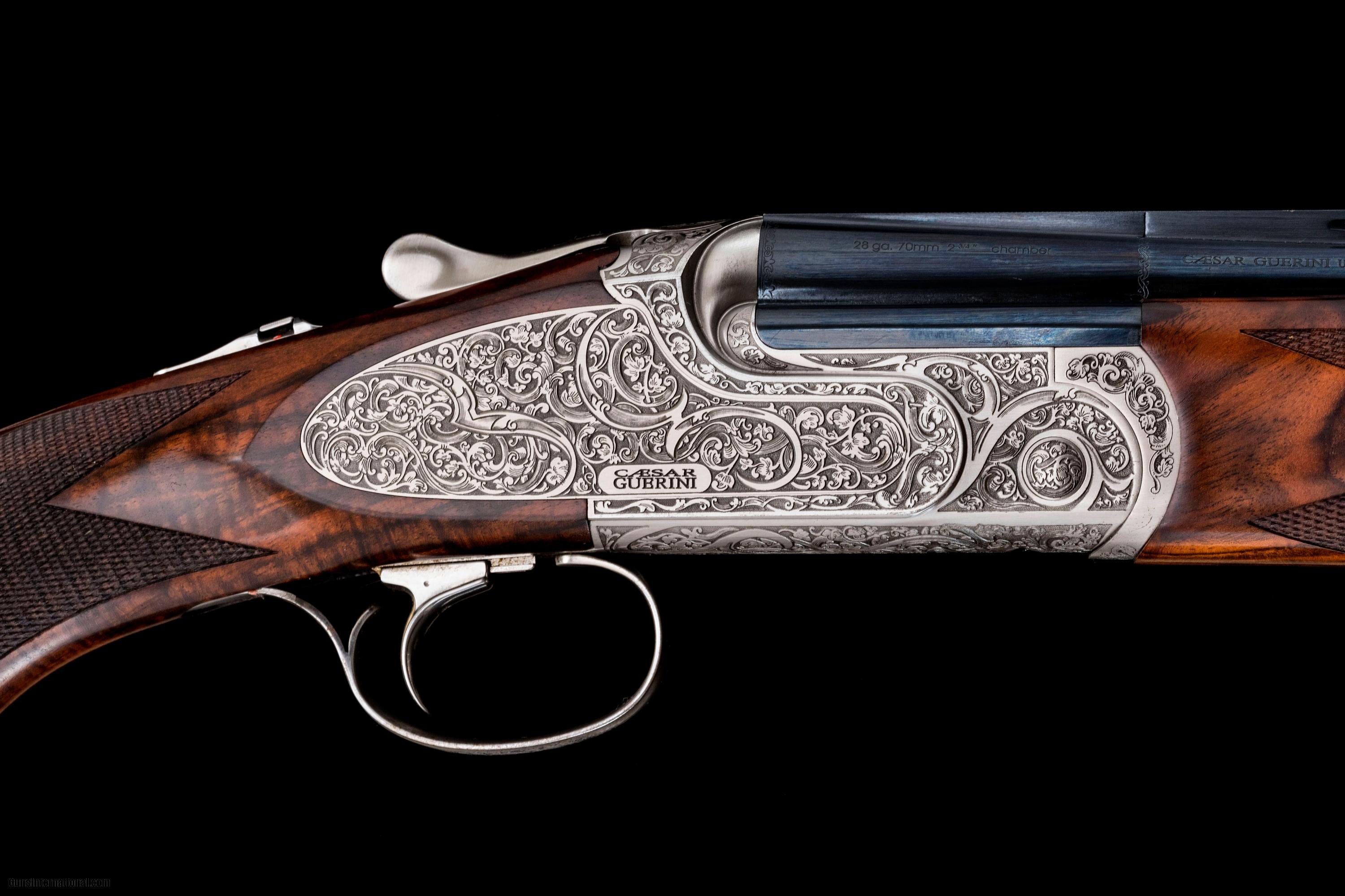 Description: The Maxum Sporting is truly a stunning over/under shotgun. The deep relief gothic scroll hand finished engraving on the receiver, side plates, and fore-end assembly make this sporting gun unique among others on the clays course. The handwork and design are from the studios of the world renowned Italian engraving house, Bottega Incisioni C. Giovanelli. The coin finish frame is painstakingly hand polished. Balancing the beauty of the deeply sculpted engraving is a deluxe grade of Turkish walnut, featuring precision cut 26 lines-per-inch checkering and a natural oil finish, hand rubbed to a sheen that enhances the highly figured wood grain. The Maxum Sporting is available in 12, 20 and 28 gauge; 12 gauge models feature the new Maxis Bore/Choke System and are offered in barrels up to 34” for the serious competitor. Combination two-barrel sets in 20/28 gauge and three-barrel 20/28/.410 gauge sets are also available. SOLD Manufacturer: Caesar Guerini Model: Maxum Caliber Info: 20ga/28ga/410 Barrels: 32 Triggers: Single Gauge Info: 20ga/28ga/410 Stock: 1 Stock Heel: 2-1/8 Stock Cast: 1-1/2 LOP: 14-3/4 Rib: Vented Weight: 7.3 Chokes: Interchangeable |
