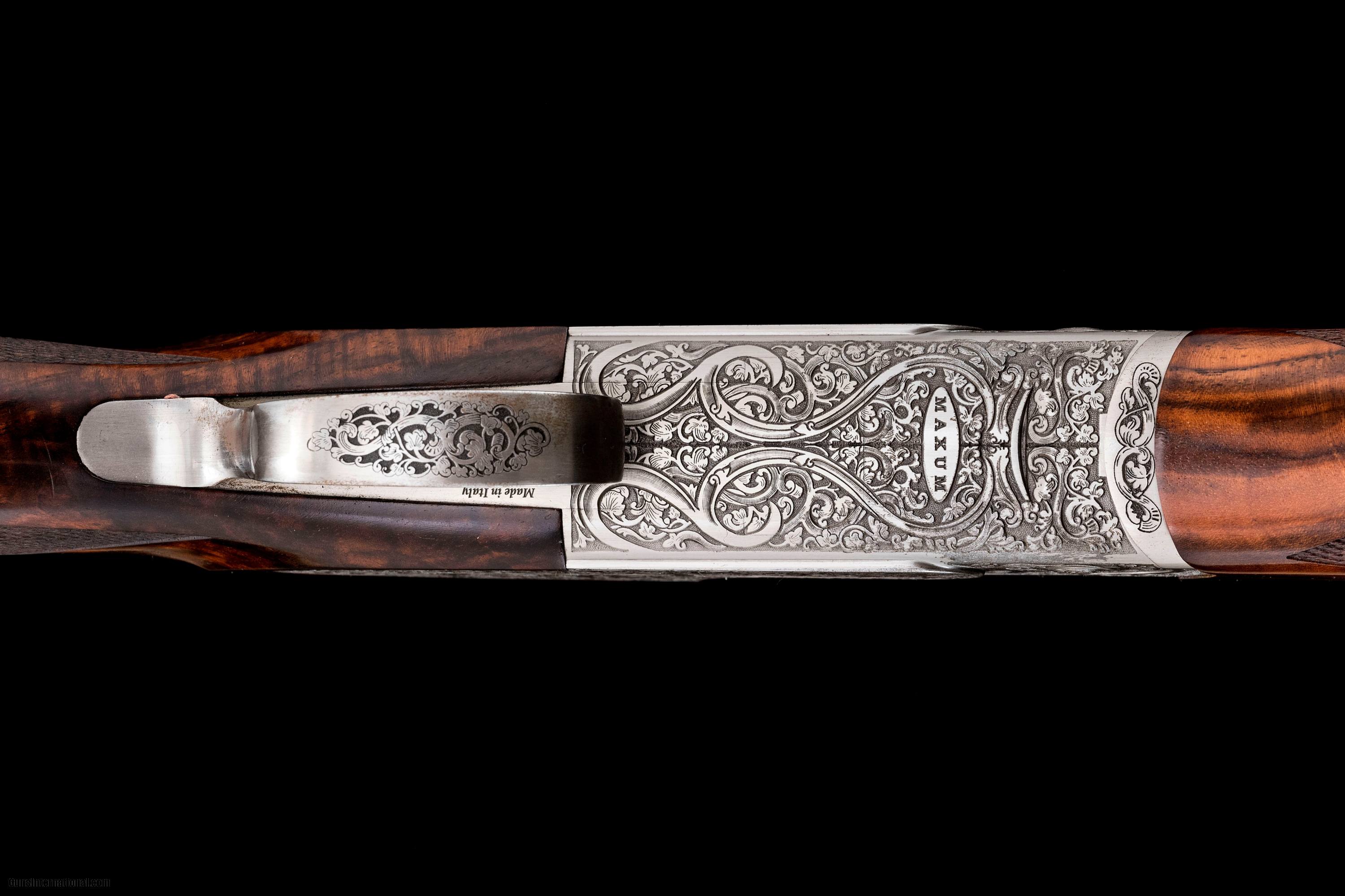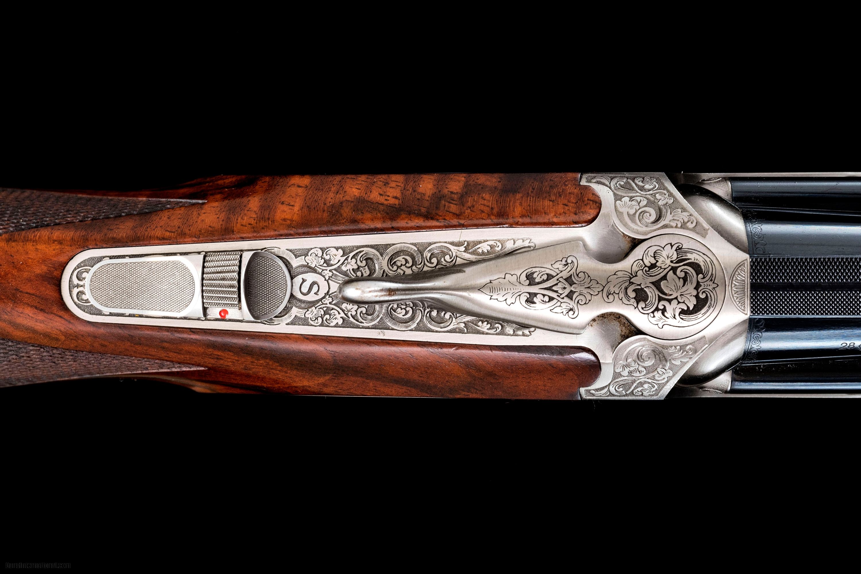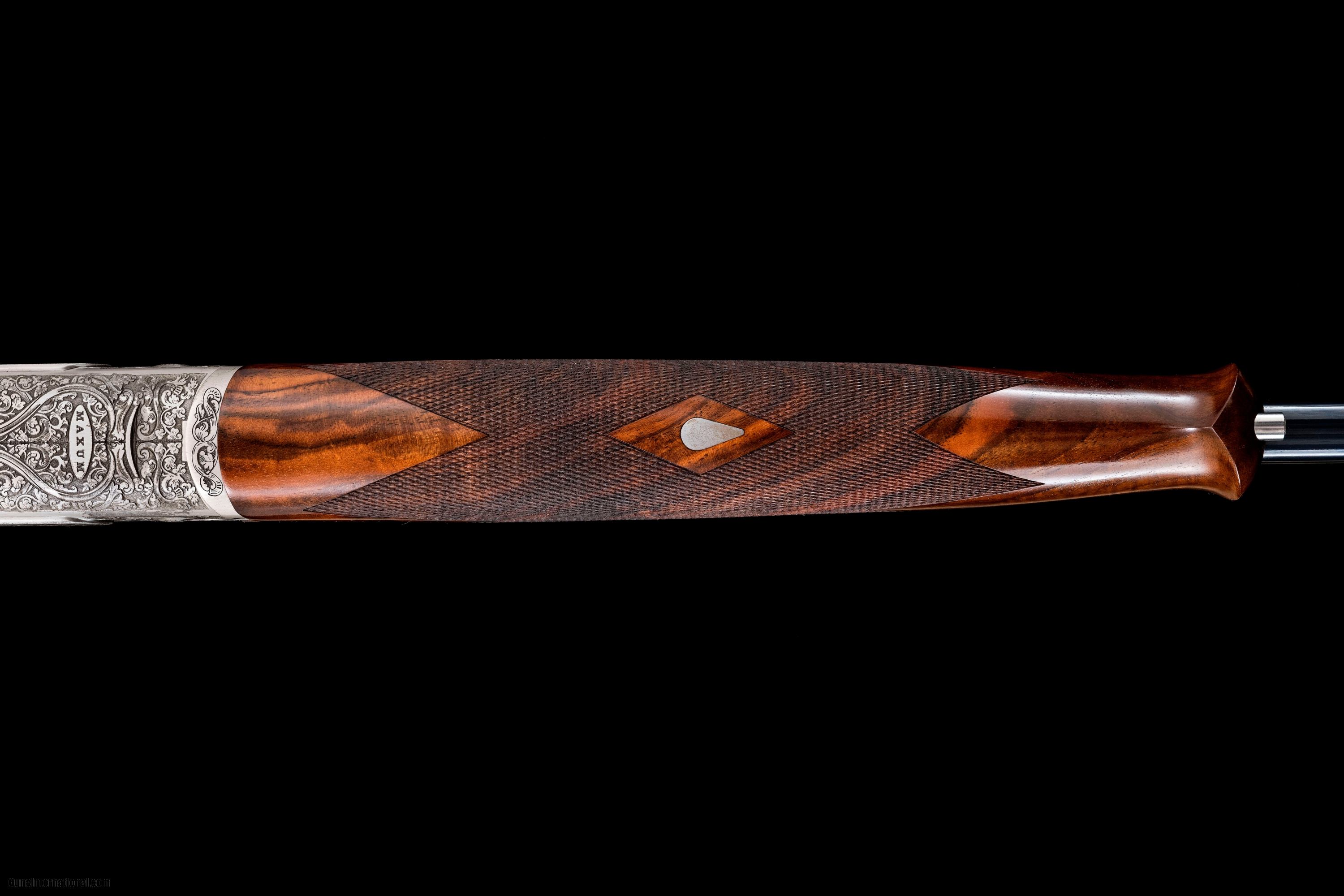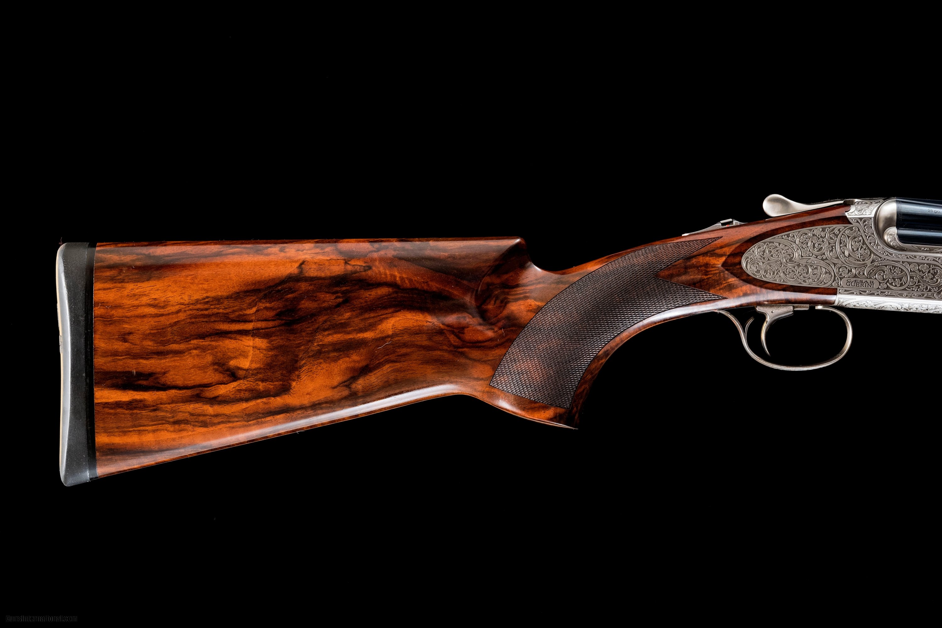 Description: The Maxum Sporting is truly a stunning over/under shotgun. The deep relief gothic scroll hand finished engraving on the receiver, side plates, and fore-end assembly make this sporting gun unique among others on the clays course. The handwork and design are from the studios of the world renowned Italian engraving house, Bottega Incisioni C. Giovanelli. The coin finish frame is painstakingly hand polished. Balancing the beauty of the deeply sculpted engraving is a deluxe grade of Turkish walnut, featuring precision cut 26 lines-per-inch checkering and a natural oil finish, hand rubbed to a sheen that enhances the highly figured wood grain. The Maxum Sporting is available in 12, 20 and 28 gauge; 12 gauge models feature the new Maxis Bore/Choke System and are offered in barrels up to 34” for the serious competitor. Combination two-barrel sets in 20/28 gauge and three-barrel 20/28/.410 gauge sets are also available. SOLD Manufacturer: Caesar Guerini Model: Maxum Caliber Info: 20ga/28ga/410 Barrels: 32 Triggers: Single Gauge Info: 20ga/28ga/410 Stock: 1 Stock Heel: 2-1/8 Stock Cast: 1-1/2 LOP: 14-3/4 Rib: Vented Weight: 7.3 Chokes: Interchangeable |