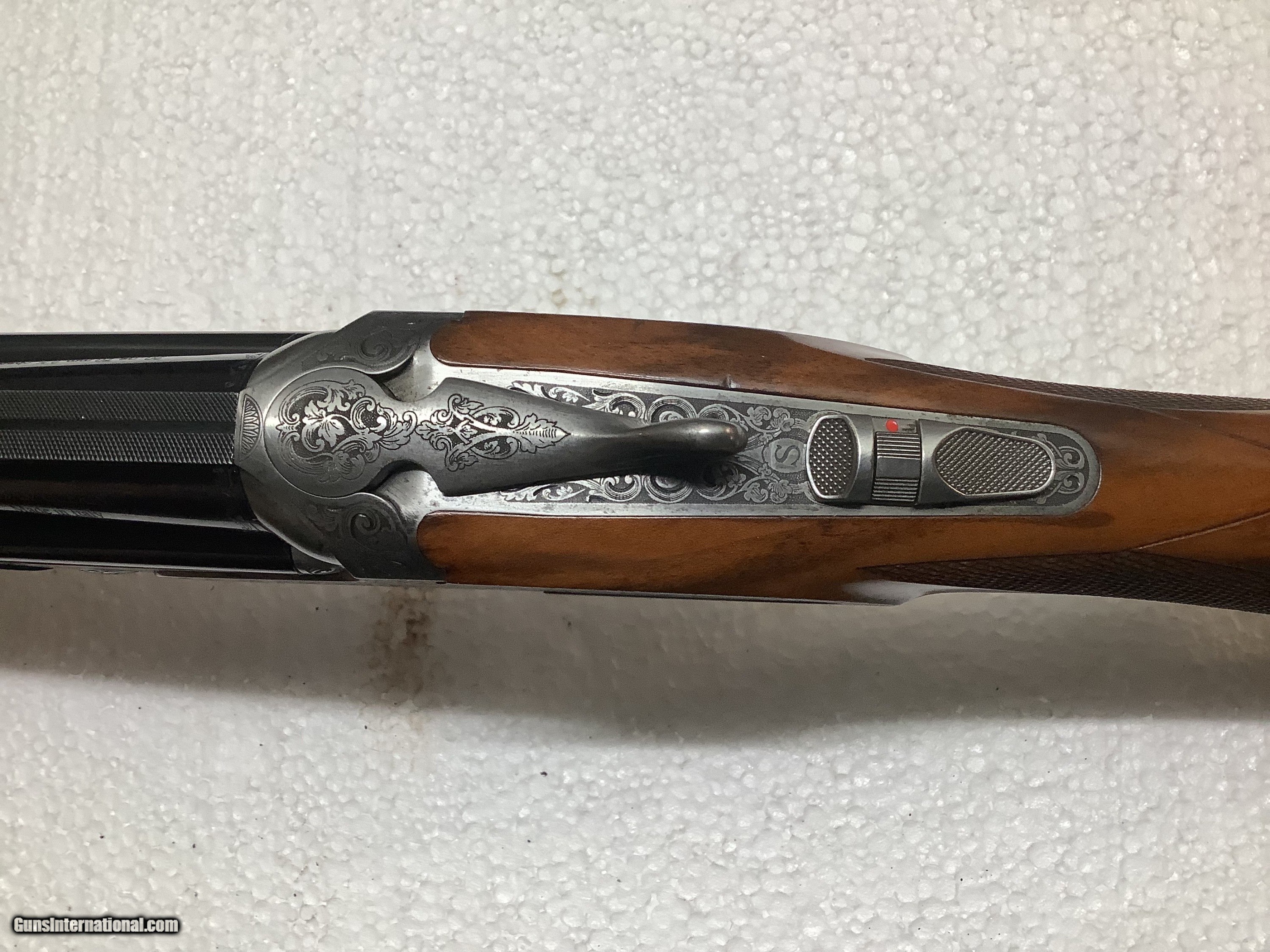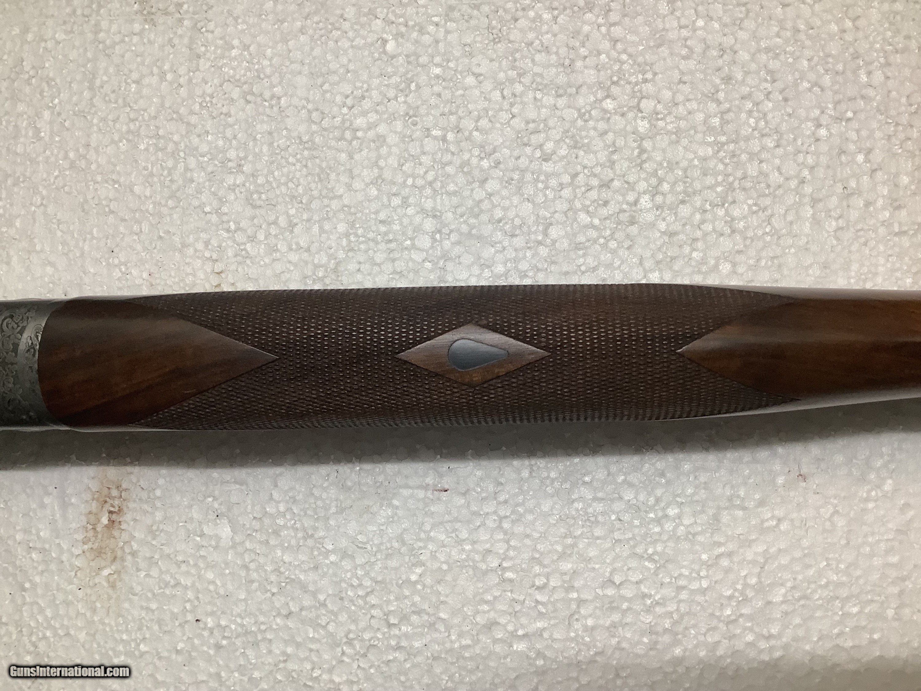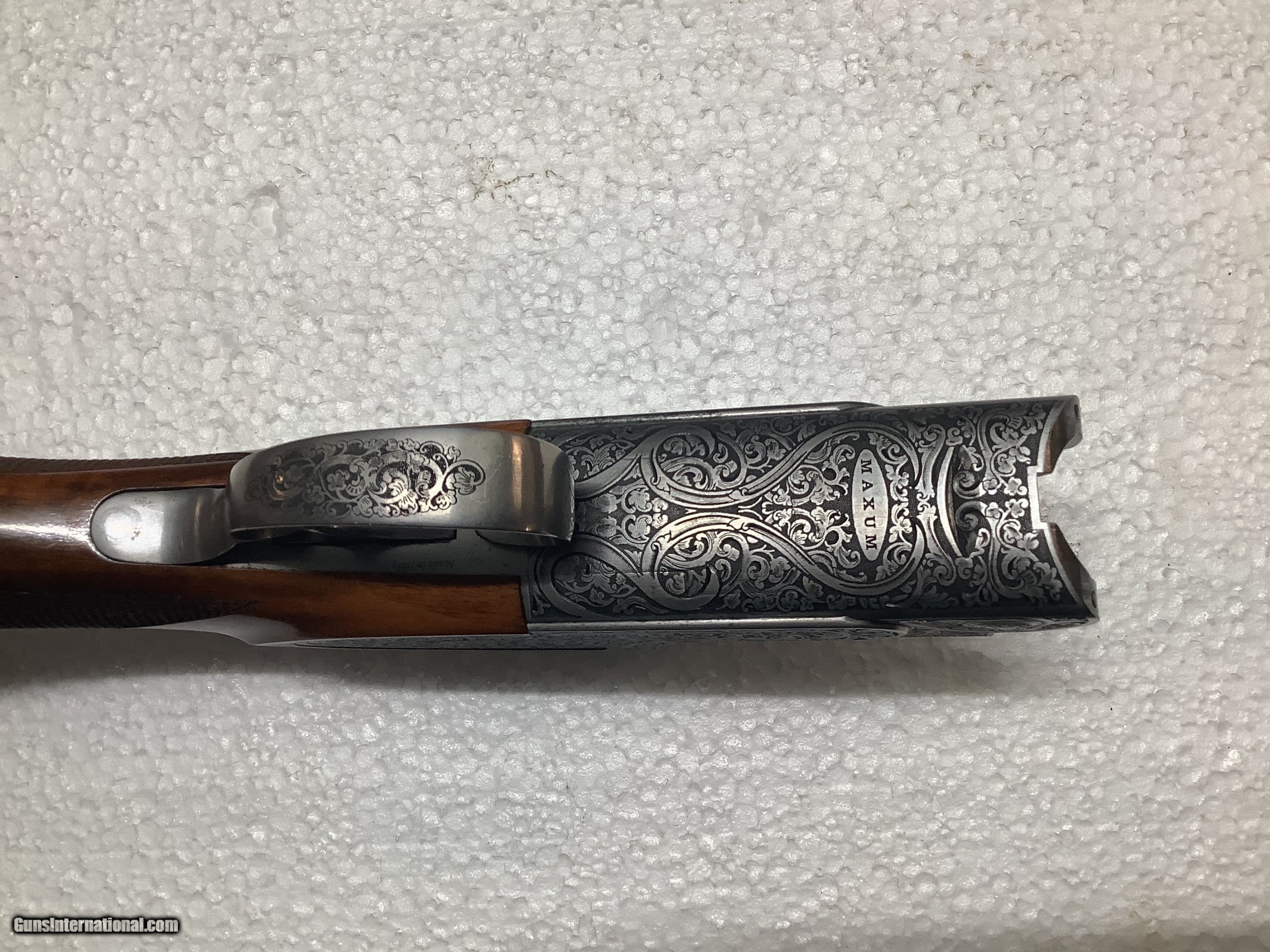 Description: Caesar Guerini Maxum 20ga. Deep relief gothic scroll hand finished engraving by world renowned Italian engraver Bottega C. Giovanelli. Hand polished coin finish. Deluxe grade Turkish walnut hand rubbed oil finish. A beautiful small bore 20ga priced what a 12ga would bring. Shotgun Gauge: 20 Gauge Model: Maxum Barrel Length: 32 Chambers: 2 3/4 Ejectors: Yes Condition: Excellent Metal Condition: Excellent Wood Condition: Excellent Bore Condition: Excellent Stock Comb: 1 1/4 Stock Heel: 2 1/4 LOP: 14 3/4 Weight: 7lbs0oz Chokes: Multi Extended Choke Left: MOD Choke Right: Full Price: $5,500.00 Shipping: $100.00 Contact Seller |