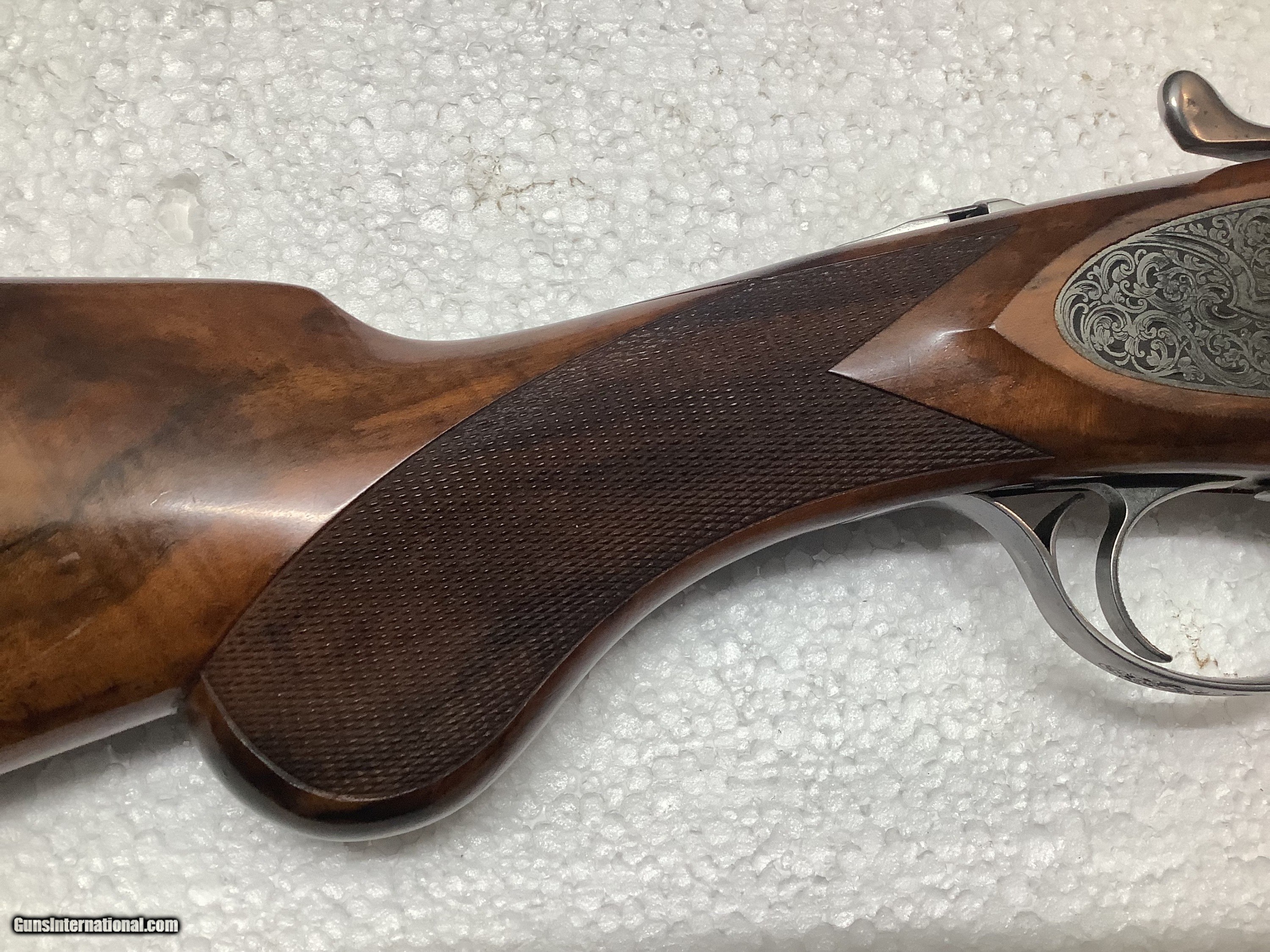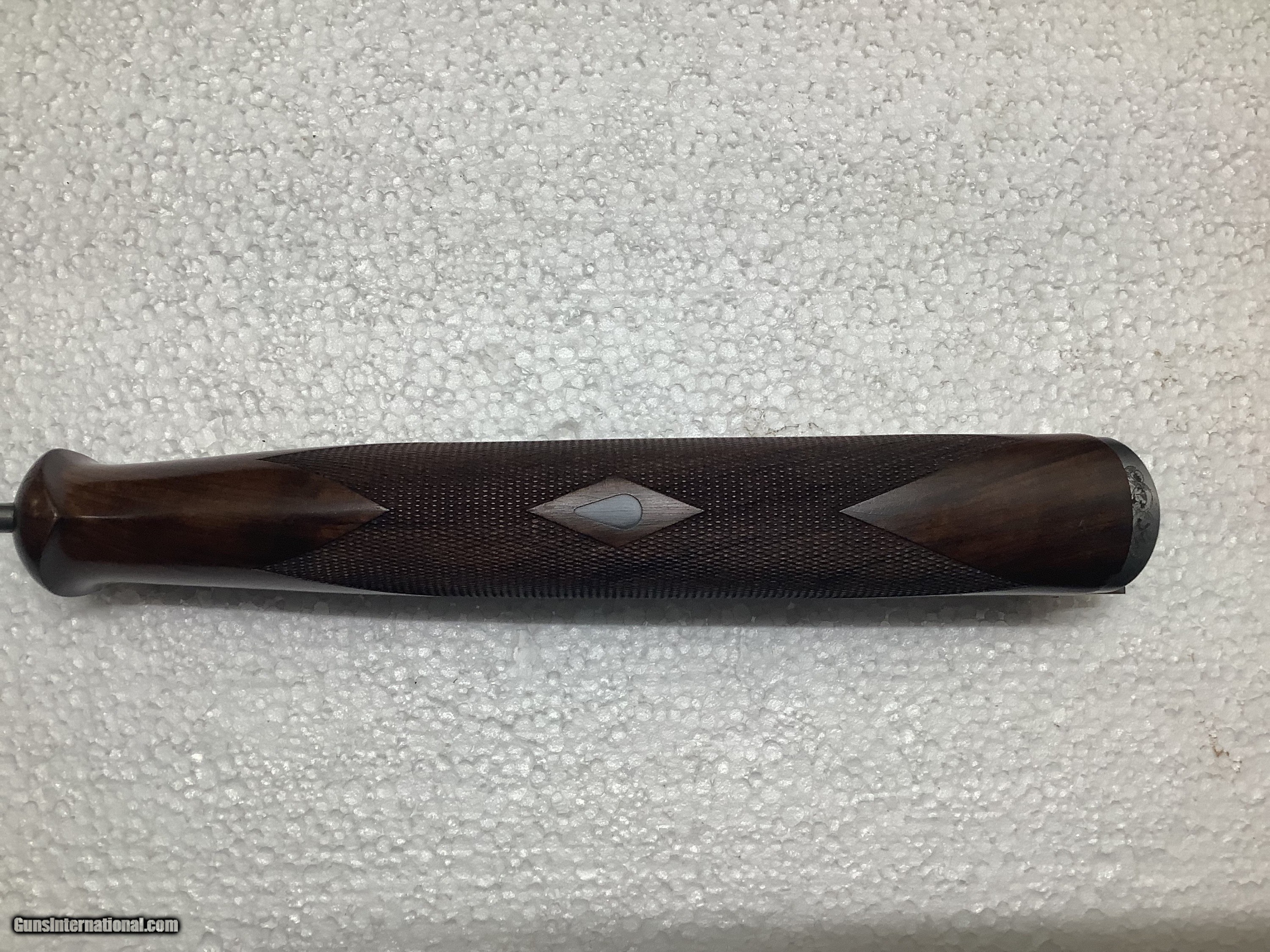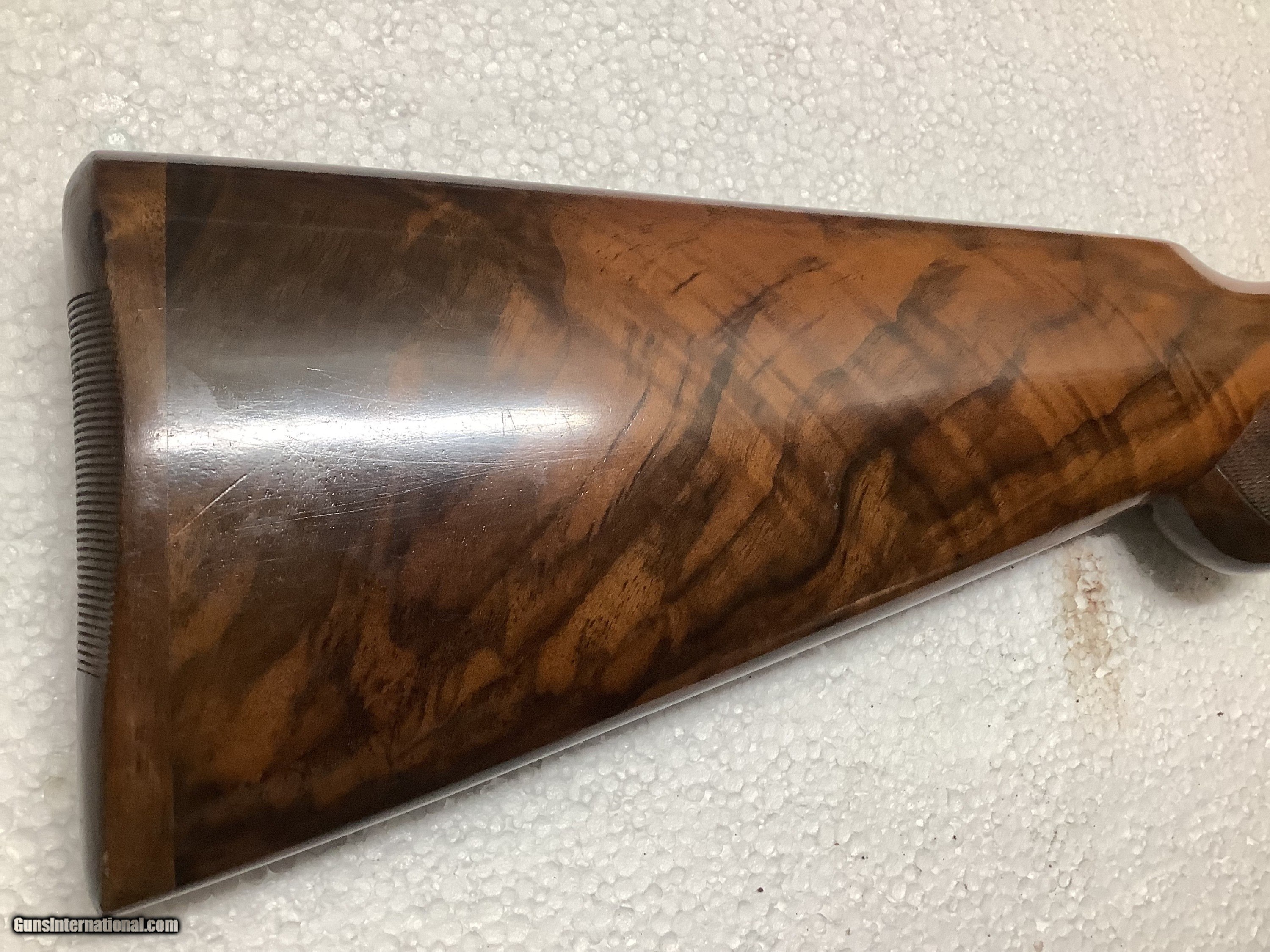 Description: Caesar Guerini Maxum 20ga. Deep relief gothic scroll hand finished engraving by world renowned Italian engraver Bottega C. Giovanelli. Hand polished coin finish. Deluxe grade Turkish walnut hand rubbed oil finish. A beautiful small bore 20ga priced what a 12ga would bring. Shotgun Gauge: 20 Gauge Model: Maxum Barrel Length: 32 Chambers: 2 3/4 Ejectors: Yes Condition: Excellent Metal Condition: Excellent Wood Condition: Excellent Bore Condition: Excellent Stock Comb: 1 1/4 Stock Heel: 2 1/4 LOP: 14 3/4 Weight: 7lbs0oz Chokes: Multi Extended Choke Left: MOD Choke Right: Full Price: $5,500.00 Shipping: $100.00 Contact Seller |