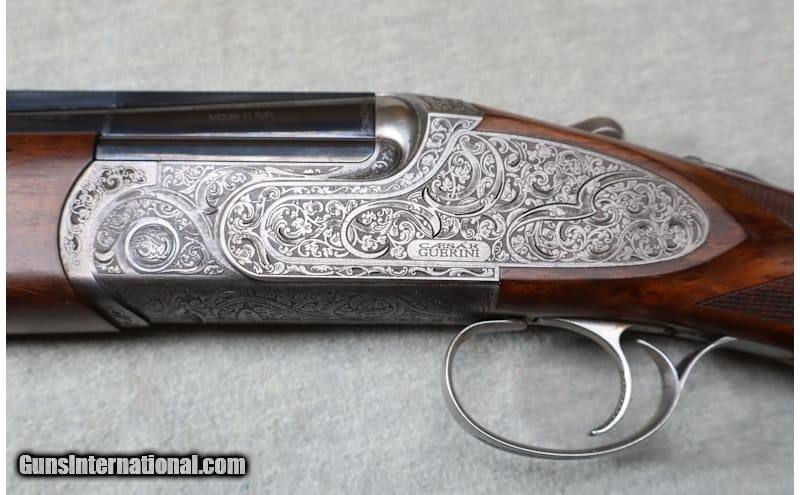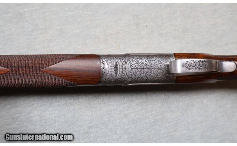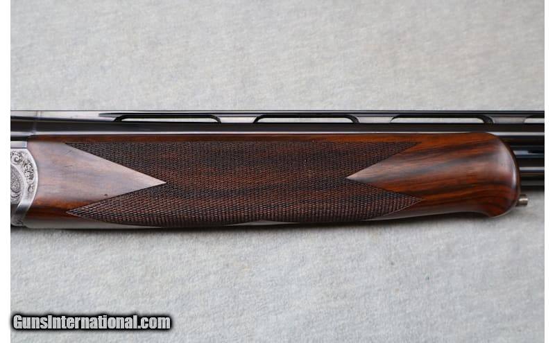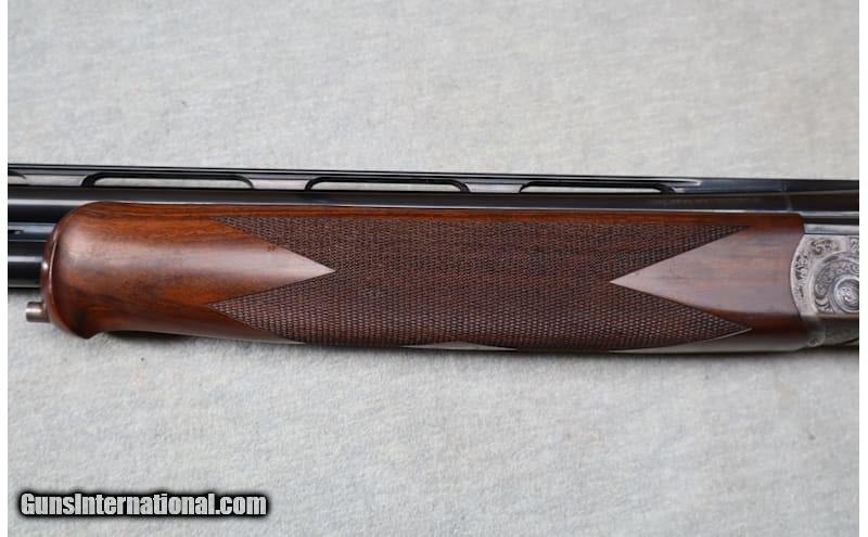 Description: The Maxum is a true collector grade shotgun, featuring deep relief floral scroll hand finished engraving on the receiver, side plates, and forearm assembly. The hand work and design are from the studios of the world renowned Italian engraving house, Bottega Incisioni C. Giovanelli. An elegant coin finish complements the strikingly detailed classic style engraving, creating a functional work of art. Balancing the beauty of the deeply sculpted engraving is a deluxe grade of Turkish walnut, featuring precision cut 26 lines-per-inch checkering and a natural oil finish hand rubbed to a stunning sheen. This example has been lightly used and still presents very well. This is a high end shotgun that doesn't come on the market very often. A great piece for the collector or anyone who likes fine, high end, firearms. 28 Gauge Chambers: 2 3/4 Metal Condition: very good Wood Condition: good Bore Condition: bright Barrels: 32" ribbed barrels with ejectors Triggers: single trigger Stock Dimensions: 15" LOP Fore End: checkered wood Butt Pad: wood Weight: 6 lbs 14 oz Sights: white bead front sight Chokes: adjustable choke Item Location: La Vista, NE Price: $9,699.99 Contact Seller |