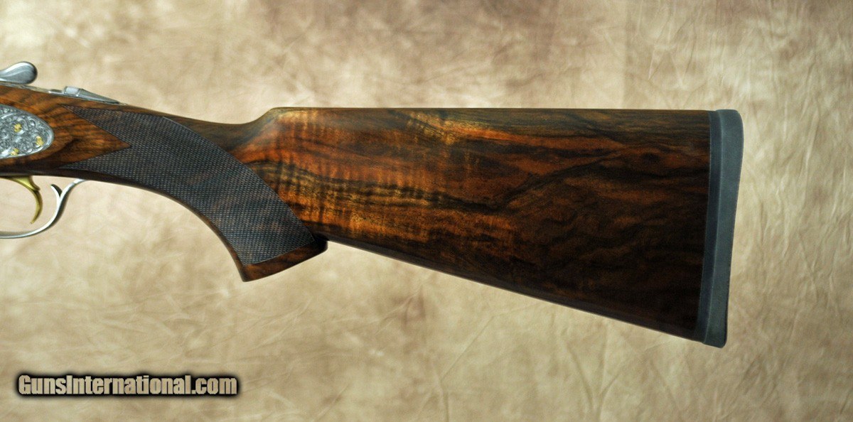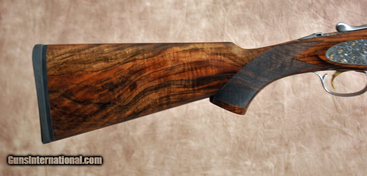 Description: Pre-owned, in like new condition, Caesar Guerini Maxum Gold 20ga. Features factory flush choke tube 28" barrel with thin game rib. Engraved receiver with deep scroll engraving with gold accents engraved by Italian master engravers at Bottega Giovanelli. Highly figured right hand pistol stock and Round forend. Comes in factory case. Consignment, ineligible for trades. SOLD Shotgun Gauge: 20 Gauge |