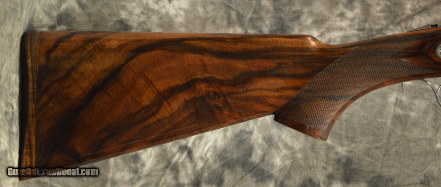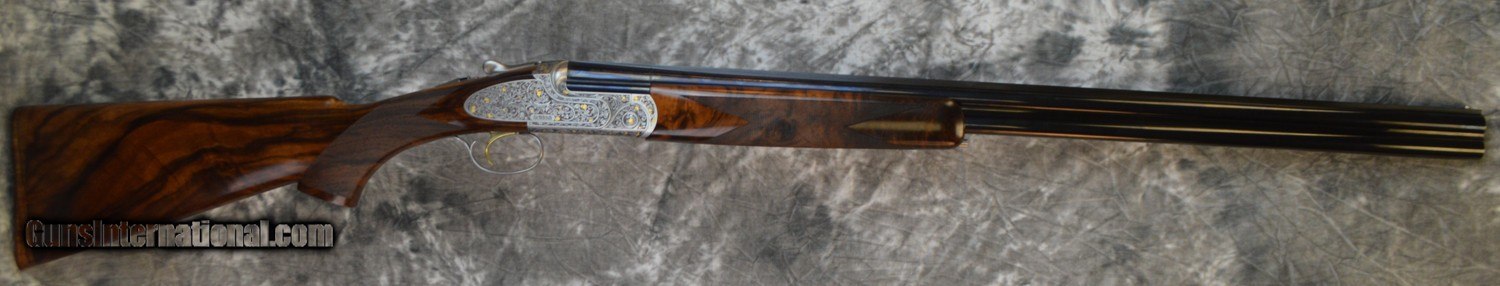 Description: New Caesar Guerini Maxum Gold Field 20GA with 30" factory choke tubed barrels, factory solid game rib. Silver Nitride finished action with fully engraved side-plates featuring deep scrolls and gold motiffs, factory Purdey style pistol grip game stock to removable wood butt plate and fully checkered game forearm. Includes factory case, chokes and tools. Call 626-633-1002 for pricing. SOLD |