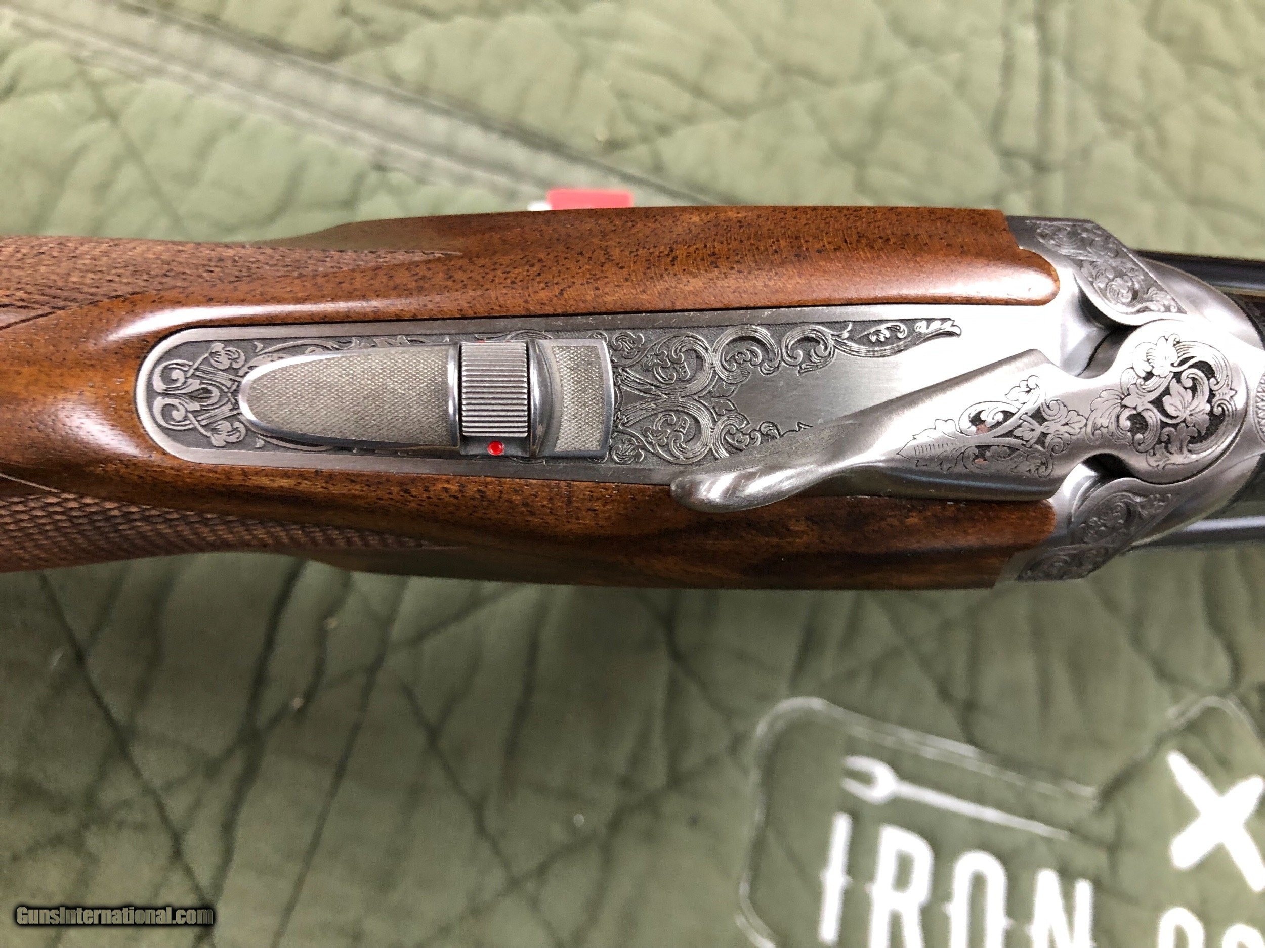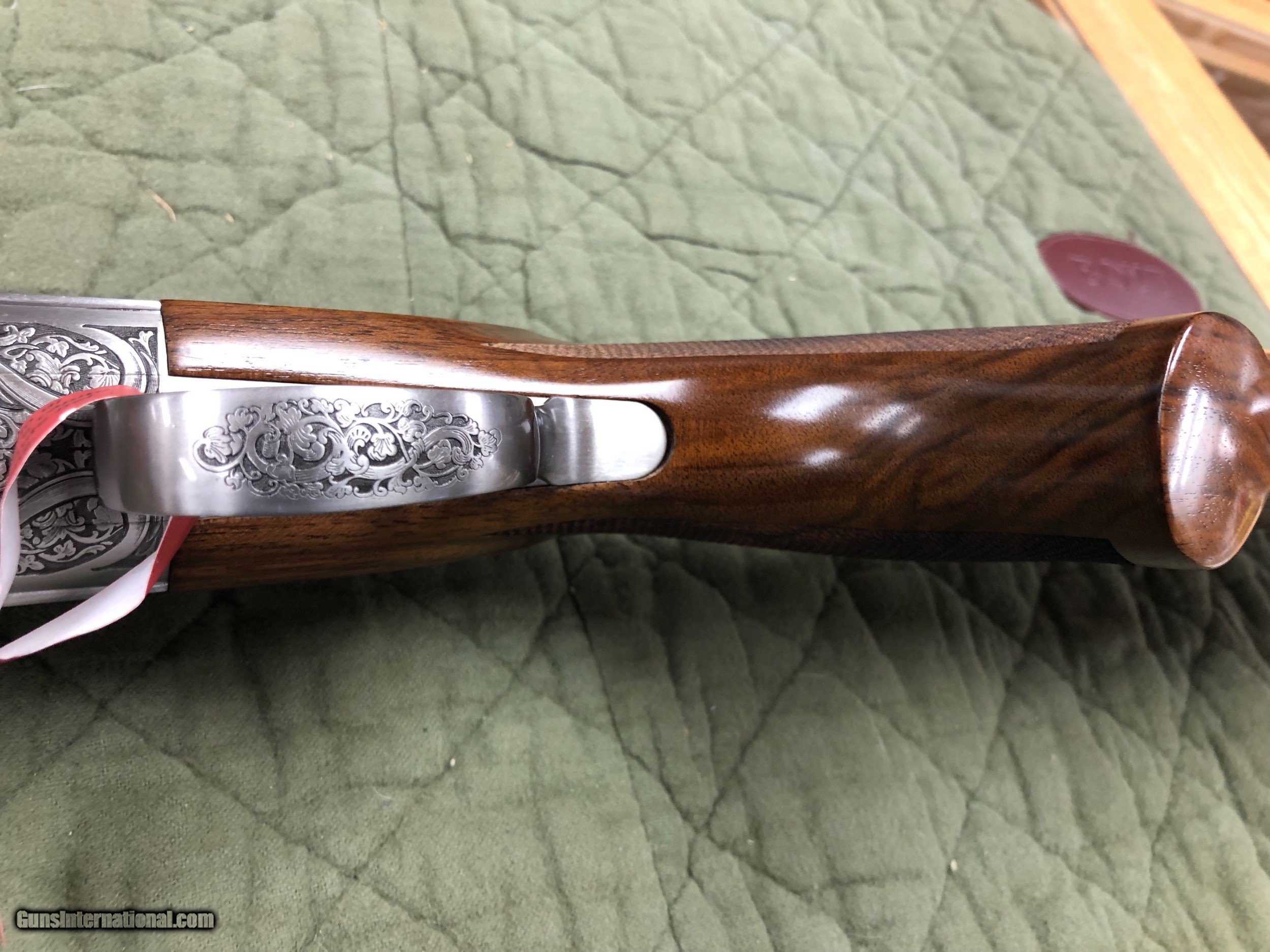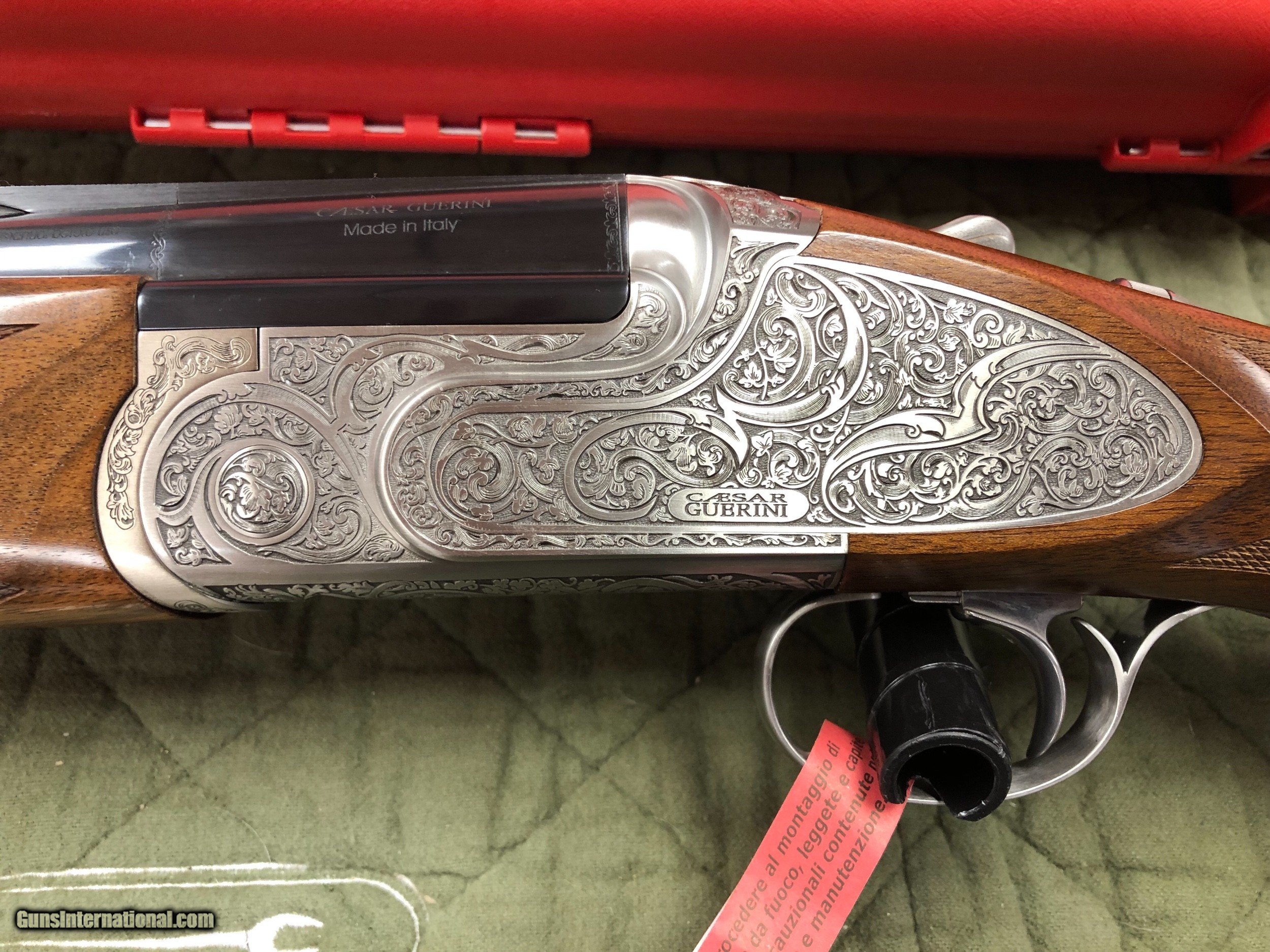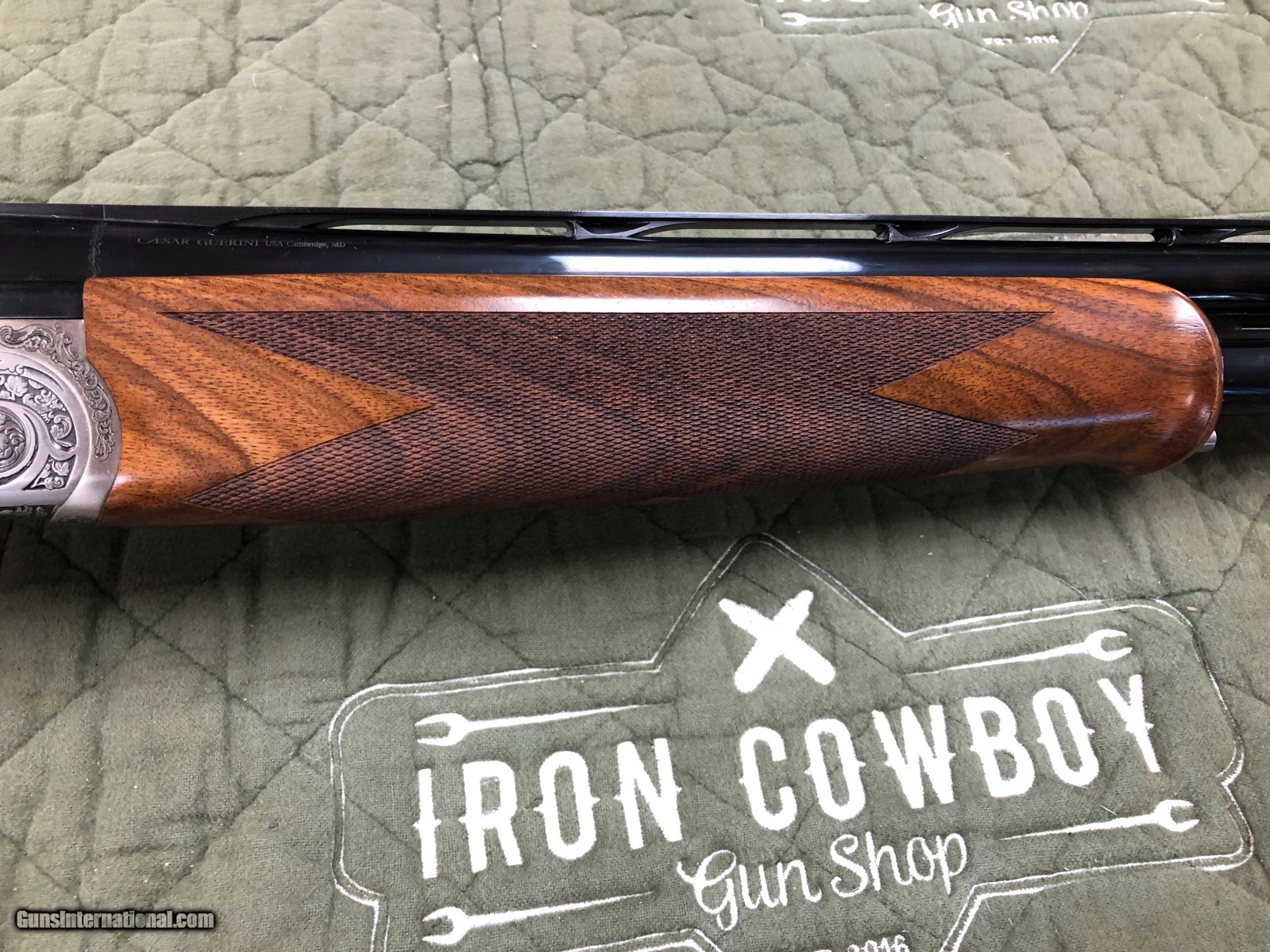 Description: Up for sale is a new Caesar Guerini Maxum Sporting. This fine sporting gun is chambered in 12 ga with 32-inch barrels. This features the DTS stock upgrade. This is a top tier sporting gun designed from the ground up to break clays. The receiver is heavily adorned with Italian ornato style scroll. The stock and for end are deluxe grade Turkish walnut. I stock many different models if you don’t see what you want, call the shop or shoot me an email. I am a Caesar Guerini Elite Dealer and can custom order you anything. Caesar Guerini has strict MAP pricing polices so I must advertise at MAP pricing, all you have do is call for the best delivered price. I love to sell fine guns; I am not a curator of a museum. I stock a vast array of Ceasar Guerini, Fabarm, Syren, Blaser,Merkel, NightHawk Custom, Cabot Gun and many more. It is impossible for me to list everything I will special order you anything your heart desire. Below are some technical specs from Caesar Guerini’ssite Thanks for looking. The Maxum Sporting is truly a stunning over/under shotgun. The deep relief gothic scroll hand finished engraving on the receiver, side plates, and fore-end assembly make this sporting gun unique among others on the clays course. The handwork and design are from the studios of the world-renowned Italian engraving house, Bottega Incisioni C. Giovanelli. The coin finish frame is painstakingly hand polished. Balancing the beauty of the deeply sculpted engraving is a deluxe grade of Turkish walnut, featuring precision cut 26 lines-per-inch checkering and a natural oil finish, hand rubbed to a sheen that enhances the highly figured wood grain. The Maxum Sporting 12-gauge models feature the new Maxis Bore/Choke System for the serious competitor. Gauge12 28 Barrel length32 32" (81cm) Avg. Weight**7lbs. 14oz., 8lbs., 8lbs. 2oz. 7lbs. 6oz. Receiver finishHand polished coin finish with Invisalloy™ protective finish Hand polished coin finish with Invisalloy™ protective finish Stock FinishHand rubbed oil Hand rubbed oil Checkering26 lines per inch 26 lines per inch Recoil PadBlack rubber Black rubber Chamber2 3/4" 2 3/4" Top RibWidth 10mm (.4") parallel and ventilated Width 10mm (.4") parallel and ventilated Rib Height*6mm 6mm Center RibVentilated Ventilated Forcing Cones5" DuoCon Standard Avg. Barrel Weight 32"-1.52kg (3.35lbs.) 32"-1.35kg (2.98lbs.) Avg. Bore.735, Chrome lined .554, Chrome lined Chokes6 MAXIS competition chokes 6 CCP competition chokes Sight(s)White Bradley style front Silver center bead White Bradley style front Silver center bead Fore-endSchnabel Schnabel TriggerNew DTS trigger system with two trigger pull weight options, take up, over travel and length of pull adjustments. Factory selective release triggers available in single and double release for 12g. New DTS trigger system with two trigger pull weight options, take up, over travel and length of pull adjustments. SafetyManual (Automatic as an option) Manual (Automatic as an option) AccessoriesStock and trigger wrench, choke case, friction choke wrenchcchokrenchStock and trigger wrench, choke case, friction choke wrench CasePlastic hard case with fit interior and velvet stock sleeve and barrel sleeve STOCK DIMENSIONS Drop at comb 1.5" Drop at heel 2.25" Length of pull 14.75" Cast at heel .12" Cast at toe .2" Pitch 5° 5° Breech to comb 7.75" Reach *4.25" A24154 Maxum Sporting 12g 32" Barrels $7,360 Additional Charge for Adjustable Comb $400 SOLD Manufacturer: Caesar Guerini Model: Maxum Sporting Ejectors: yes Metal Condition: New Wood Condition: New Bore Condition: New Barrels: 32'' Action: Box Lock Triggers: SST Gauge Info: 12 Rib: Vent Rib Manufacture Date: NEW |