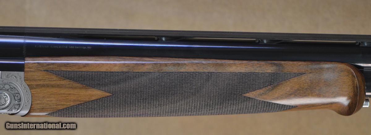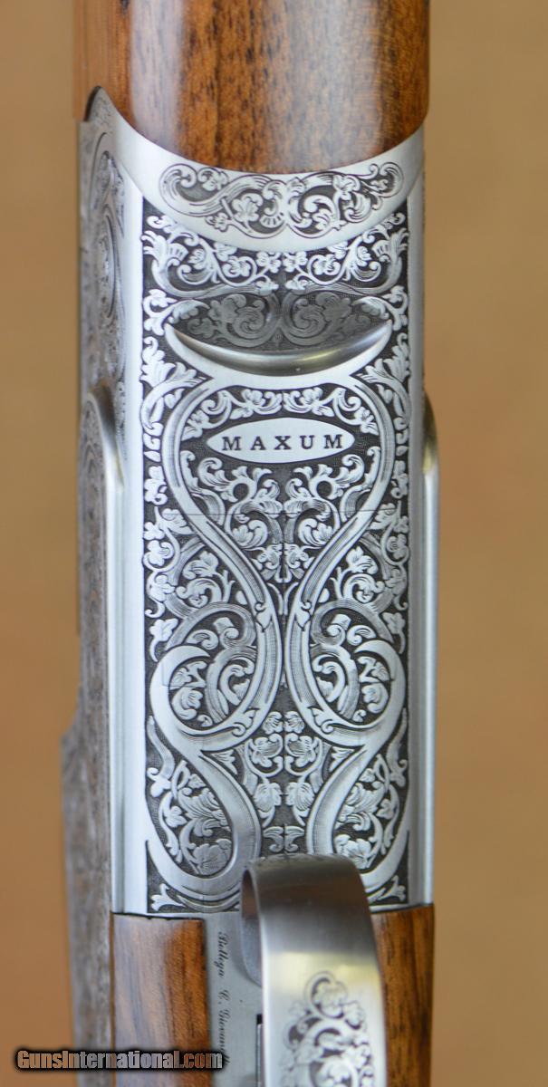 Description: New Caesar Guerini Maxum Sporting 12GA with 32" factory extended choke tubes, flat tapered rib. Factory Nitride Finished action with fully engraved Sideplates featuring deeply engraved scrolls. Outstanding factory adj. comb pistol grip stock with right-hand palmswell, schnabel forearm. Includes factory case, chokes and tools. Please call 626-633-1002 for best delivered price! SOLD |