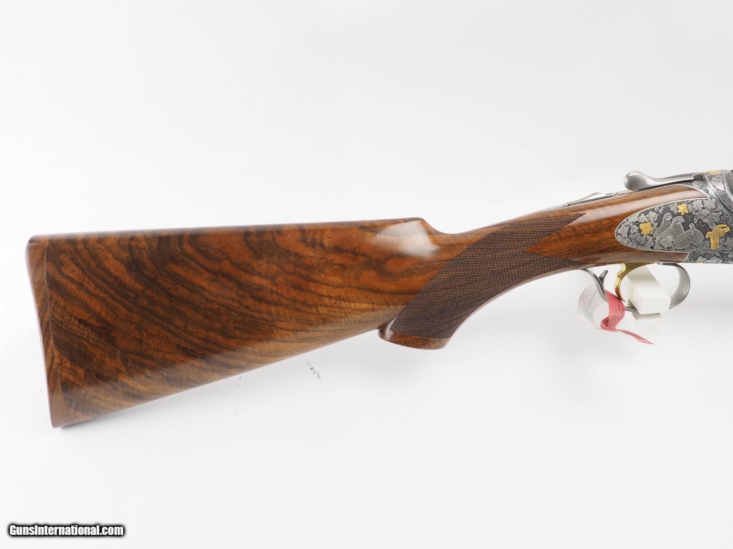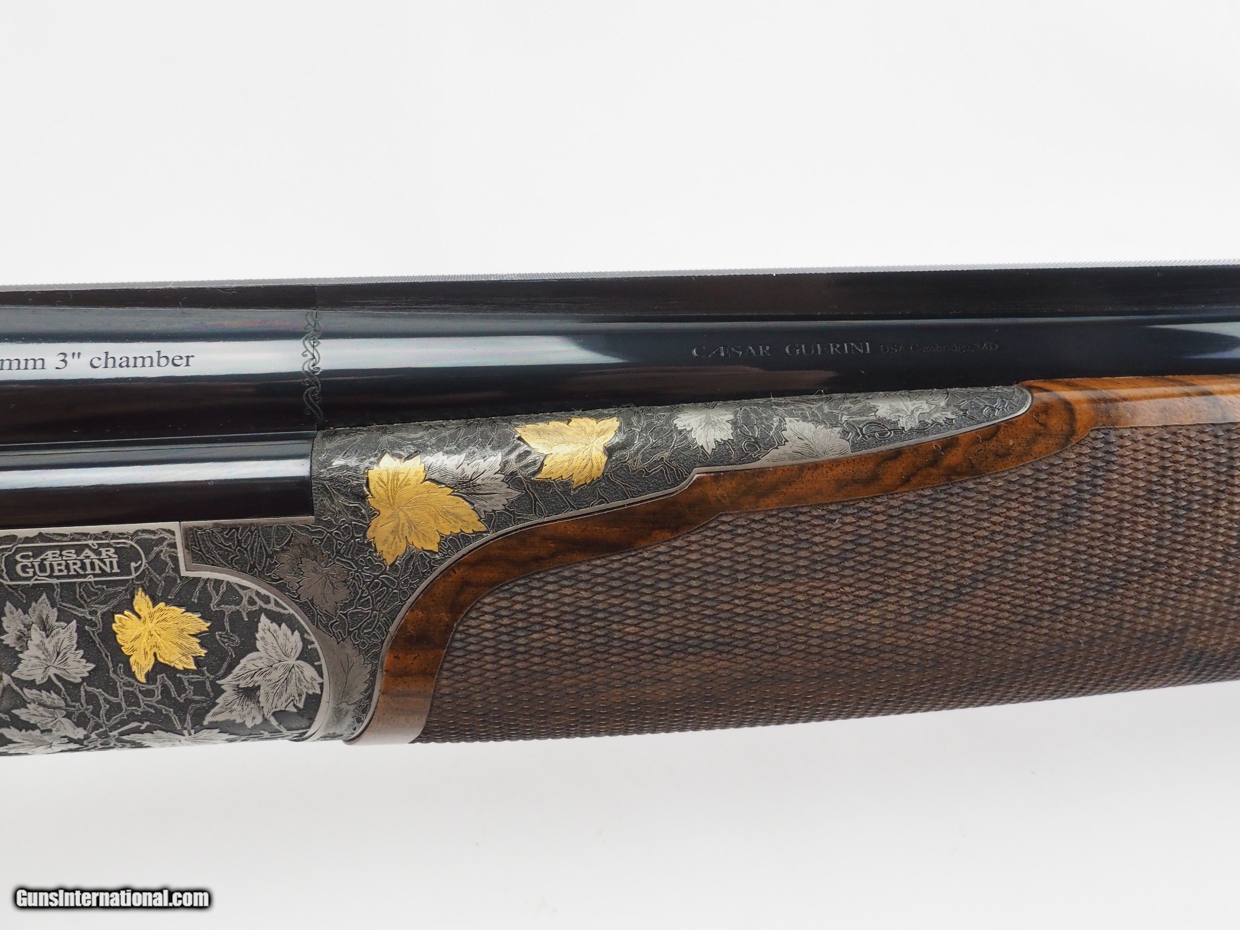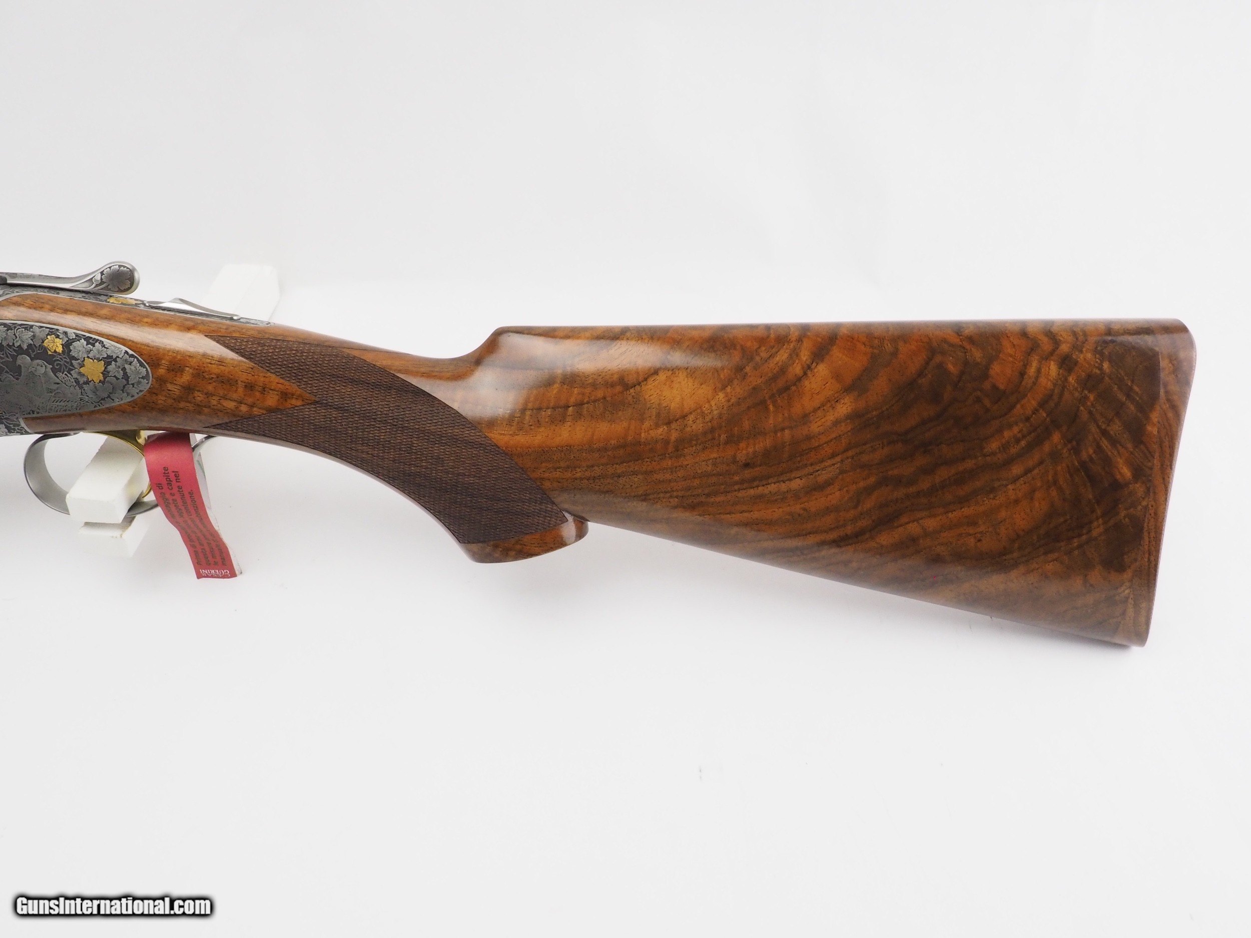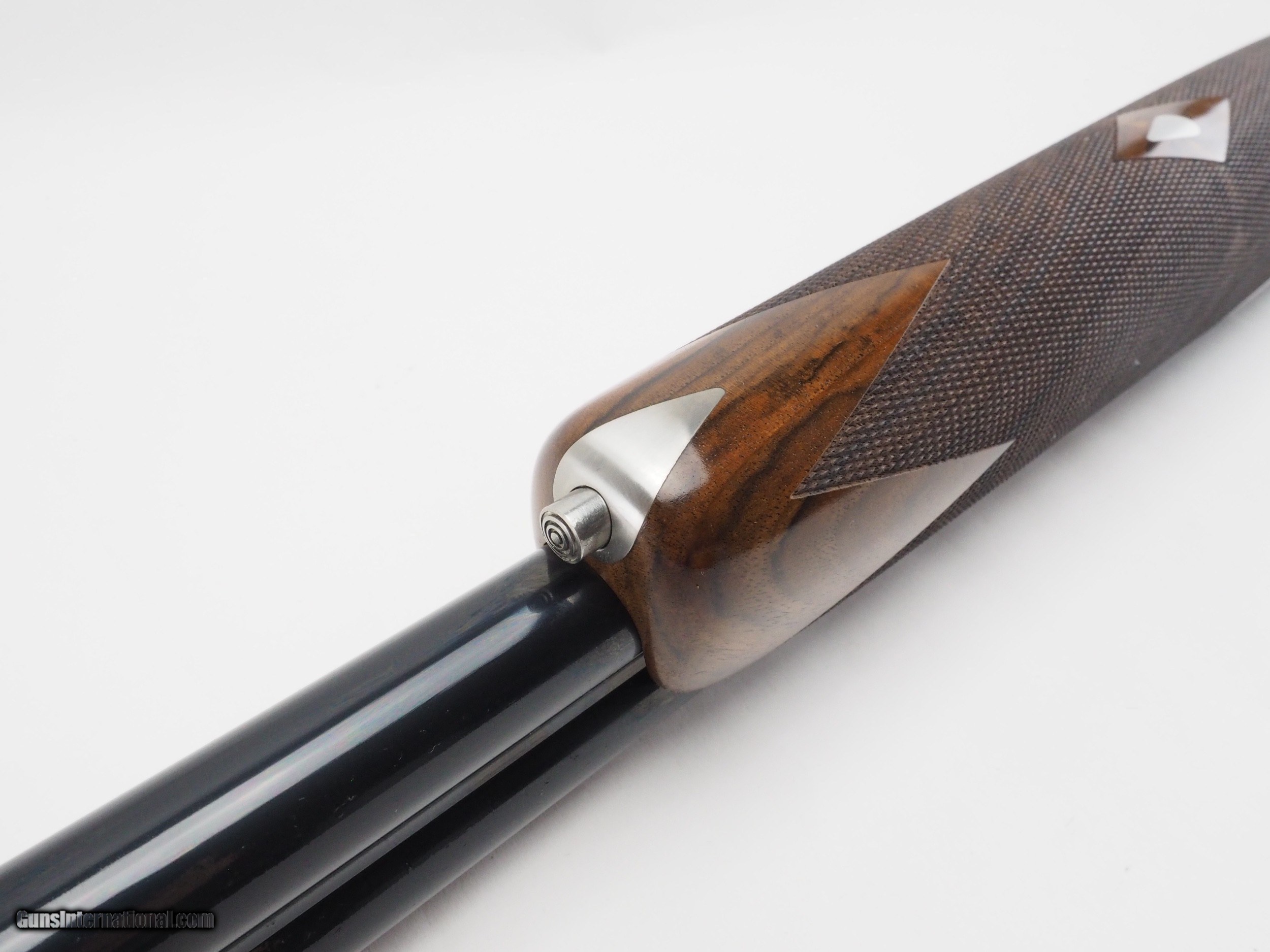 Description: Book #402. Call for pricing. Brand new gun in factory case with all accessories. The Revenant is Caesar Guerini's rendition of the classic Woodward O/U game gun. While the Revenant has the modern mechanical and design improvements common to all Guerini guns, it has that svelt and classic outward Woodward appearance and feel. The grip and extended forearm iron in particular are extremely well executed! The stock features more toe-out and cast than normal for Guerini, which makes it handle all the better! The slightly heavier round body receiver makes it handle like a dream. Oh, and it's a an absolutely gorgeous gun! There aren't many of these things currenbtly available, so please do call now. Drop at comb: 1.5" Drop at heel: 2.25" Length of pull: 14.75" Cast at heel: .12" Cast at toe: .3" Pitch: 5° Gauge: 20 Barrel length: 30" Avg. Weight: 6lbs. 11oz. Receiver finish: Hand polished coin finish with Invisalloy™ protective finish Stock Finish: Hand rubbed oil Checkering: 26 lines per inch Chamber: 3" Top Rib Width: 8-6mm tapered solid rib Center Rib: Non-Ventilated Avg. Bore: .626, Chrome lined Chokes: 5 nickel plated, flush fitting chokes Sight(s): Silver front bead Fore-end: Ellipse Rounded Trigger: Non-selective SOLD Shotgun Gauge: 20 Gauge |