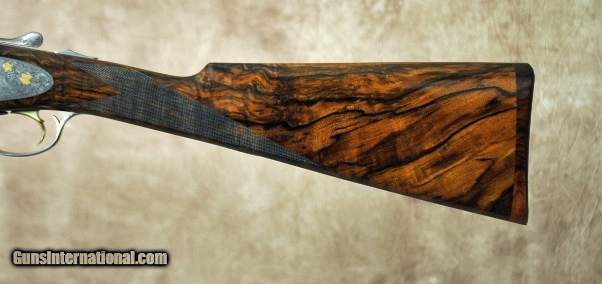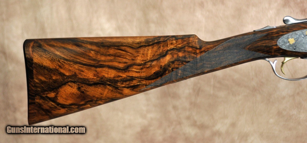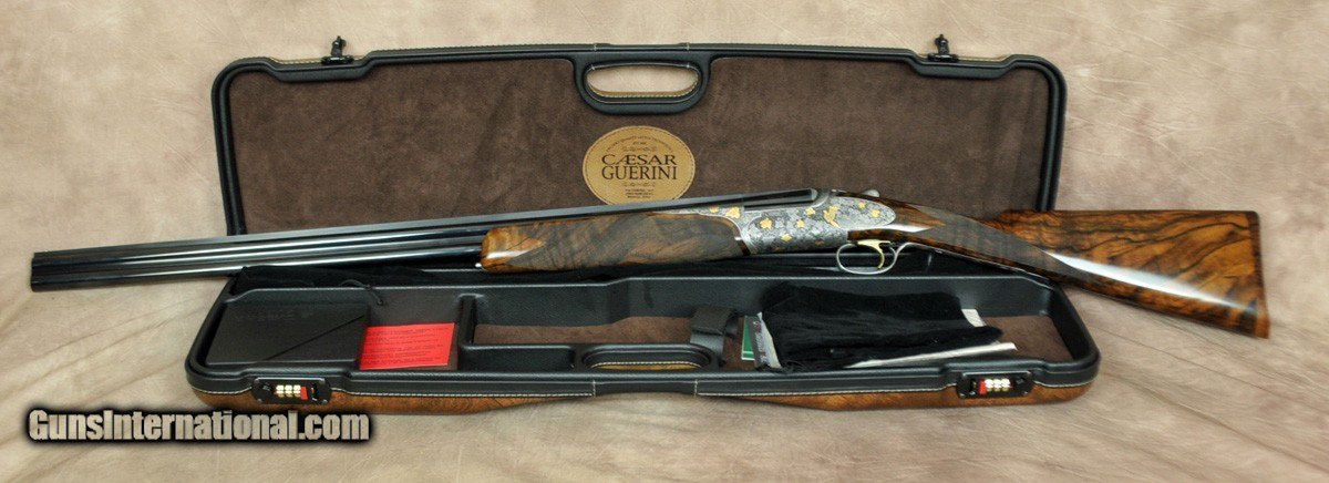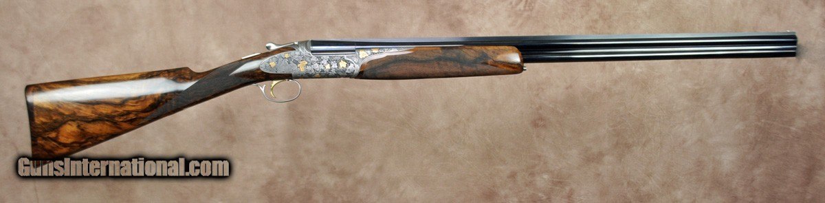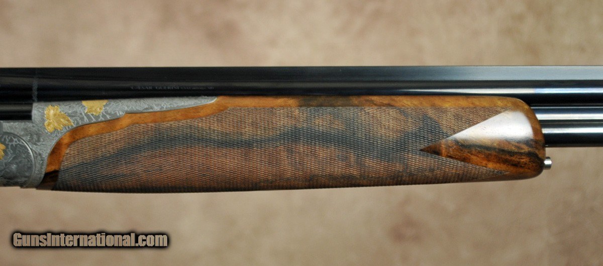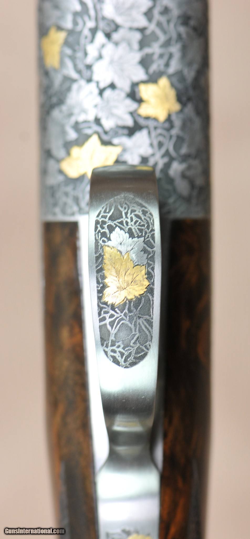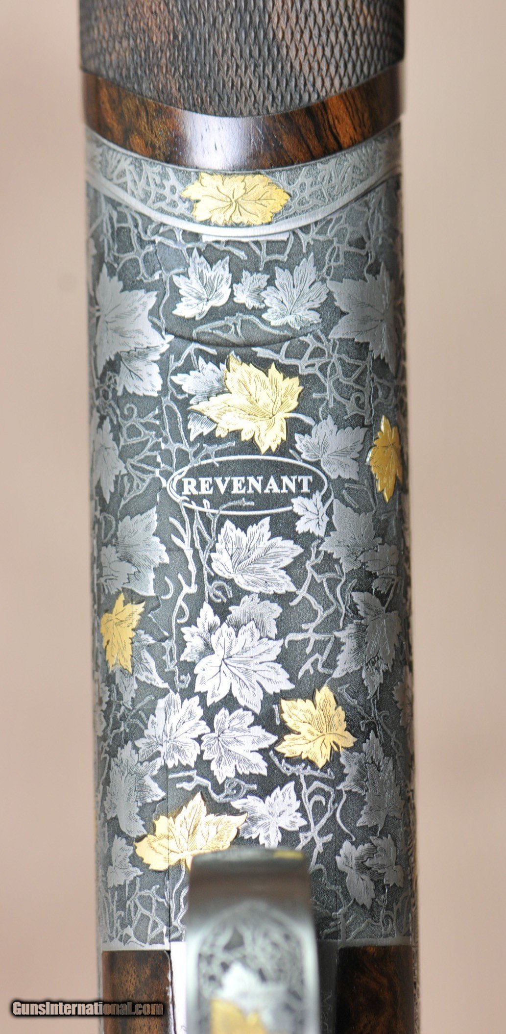 Description: New Caesar Guerini Revenant Game 28GA with 30″ factory choke tubed barrels, solid top game rib and solid side-ribs. Nitride finished round-action with fully engraved side-plates featuring deep scrolls, grape leaves and game scenes in gold; Boss style forearm iron fully engraved. Factory straight grip game stock with best-grade wood, round fully checkered game forearm. Includes factory case, chokes and tools. Call 248-960-7262 for pricing. SOLD |