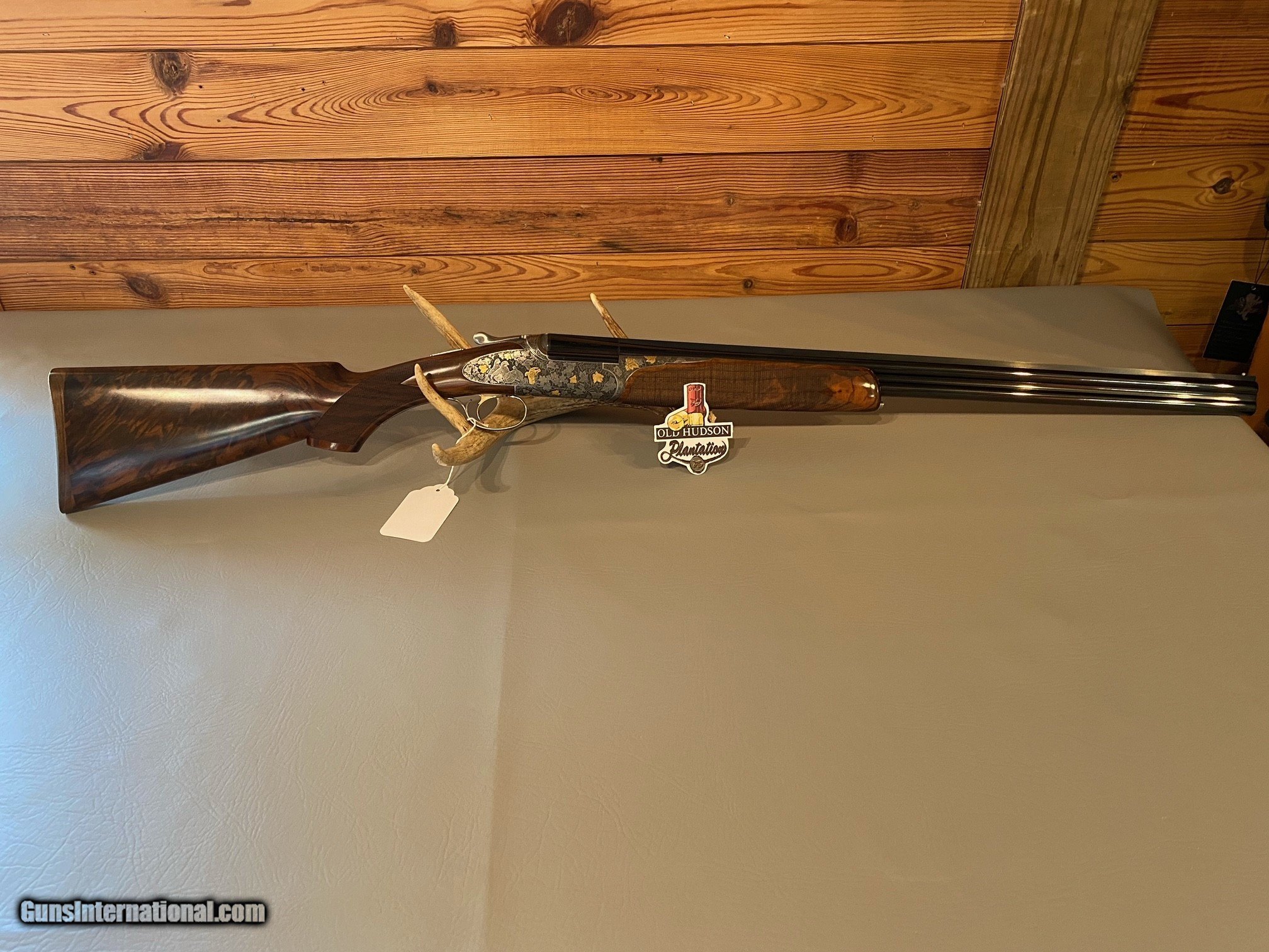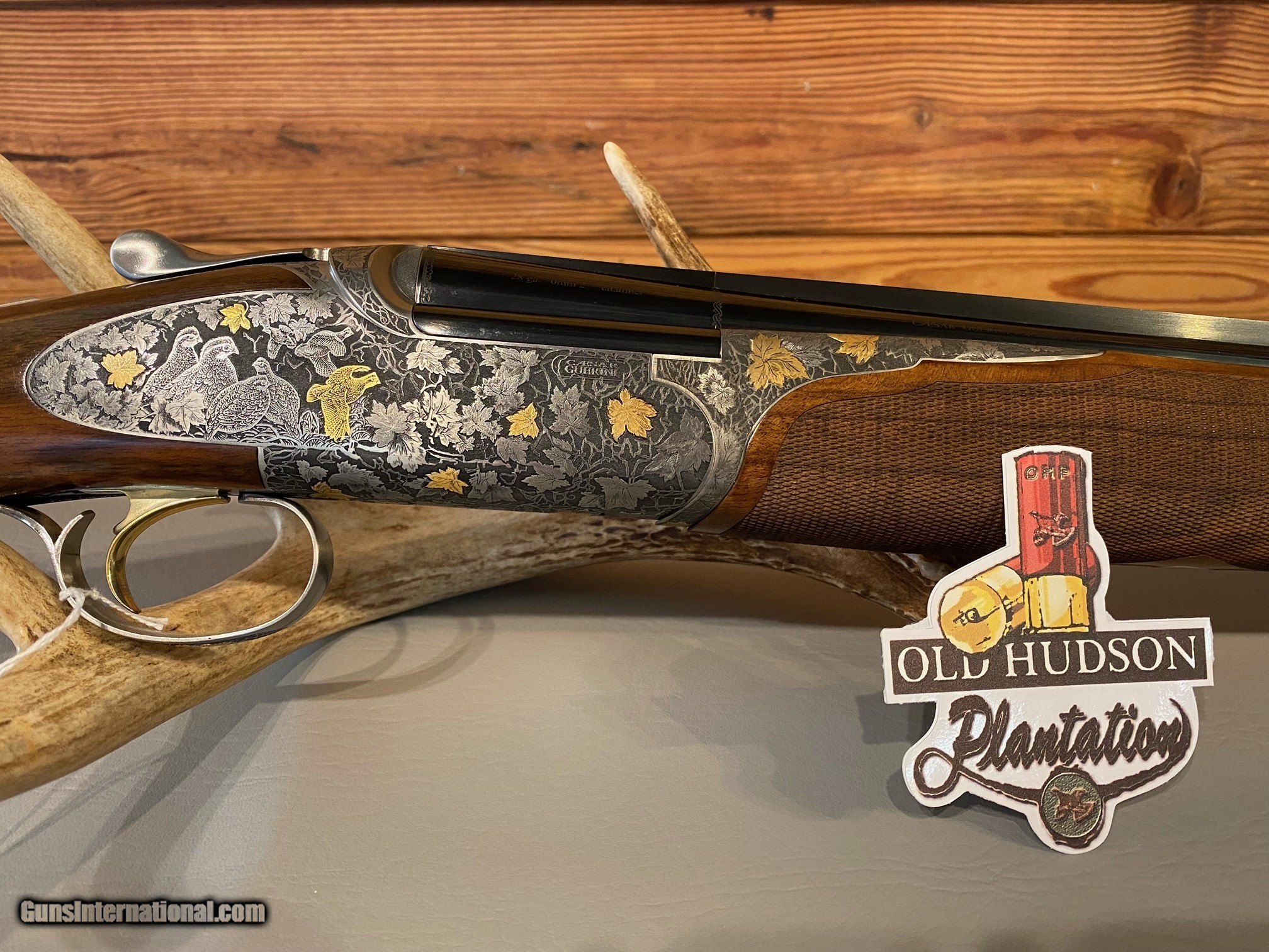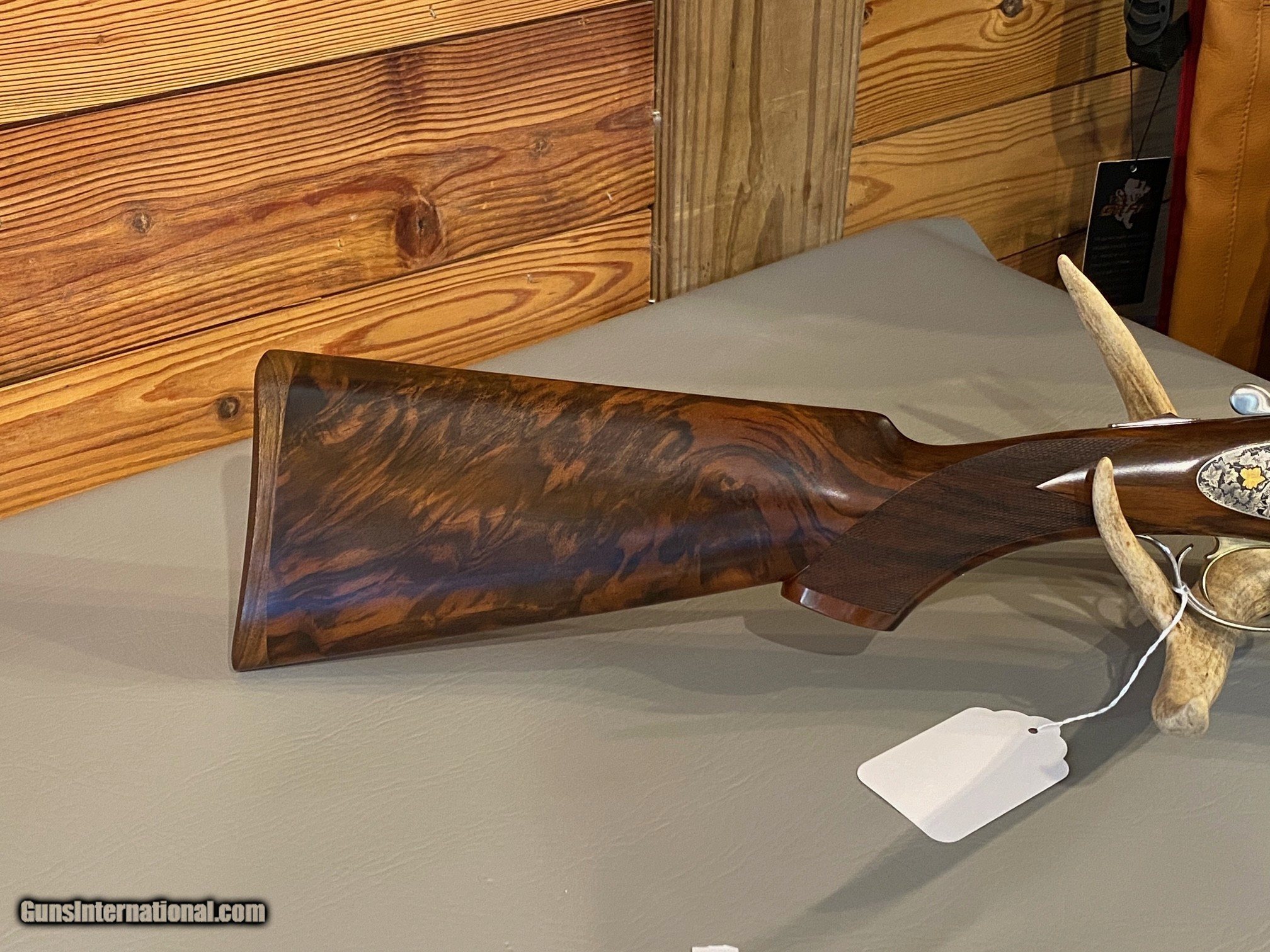 Description: The Revenant starts with a round body action famous for its graceful curves and ads radiused side plates to further enhance the lines of the action. The fore-end is graced with a winged fore-end iron and inletted escutcheon surrounding the push-button release, both the hallmarks of the highest quality shotguns. A long trigger guard blends into a swept back pistol grip to make the profile of the Revenant what can best be described as “racy”. The barrels feature a tapered solid top rib and mid rib. To further the goal of making an extraordinary firearm, Caesar Guerini turned to a world leader in fine engraving Bottega C. Giovanelli and their Director and Master engraver Dario Cortini. His vision was to create a new and original motif for the Revenant utilizing organic forms instead of a common variation on scroll. To this end he drew a design of maple leaves and branches that are both elegant and evoke a hunting theme. SOLD Shotgun Gauge: 28 Gauge Manufacturer: Caesar Guerini Model: Revenant Barrel Length: 28 Bore: 626 Chrome Lined Chambers: 2.75in Condition: Factory New Fore End: Ellipse Rounded Rib: Top Rib: Width 8-6mm tapered solid rib Weight: 6lb 6 oz Sights: Silver front bead Chokes: 5 nickel plated, flush fittng chokes Case: Special Revenant hard case with fit interior and velvet stock sleeve and barrel sleeve |