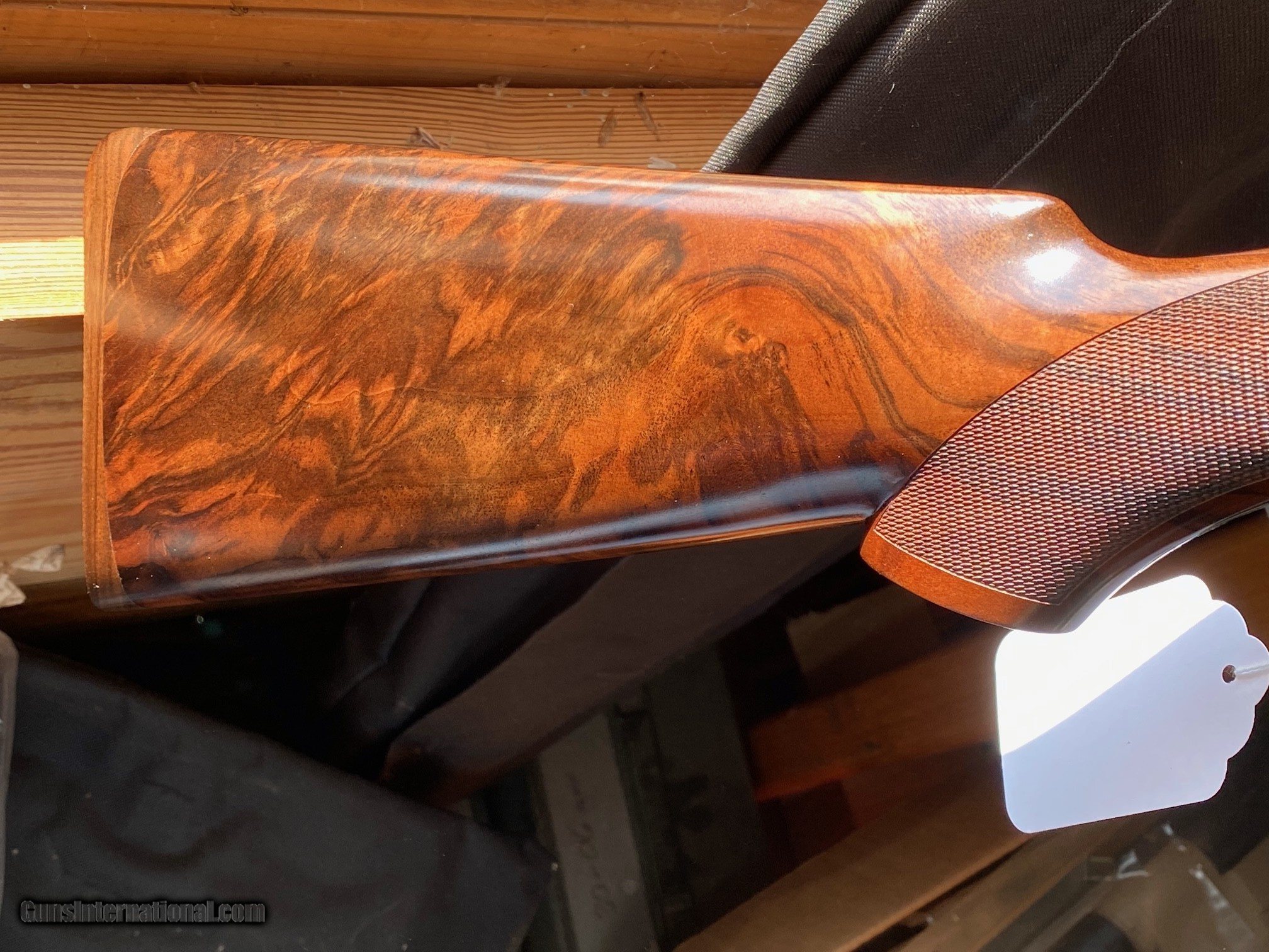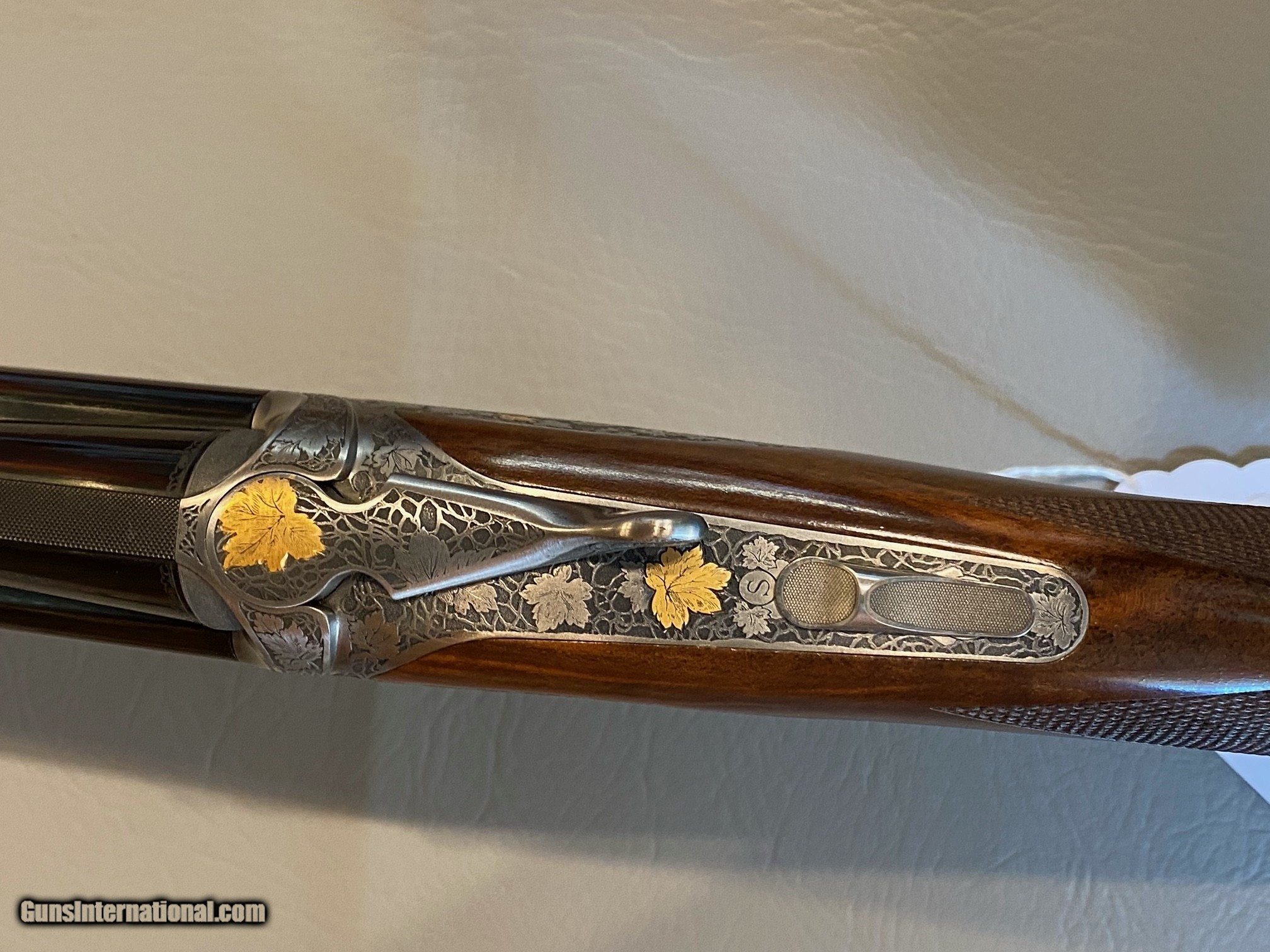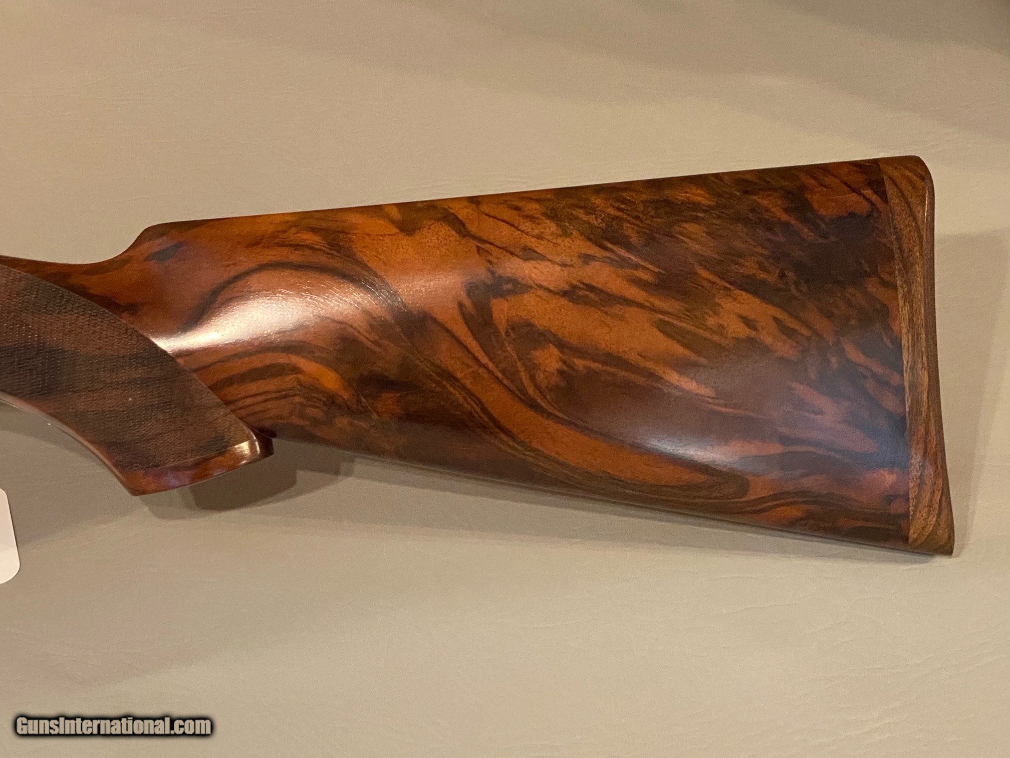 Description: The Revenant starts with a round body action famous for its graceful curves and ads radiused side plates to further enhance the lines of the action. The fore-end is graced with a winged fore-end iron and inletted escutcheon surrounding the push-button release, both the hallmarks of the highest quality shotguns. A long trigger guard blends into a swept back pistol grip to make the profile of the Revenant what can best be described as “racy”. The barrels feature a tapered solid top rib and mid rib. To further the goal of making an extraordinary firearm, Caesar Guerini turned to a world leader in fine engraving Bottega C. Giovanelli and their Director and Master engraver Dario Cortini. His vision was to create a new and original motif for the Revenant utilizing organic forms instead of a common variation on scroll. To this end he drew a design of maple leaves and branches that are both elegant and evoke a hunting theme. SOLD Shotgun Gauge: 28 Gauge Manufacturer: Caesar Guerini Model: Revenant Barrel Length: 28 Bore: 626 Chrome Lined Chambers: 2.75in Condition: Factory New Fore End: Ellipse Rounded Rib: Top Rib: Width 8-6mm tapered solid rib Weight: 6lb 6 oz Sights: Silver front bead Chokes: 5 nickel plated, flush fittng chokes Case: Special Revenant hard case with fit interior and velvet stock sleeve and barrel sleeve |