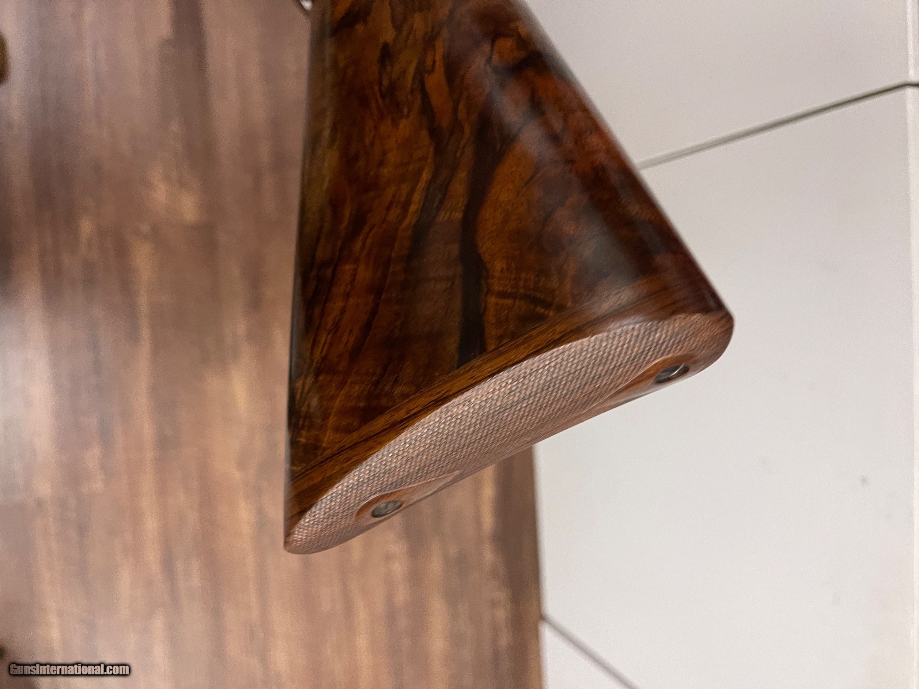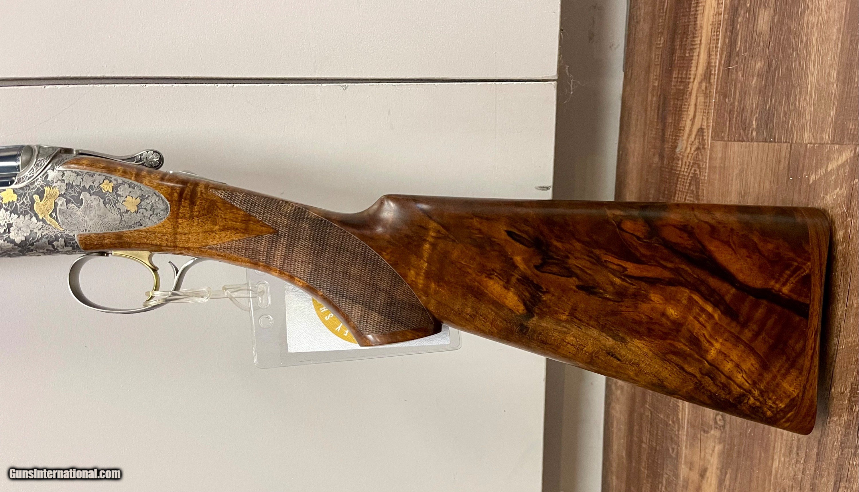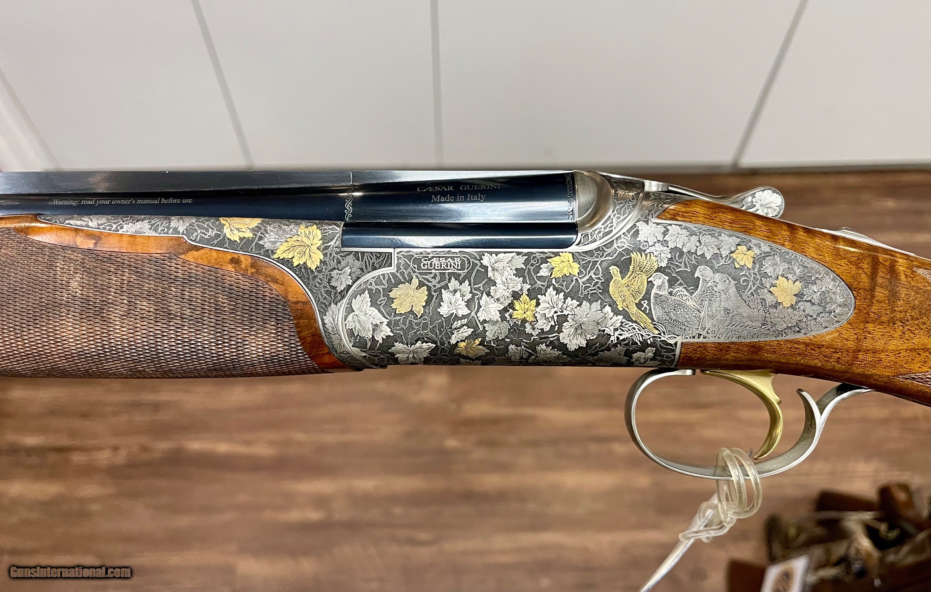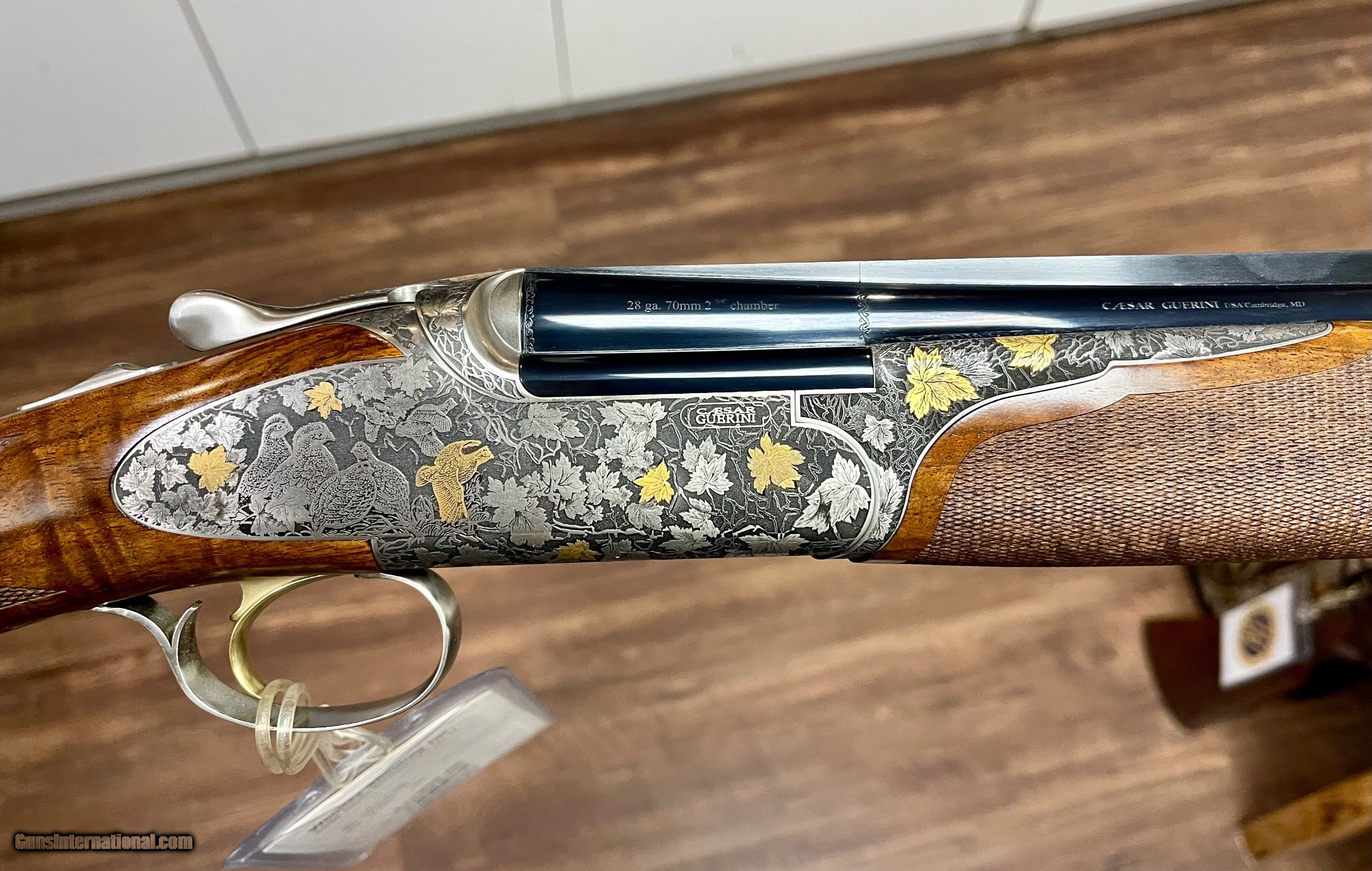 Description: Preowned - Caesar Guerini Revenant field - 28ga 28" barrels with sold rib - Stunning Turkish Walnut Right handed factory POW field stock with a flat pistol grip bottom. Beautiful side plate reciever with deep machine engraving and boss style forearm. Factory specs. Wooden butt pad. Factory case and flush and extended chokes included. Overall this gun is in fantastic condition showing minimal handling marks throughout and a tight action. Some finish wear on top of trigger guard. Today this gun retails at $16,495! SOLD Shotgun Gauge: 28 Gauge Manufacturer: Caesar Guerini Model: Revenant Field Barrel Length: 28” |