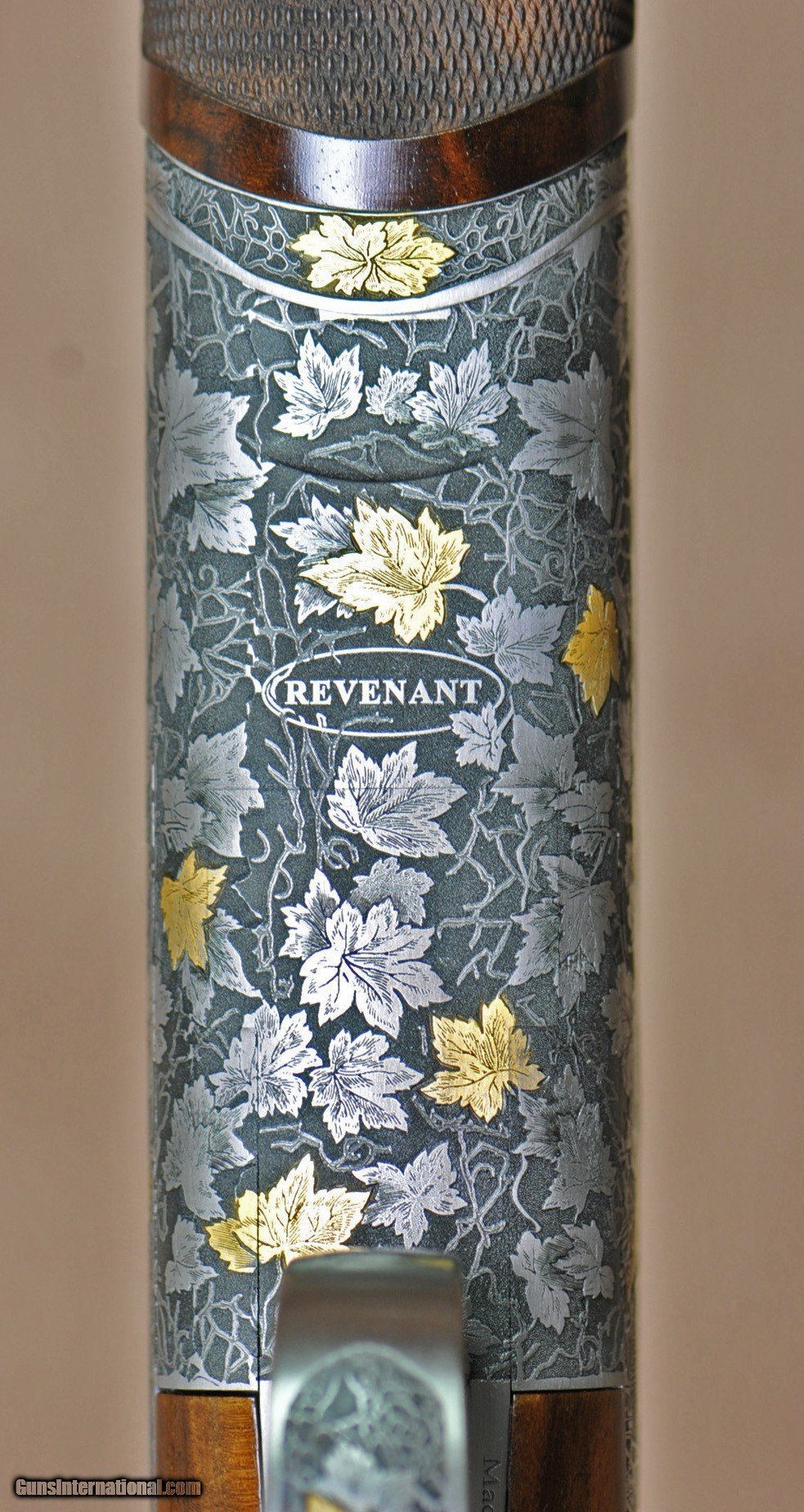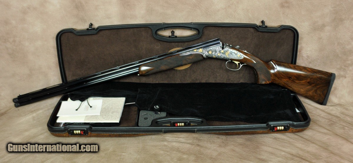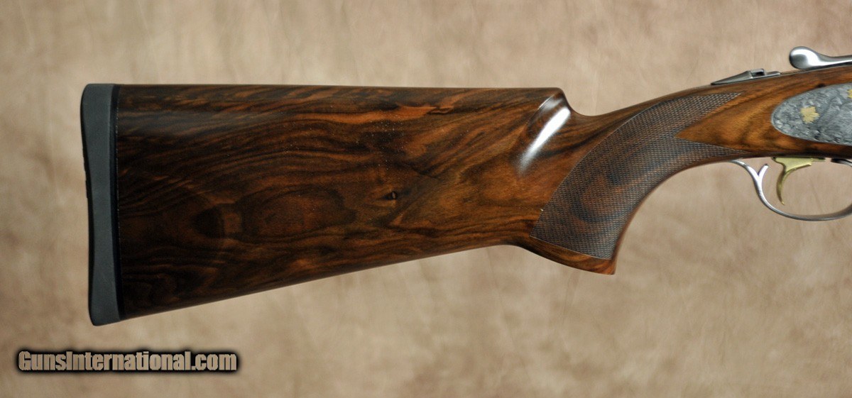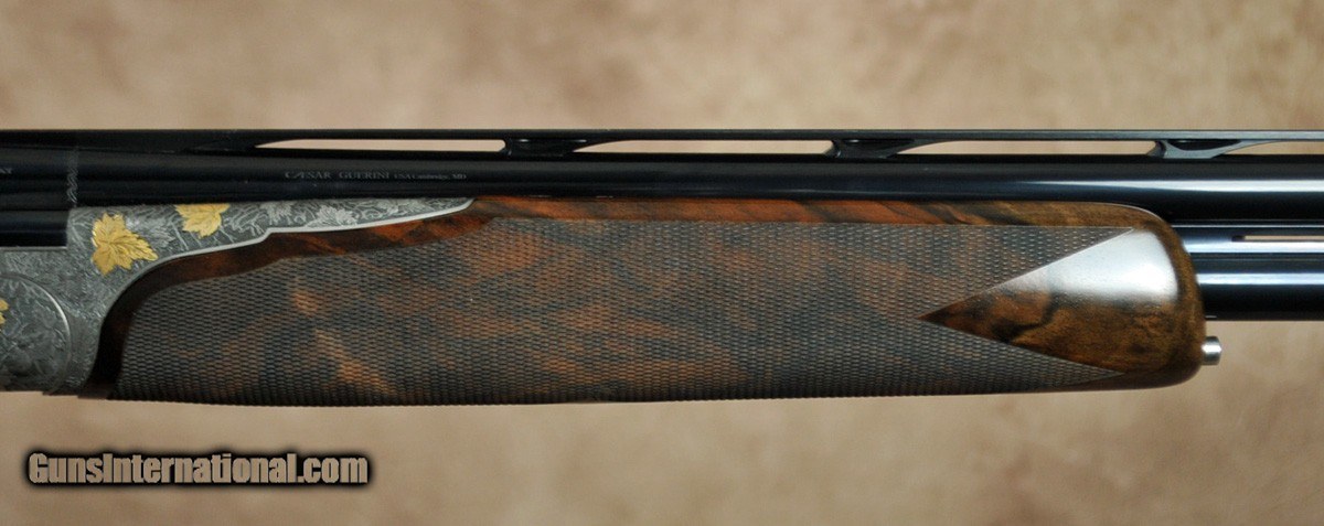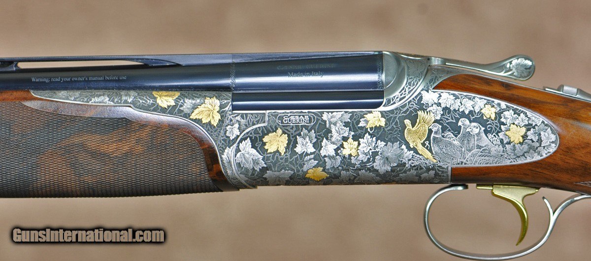 Description: New Arrival from Caesar Guerini Revenant Sporting 20GA with 32″ factory choke tubed barrels, ventilated rib and solid side-ribs. Nitride finished round-action with fully engraved side-plates featuring deep scrolls, grape leaves and game scenes in gold; Boss style forearm iron fully engraved. Factory sporting stock stock with best-grade wood, round fully checkered English forearm. Includes factory case, chokes and tools. Call 248-960-7262 for pricing. SOLD |