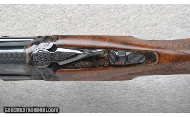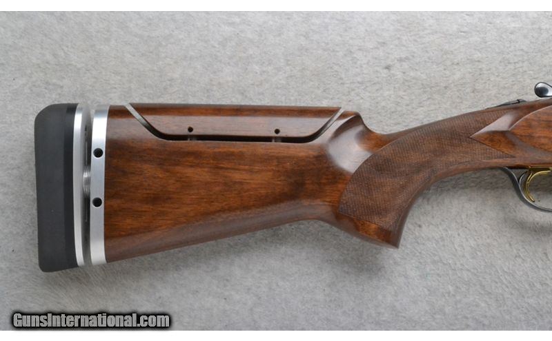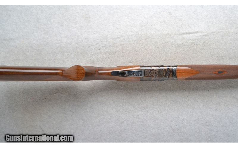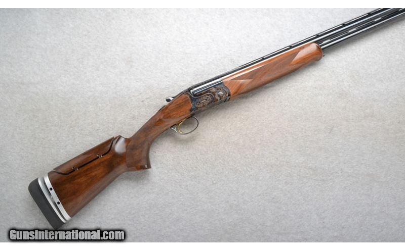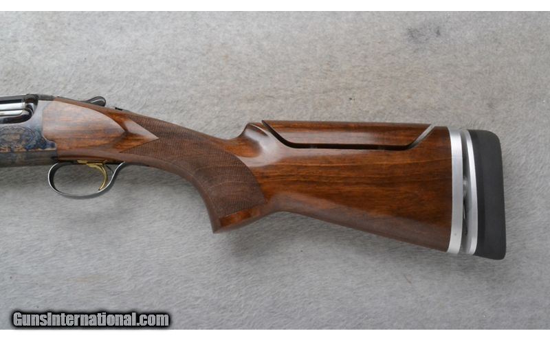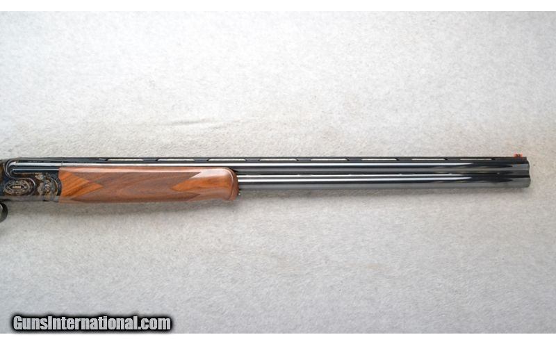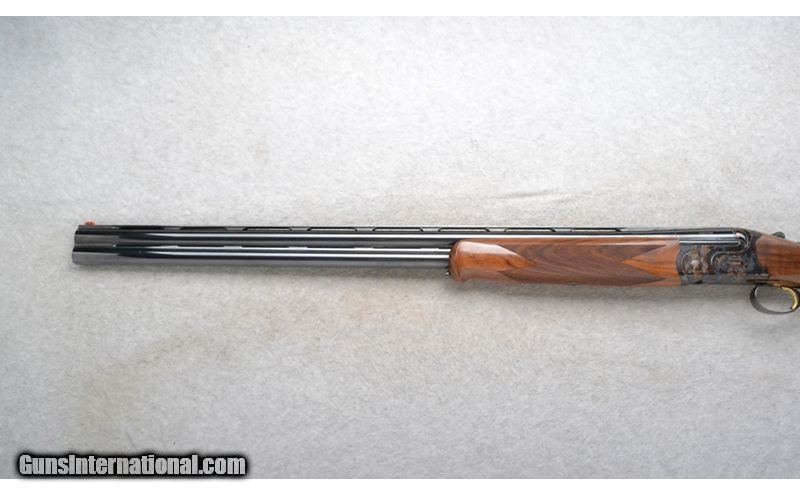 Description: This Caesar Guerini Model Summit is an over and under shotgun in 12 Ga. It has 30 inch ventilated rib barrels with ejectors. A red high visibility front sight and a metal middle bead sight. With 2 3/4 inch chambers it comes with 7 choke tubes. The butt stock is a checkered grip walnut pistol grip with an adjustable comb and butt pad. The golden checkered trigger is LOP adjustable. It has a right hand palm swell. The forearm is a checkered grip walnut Schnabel style. The case colored receiver is nicely engraved. 12 Gauge SOLD Chambers: 2 3/4 inch. Metal Condition: Excellent. Wood Condition: Excellent. Bore Condition: "Clean, bright and shiny. Barrels: 30 inch ventilated rib barrels with ejectors. Triggers: SST. Trigger is adjustable. Stock Dimensions: LOP is trigger and butt pad adjustable. DAC is adjustable. Fore End: Checkered grip walnut Schnabel style. Butt Pad: KICH-EEZ black rubber recoil pad. Weight: 8 Lb. 0 Oz. Sights: Red high visibility front. Metal middle bead. Chokes: Briley and Maxischoke tubes. Comes with 7 choke tubes. Item Location: Richfield, WI |