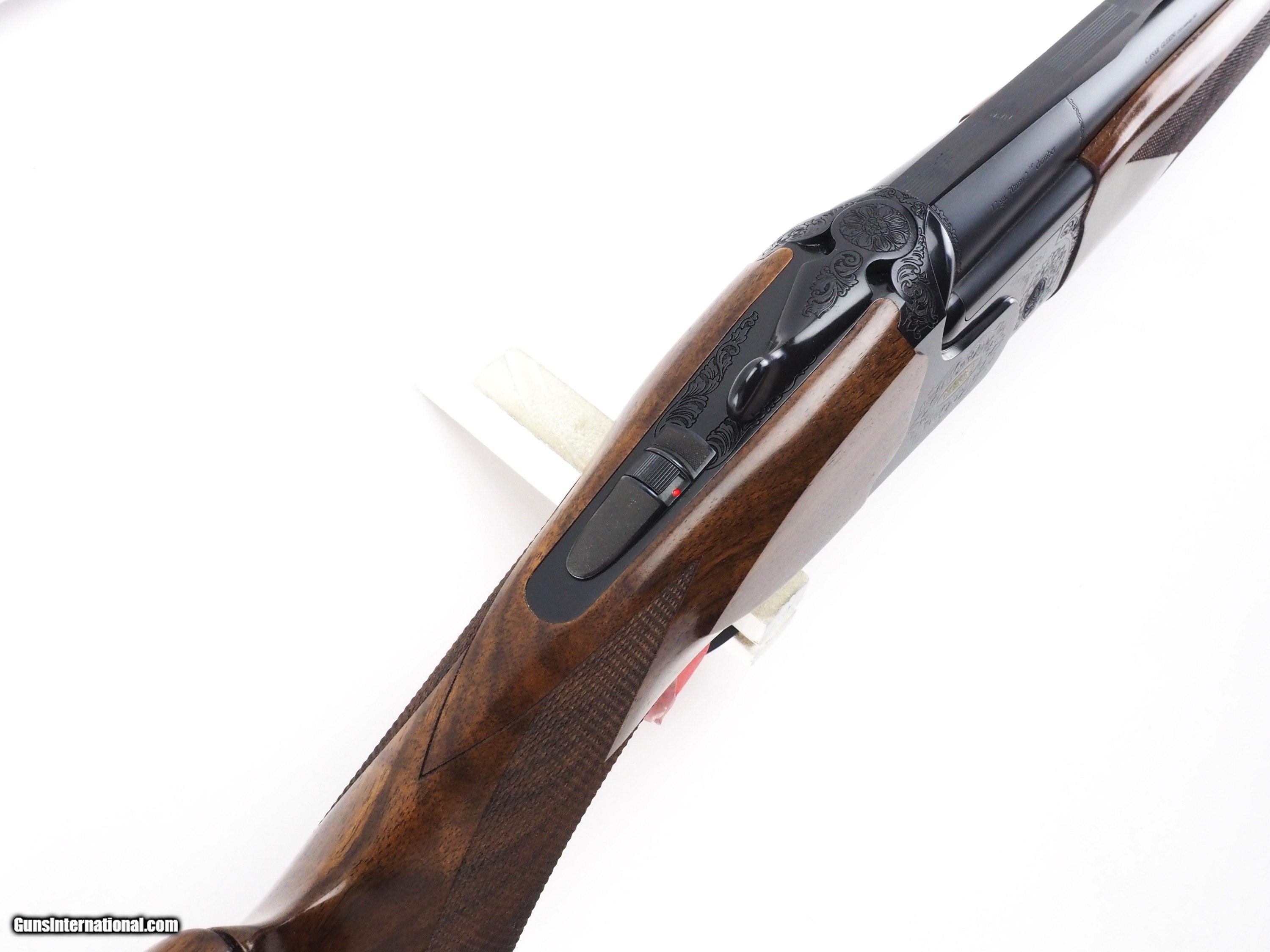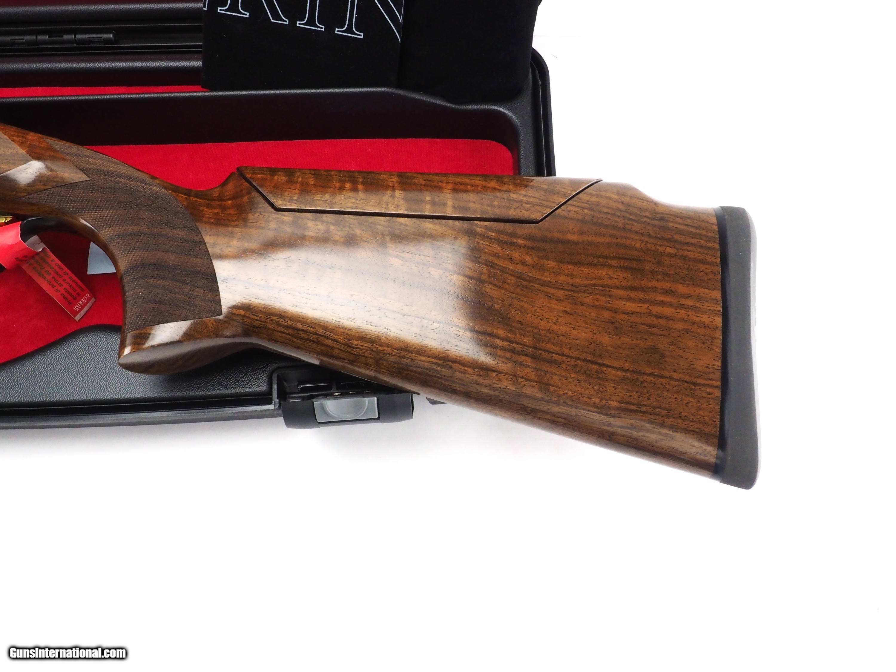 Description: This Summit Ascent features the new 4mm lower comb which accomodates more face shapes by giving more downward adjustability. The 10mm Ascent rib is excellent for increased visibility around the gun, plus easier target acquisition. This is the perfet gun for the shooter who likes the regular Summit Sporting, but prefers a slight Monte Carlo stock and mid-rib. Gauge: 12ga Barrel length: 30" (81cm) Avg. Weight: 8 lbs. 6oz. Recoil Pad: Black rubber Chamber: 2 3/4" Top Rib Width: 10mm - 8mm Tapered Rib Height: 10mm Fixed Forcing Cones: 5" DuoCon Avg. Barrel Weight: 32"-1.52kg (3.35lbs.) Avg. Bore: .735, Chrome lined Chokes: C, SK, IC x2, LM, M Sight(s): White Bradley style front Silver center bead Accessories: Stock and trigger wrench, choke case, friction choke wrench Case: Plastic hard case with fit interior and velvet stock sleeve and barrel sleeve ICN #01010 SOLD |
