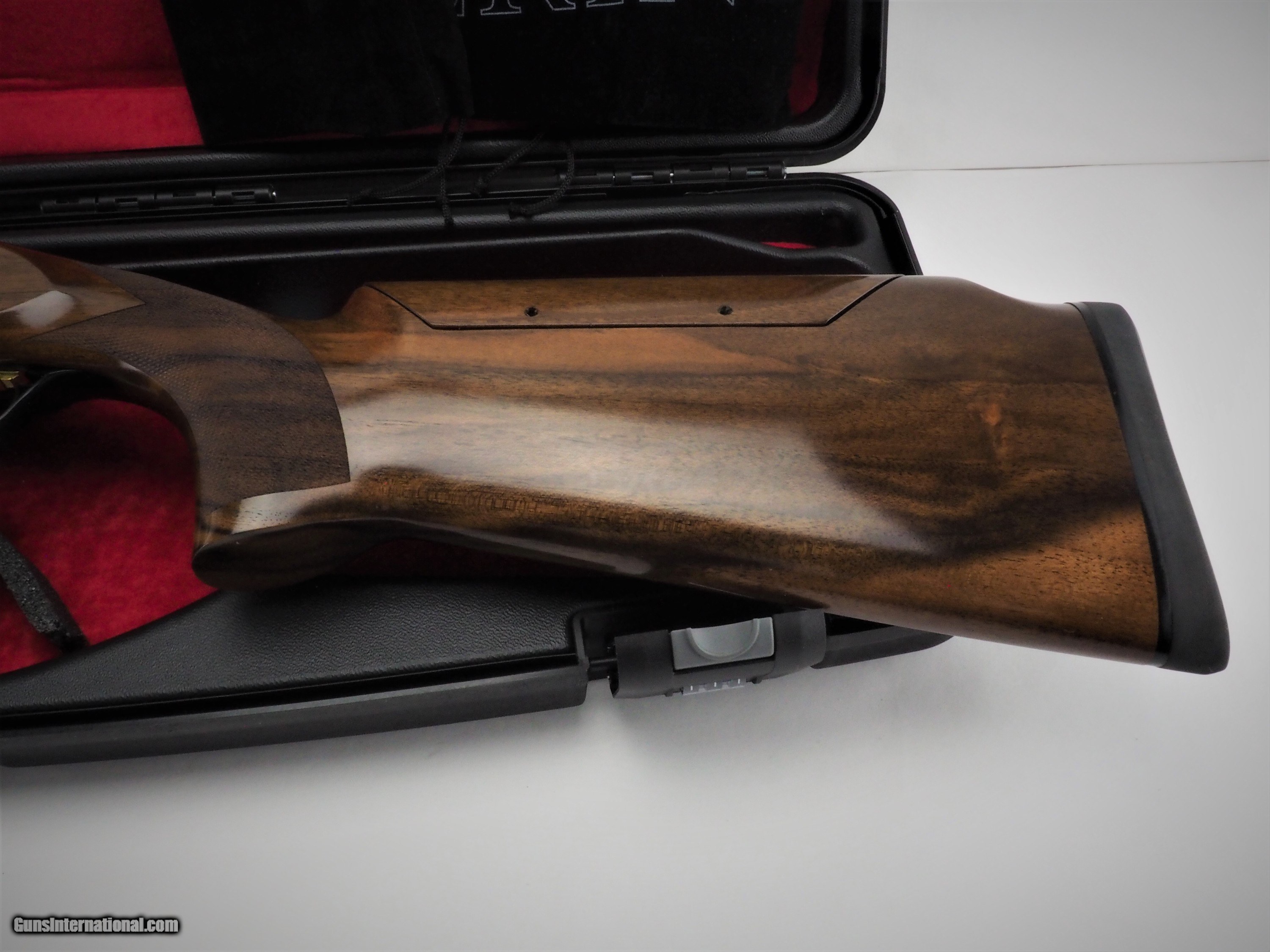 Description: This Summit Ascent Left Hand features the new 4mm lower comb which accomodates more face shapes by giving more downward adjustability. The 10mm Ascent rib is excellent for increased visibility around the gun, plus easier target acquisition. This is the perfet gun for the shooter who likes the regular Summit Sporting, but prefers a slight Monte Carlo stock and mid-rib. Gauge: 12ga Barrel length: 32" (81cm) Avg. Weight: 8 lbs. 6oz. Receiver finish: Satin blued finish with Invisalloy™ clear protection Stock Finish: Hand rubbed oil Checkering: 26 lines per inch Recoil Pad: Black rubber Chamber: 2 3/4" Top Rib Width: 10mm - 8mm Tapered Rib Height: 10mm Fixed Center Rib: Ventilated Forcing Cones: 5" DuoCon Avg. Barrel Weight: 32"-1.52kg (3.35lbs.) Avg. Bore: .735, Chrome lined Chokes: 6 MAXIS competition chokes Sight(s): White Bradley style front Silver center bead Fore-end: Rounded Trigger: New DTS trigger system with two trigger pull weight options, take up, over travel and length of pull adjustments. Factory selective release triggers available in single and double release for 12g. Accessories: Stock and trigger wrench, choke case, friction choke wrench Case: Plastic hard case with fit interior and velvet stock sleeve and barrel sleeve Price: Call for pricing SOLD |