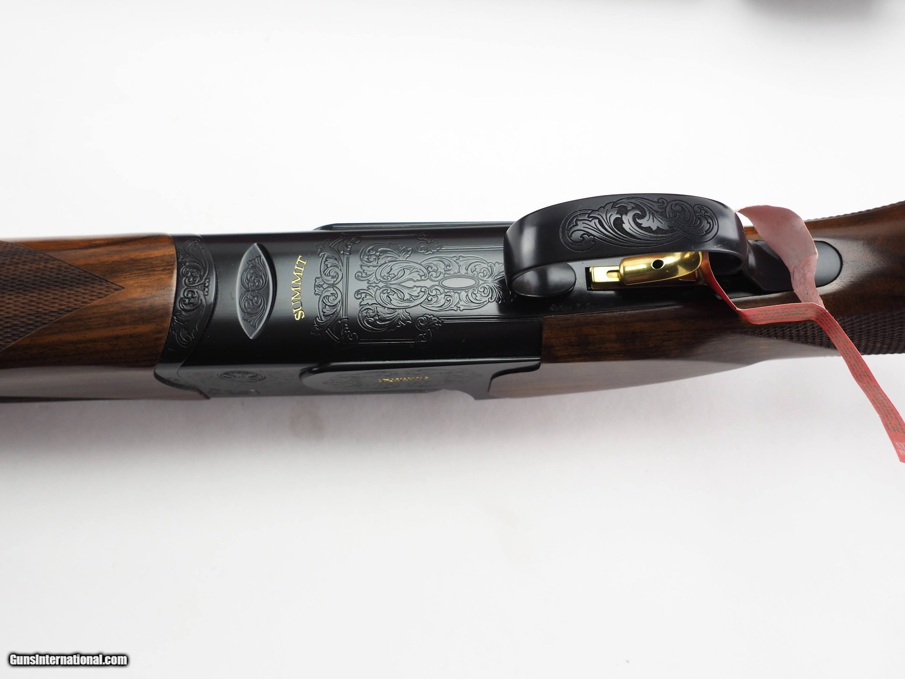 Description: This Summit Ascent features the new 4mm lower comb which accomodates more face shapes by giving more downward adjustability. The 10mm Ascent rib is excellent for increased visibility around the gun, plus easier target acquisition. This is the perfet gun for the shooter who likes the regular Summit Sporting, but prefers a slight Monte Carlo stock and mid-rib. Gauge: 12ga Barrel length: 32" Avg. Weight: 8 lbs. 6oz. Receiver finish: Satin blued finish with Invisalloy™ clear protection Stock Finish: Hand rubbed oil Checkering: 26 lines per inch Recoil Pad: Black rubber Chamber: 2 3/4" Top Rib Width: 10mm - 8mm Tapered Rib Height: 10mm Fixed Center Rib: Ventilated Forcing Cones: 5" DuoCon Avg. Barrel Weight: 32"-1.52kg (3.35lbs.) Avg. Bore: .735, Chrome lined Chokes: 6 MAXIS competition chokes Sight(s): White Bradley style front Silver center bead Fore-end: Rounded Trigger: New DTS trigger system with two trigger pull weight options, take up, over travel and length of pull adjustments. Factory selective release triggers available in single and double release for 12g. Accessories: Stock and trigger wrench, choke case, friction choke wrench Case: Plastic hard case with fit interior and velvet stock sleeve and barrel sleeve Price: Call for pricing. SOLD |