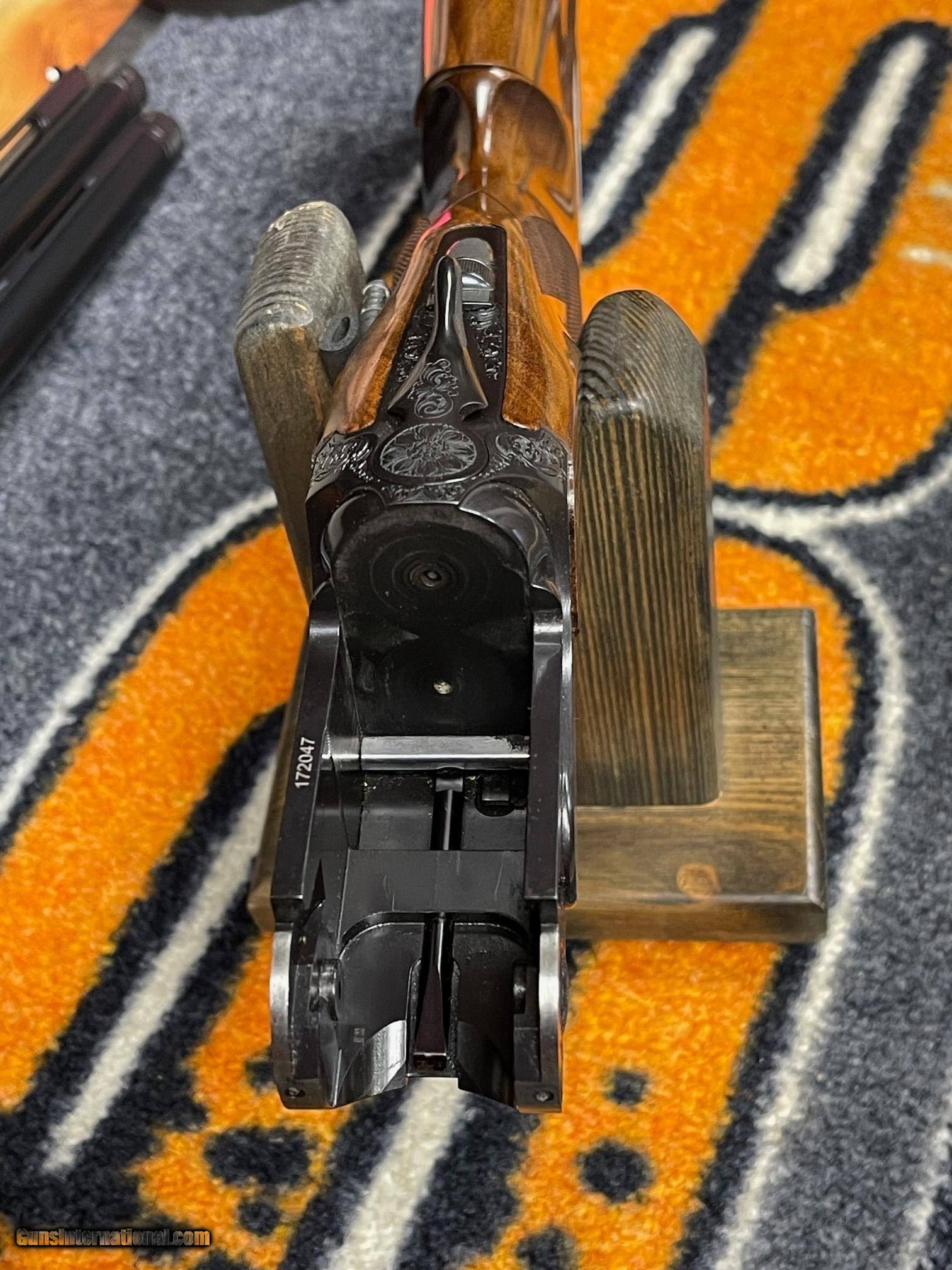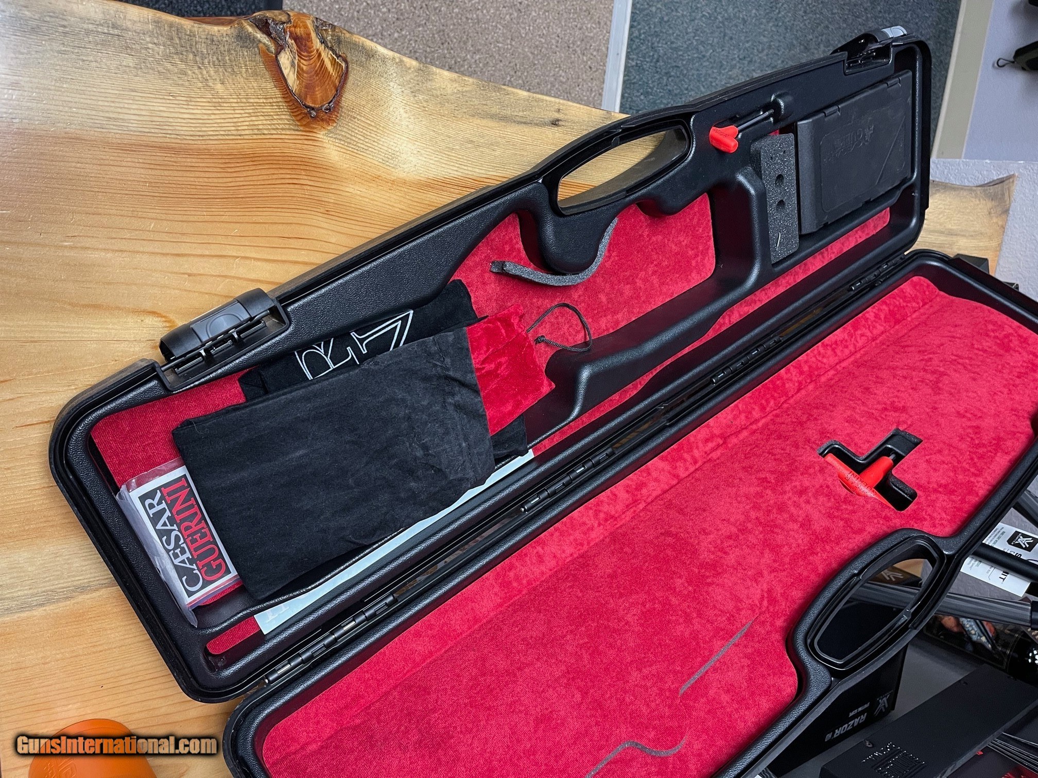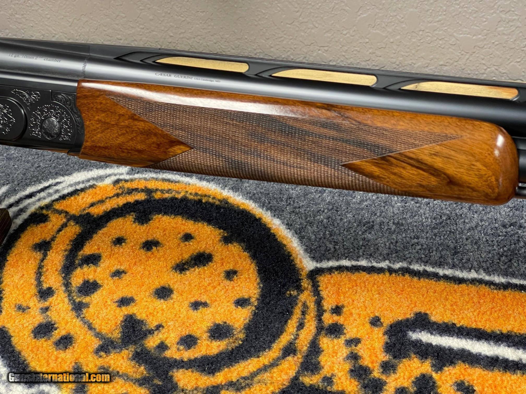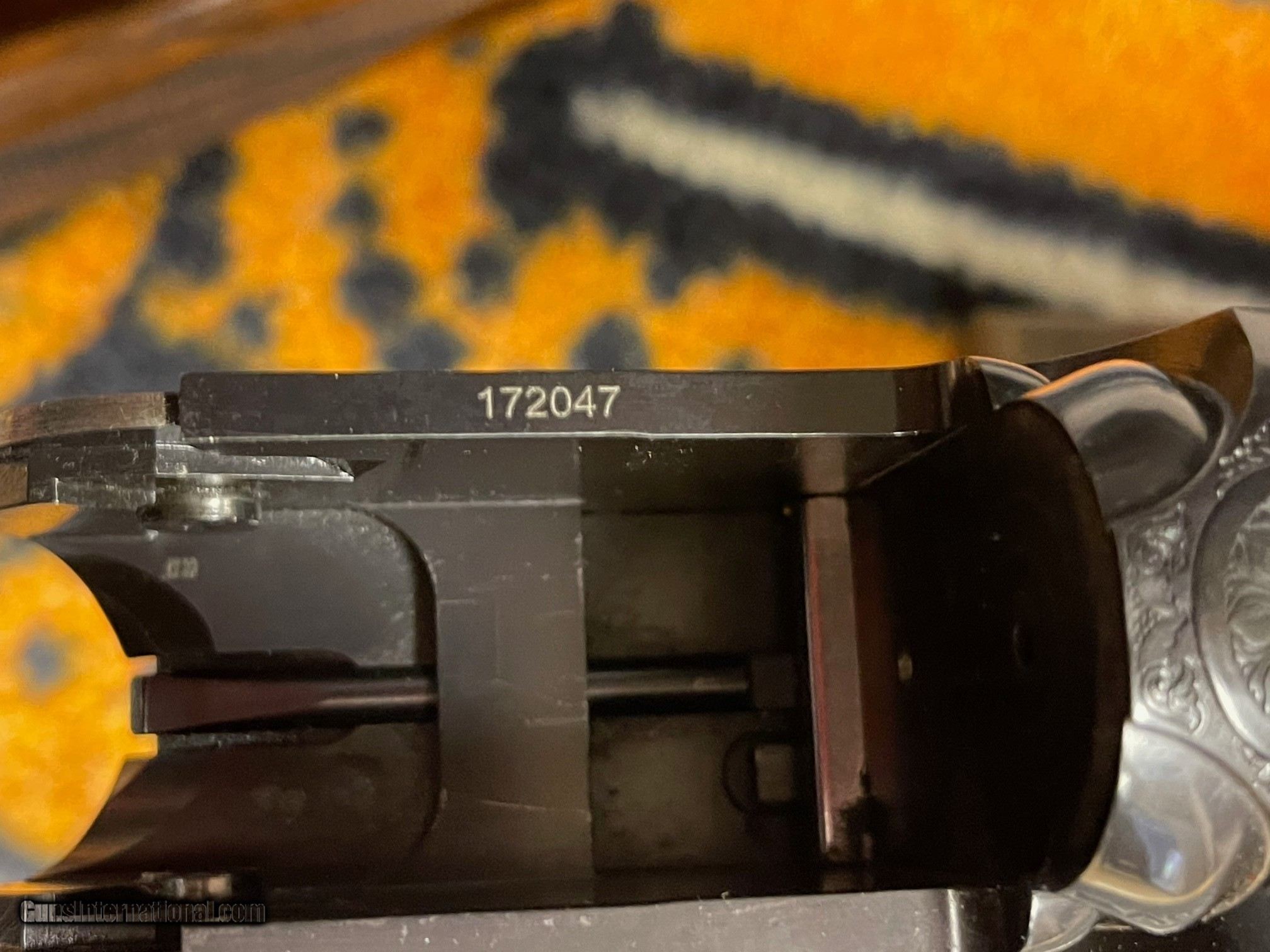 Description: SOLD - Just Arrived / On Consignment - Like New in 99% plus excellent condition! Caesar Guerini Summit Sporting 32" adjustable comb. We sold this new to our customer in summer of 2022. It has less than 600 rounds fired and comes with the full lifetime warranty and one additional "New Owner" Pit Stop with CG. The Summit Ascent is everything you want from a modern sporting clays shotgun. The 10mm high, tapered top rib in combination with a Monte Carlo style stock creates a more comfortable upright shooting position and improved target visibility. This makes the Ascent particularly well suited for the sporting clays shooter who pre-mounts their gun before calling for the target. Importantly, the tapered top rib is designed to provide a flat shooting 50/50% point-of-impact, making it ideal for sporting clays. Additionally, the stock incorporates our DTS adjustable comb allowing a wide variety of shooters to dial in their gun fit precisely. The mass in the stock and barrels are engineered so the gun will balance perfectly. With a long list of winning features, the Summit Ascent is taking sporting clays to the next level. For more information please feel free to call Don at Bad Oscar Shooting Sports 715-388-8411 or 414-915-9609. ??????? SOLD Shotgun Gauge: 12 Gauge Manufacturer: Caesar Guerini Model: Summit Ascent Serial Number: 172047 Barrel Length: 32 Bore: Forcing Cones 5" DuoCon Chambers: 2-3/4" Ejectors: Auto Condition: LIKE NEW 99.9% Metal Condition: Excellent Wood Condition: Excellent Bore Condition: Excellent Barrels: Steel - Satin blued finish with Invisalloy™ clear protection Barrel Type: Over / Under Action: Break Action Triggers: Inertia adjustable position Stock: Turkish Walnut Stock Drop: Drop at Monte Carlo 2" / Drop at heel 2.5 Stock Comb: Drop at comb - 1.625" (adjustable) Stock Heel: Drop at heel 2.5 Stock Cast: Cast at heel .15" / Cast at toe .315 Fore End: Rounded Fore-end Butt Pad: Black Rubber LOP: 14.75" (adjustable) Rib: 10mm Fixed / Width 11mm - 8mm Tapered Finish: Satin blued finish with Invisalloy™ clear protection Weight: 8 lbs. 6oz. Manufacture Date: 2022 Chokes: 6 MAXIS competition chokes Engraving: Detailed ornamental scroll engraving Case: Negrini Fitted Case Item Location: Wisconsin |