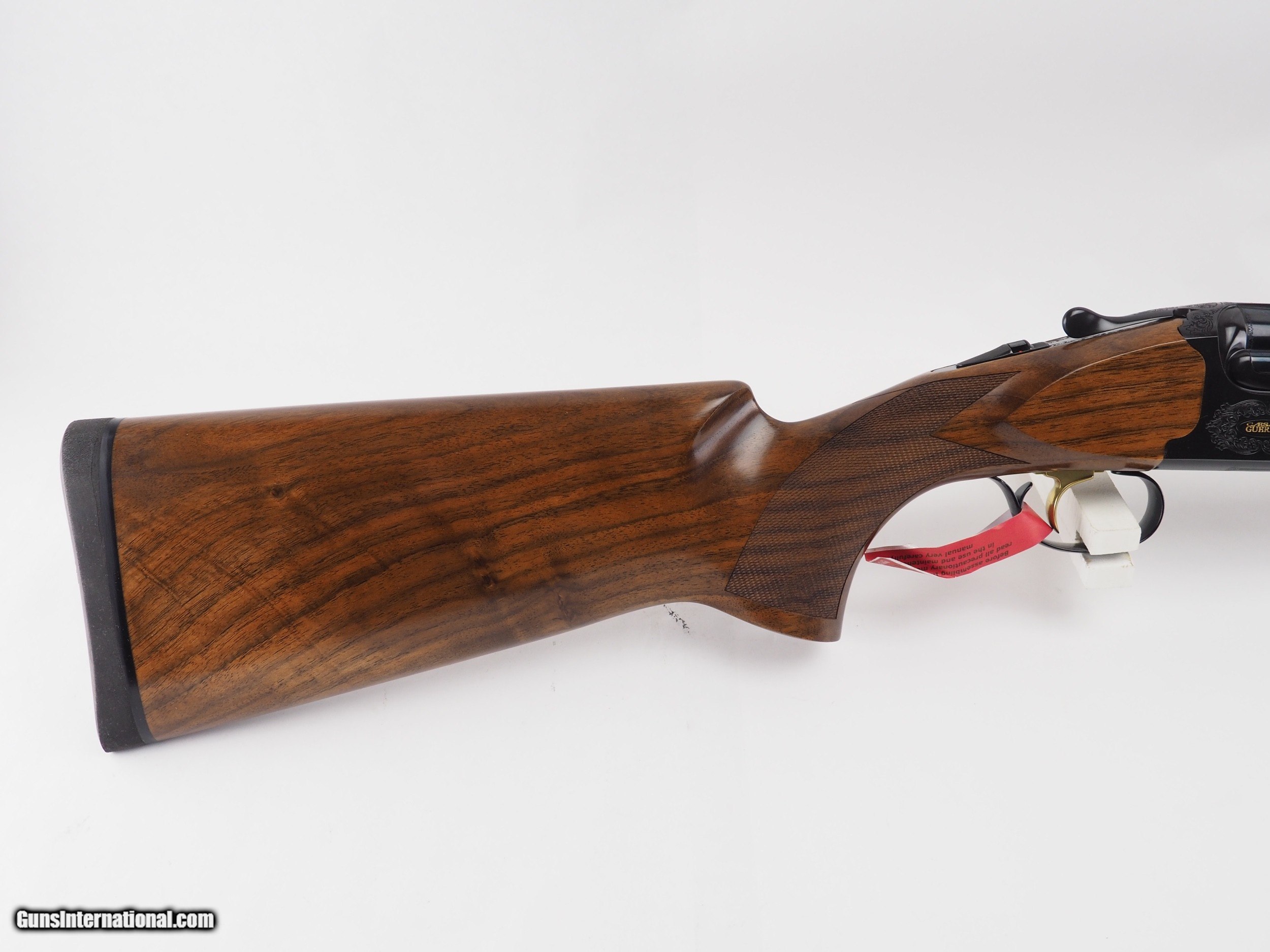 Description: The Summit Sporting is Caesar Guerini's workhorse flat rib gun that performs equally well on the skeet and sporting clays fields. This is the same gun as the regular Summit Sporting, but with a blued/black receiver. Quite honestly, we find it hard to beat the Summit's combination of durability, aesthetics, and handling in the $3k-$4k price bracket. Add to that the truly top-shelf service and support of the CG gunsmith shop, and you have product value that remains untouched in the industry. For smaller-statured shooters, the Summit Compact is available. Drop at comb: 1.5" Drop at heel: 2.25" Length of pull: 14.75" Cast at heel: .12" Cast at toe: .2" Pitch: 5° Gauge: 12 Barrel length: 30" Avg. Weight**: 8lbs. Receiver finish: Hand polished coin finish with Invisalloy™ protective Stock Finish: Hand rubbed oil Checkering: 26 lines per inch Recoil Pad: Black rubber Chamber: 2 3/4" Top Rib Width: 10mm (.4") parallel and ventilated Rib Height*: 6mm Center Rib: Ventilated Forcing Cones: 5" DuoCon Avg. Barrel Weight: 32"-1.52kg (3.35lbs.) Avg. Bore: .735, Chrome lined Chokes: C, SK, IC (x2), LM, M Sight(s): White Bradley style front - Silver center bead Fore-end: Schnabel Trigger: New DTS trigger system with length of pull adjustments. Factory selective release triggers available in single and double release for 12ga Safety: Manual (automatic is optional) Accessories: Stock and trigger wrench, choke case, friction choke wrench Case: Plastic hard case with fit interior and velvet stock sleeve and barrel sleeve SOLD Shotgun Gauge: 12 Gauge |