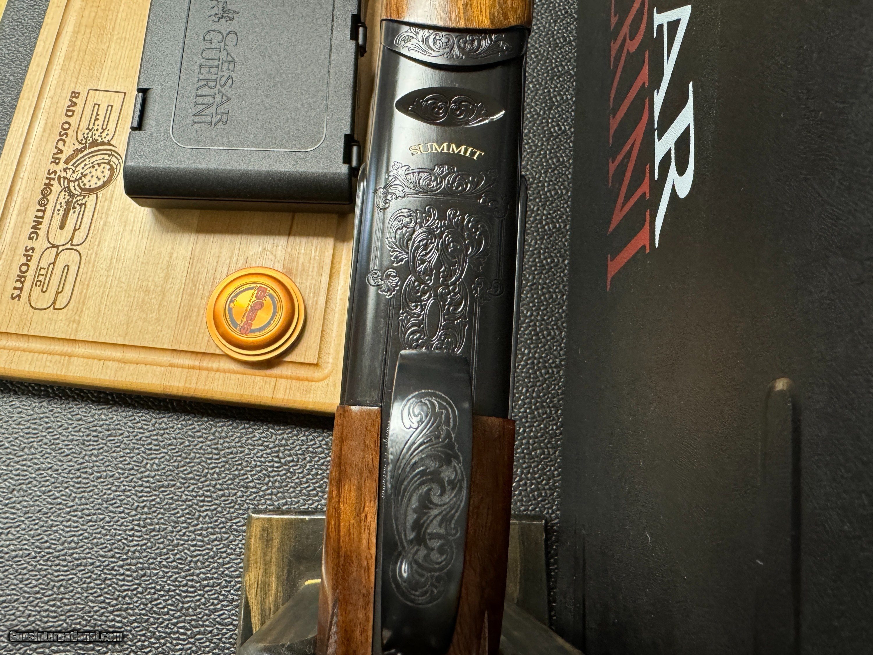 Description: NEW ARRIVAL!! CAESAR GUERINI SUMMIT IMPACT 32" 12 GAUGE New in our shop is this beautiful Caesar Guerini Summit Impact 12 gauge! The Caesar Guerini Summit Impact Shotgun is a masterpiece of Italian craftsmanship designed for the discerning shooter. This brand-new shotgun features 32" barrels, offering exceptional balance and precision for all clay target disciplines. It comes with an adjustable comb to ensure a comfortable shooting experience and help you break more targets. With its adjutable (for point of impact) rib, this gun allow for endless customizations to fit whatever shooting situation you might find yourself in. Includes: Choke, comb, and rib adjustment wrenches Factory Fitted Hard Case 6 MAXIS Competition Chokes Caesar Guerini PITSTOP Program Eligibility For more information contact Don at Bad Oscar Shooting Sports at 715-388-8411 SOLD Shotgun Gauge: 12 Gauge Manufacturer: Caesar Guerini Model: Summit Impact Serial Number: 184125 Bore: .735, Chrome lined Chambers: 2.75 Ejectors: Auto Condition: NEW IN BOX Barrels: Over Under Action: Break Triggers: DTS trigger system with two trigger pull weight options, take up, over travel and length of pull adjustments. Stock: Monte Carlo Comb Adj Stock Drop: 1.875" At Mote Carlo Stock Comb: 1.5" (adjustable) drop at comb Stock Heel: 2.25" Drop At Heel Stock Cast: .15" cast at heel, .315" cast at heel Fore End: Rounded Butt Pad: Black Rubber LOP: 14.75" (adjustable) Rib: 11 - 9.6mm tapered. Adjustable from 50/50 low to 90/10 high. Finish: Hand rubbed oil Weight: 8lbs. 6ozs Sights: White Bradley style + Silver mid-bead Manufacture Date: 2024 Chokes: 6 MAXIS Competition Chokes Extras: Caesar Guerini PITSTOP Program Eligibility Case: Factory Fitted Hard Case Item Location: Wisconsin |