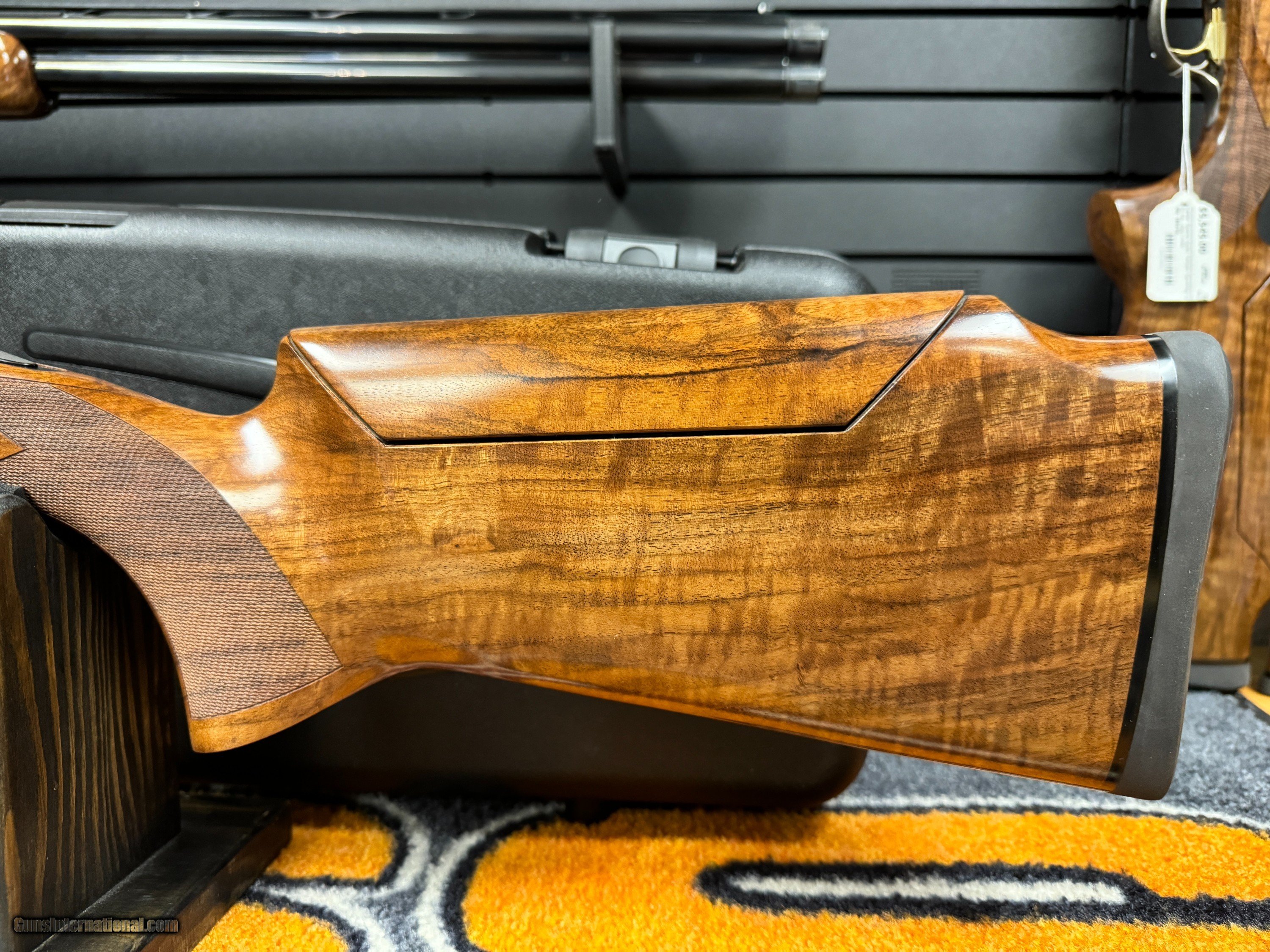 Point of impact, overall weight (via optional recoil reduction system), trigger characteristics, recoil control, and balance are all adjustable to be able to fit your body and provide the best shooting experience possible. The design and height of the rib allows for an upright shooting stance, while alleviating strain on the neck and shoulders. Looking to up your game as a competitive clay shooter? Then the Summit Impact is the gun for you! For more information contact Don at Bad Oscar Shooting Sports at 715-388-8411 SOLD Shotgun Gauge: 12 Gauge Manufacturer: Caesar Guerini Model: Summit Impact Serial Number: 183410 Chambers: 2.75 Ejectors: Auto Condition: MINT IN BOX Barrels: Over Under Action: Break Triggers: DTS trigger system with two trigger pull weight options, take up, over travel and length of pull adjustments. Stock: Monte Carlo Comb Adj Stock Drop: 1.875" At Mote Carlo Stock Comb: 1.5" Drop at Comb Stock Heel: 2.25" Drop At Heel Stock Cast: 0.15 Cast at Heel Butt Pad: Black Rubber LOP: 14.75" (adjustable) Rib: Ventilated Finish: Hand rubbed oil Weight: 8lbs 6oz Sights: White Bradley style front, Silver center bead Manufacture Date: 2024 Chokes: 6 MAXIS Competition Chokes Case: Negrini Fitted Hard Case Item Location: Wisconsin |
