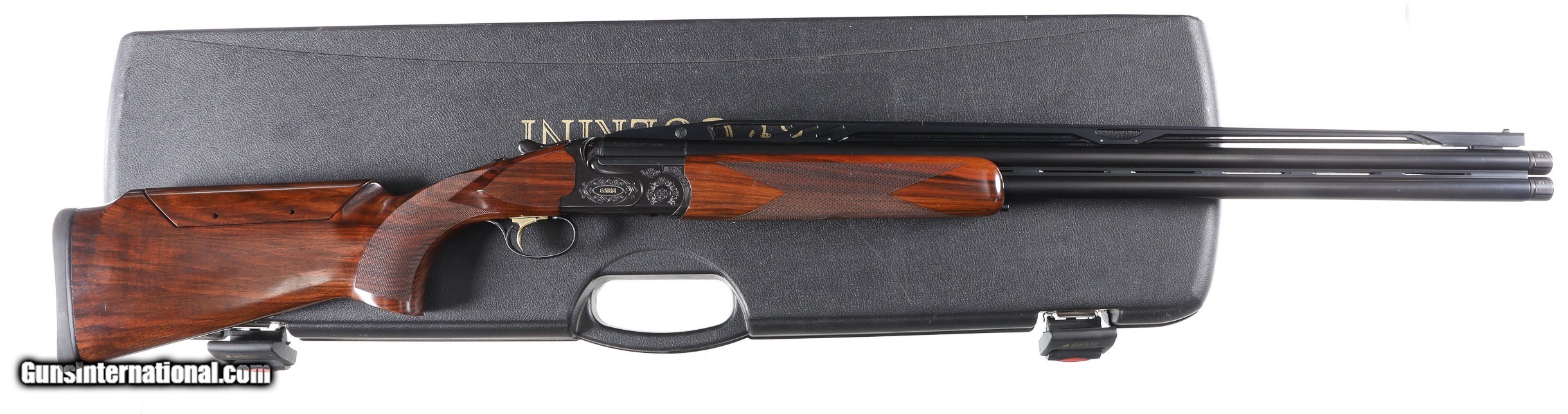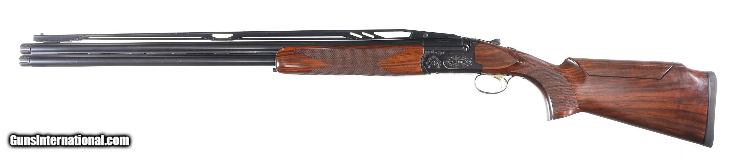 Description: Caesar Guerini Summit Impact Trap over under 12 Ga, with 32" bbl, adjustable high trap rib with interchangable chokes. Single selective / adjustable trigger with ejectors. Varnished checkered pistol grip walnut stock with adjustable comb. Housed in factory luggage case with full compliment of extended chokes and adjustment tools with travel sleeves. Condition, Nearly new with very light use and retaining all finishes. LOP 14 1/2" Adjustable. DAC & DAH Adjustable. Chamber 2-3/4" • Free Shipping, No Credit Card Fees. • Lay-a-way available for this firearm. • 1/3 Down, a 1/3 in 30 Days 1/3 in 60 Days. SOLD Shotgun Gauge: 12 Gauge Manufacturer: Caesar Guerini Model: Summit Impact Black Serial Number: 134958 Barrel Length: 32 |