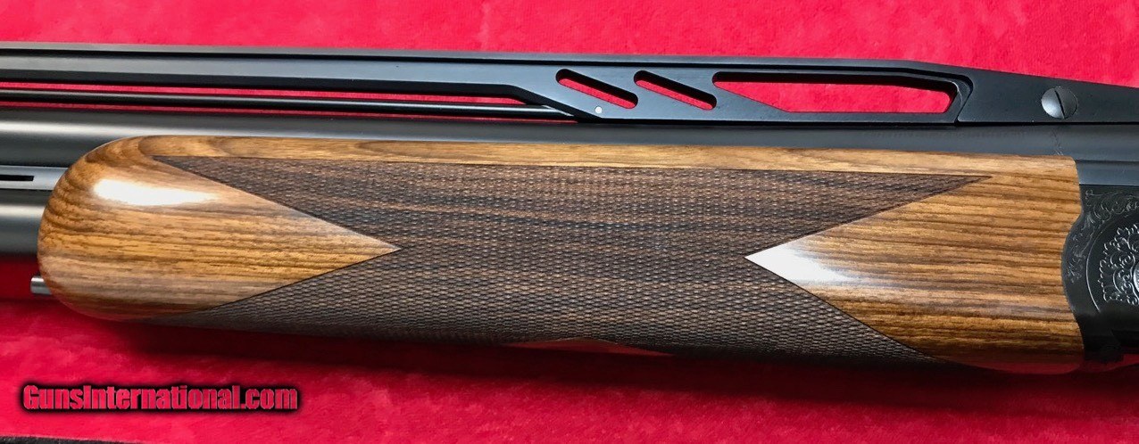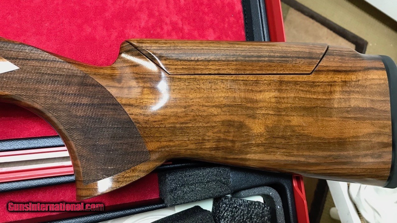 Description: I bought this shotgun thinking I'd develop an interest in trap shooting but did not get into it. This very fine shotgun has had either 8 or 9 boxes of shells through it, and other than two or three tiny safe dings in the finish of the butt stock you'd think it was new. 32" tubes, weight is 8# 11oz and LOP with the trigger set as it is right now is 15". Comes with all paperwork and 7 choke tubes. You will not be disappointed with this one. SOLD |