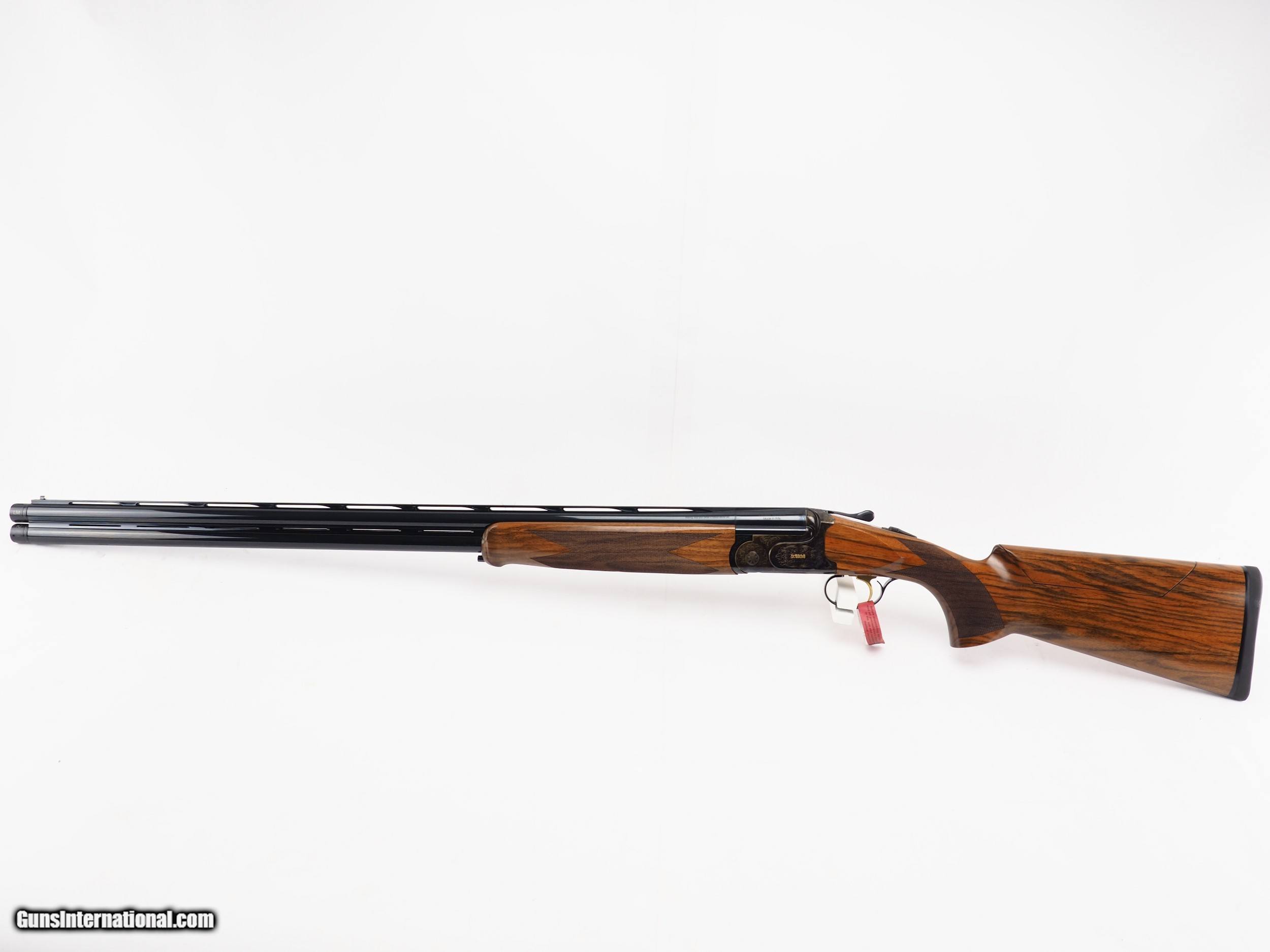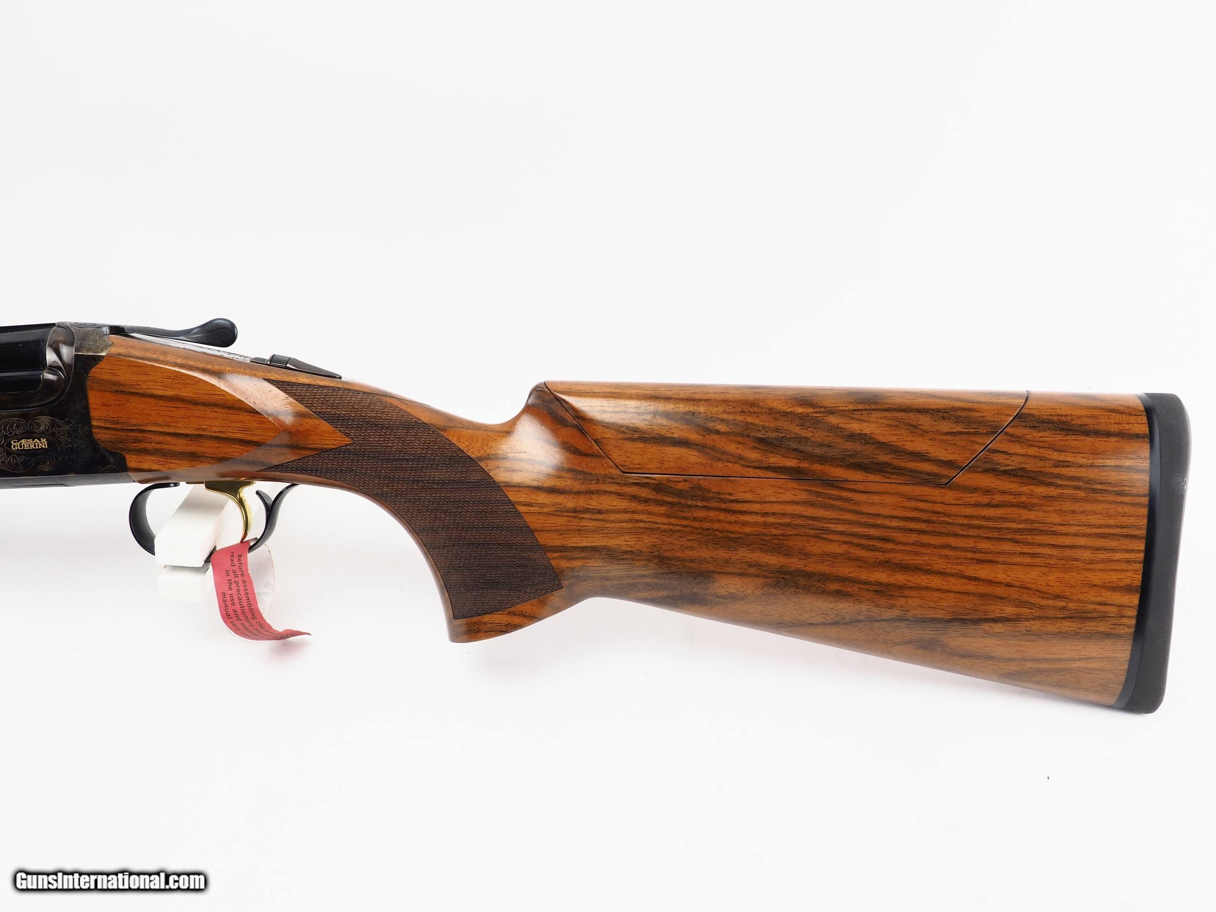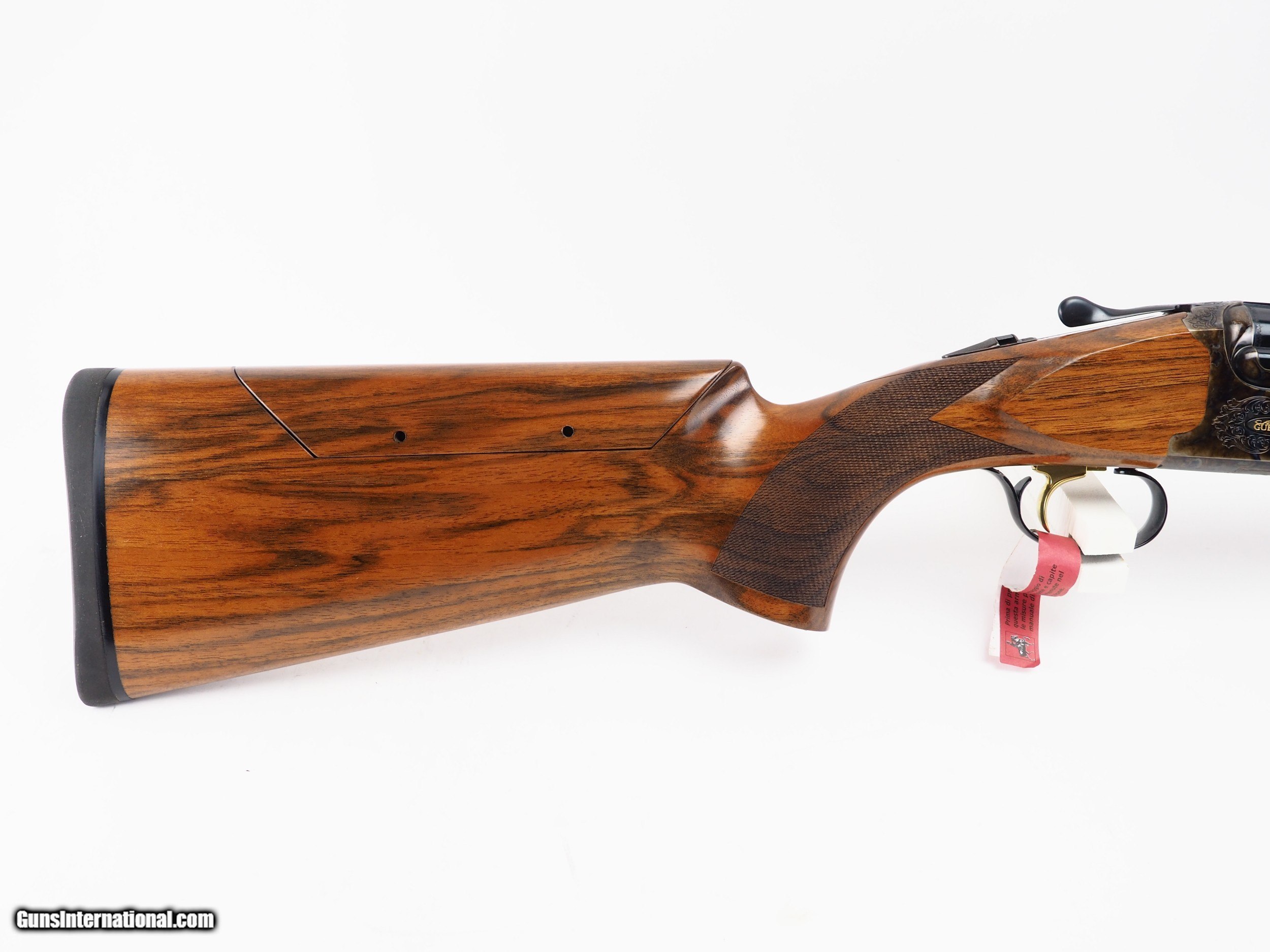 Description: Book #1924. MSRP: $5295.00 (call for competitive pricing). Drop at comb: 1.5" Drop at heel: 2.25" Length of pull: 14.75" Cast at heel: .12" Cast at toe: .2" Pitch: 5° Gauge: 12 Barrel length: 32" Avg. Weight**: 8lbs. Receiver finish: Hand polished coin finish with Invisalloy™ protective Stock Finish: Hand rubbed oil Checkering: 26 lines per inch Recoil Pad: Black rubber Chamber: 2 3/4" Top Rib Width: 10mm (.4") parallel and ventilated Rib Height*: 6mm Center Rib: Ventilated Forcing Cones: 5" DuoCon Avg. Barrel Weight: 32"-1.52kg (3.35lbs.) Avg. Bore: .735, Chrome lined Chokes: C, SK, IC (x2), LM, M Sight(s): White Bradley style front - Silver center bead Fore-end: Schnabel Trigger: New DTS trigger system with length of pull adjustments. Factory selective release triggers available in single and double release for 12ga Safety: Manual (automatic is optional) Accessories: Stock and trigger wrench, choke case, friction choke wrench Case: Plastic hard case with fit interior and velvet stock sleeve and barrel sleeve SOLD |