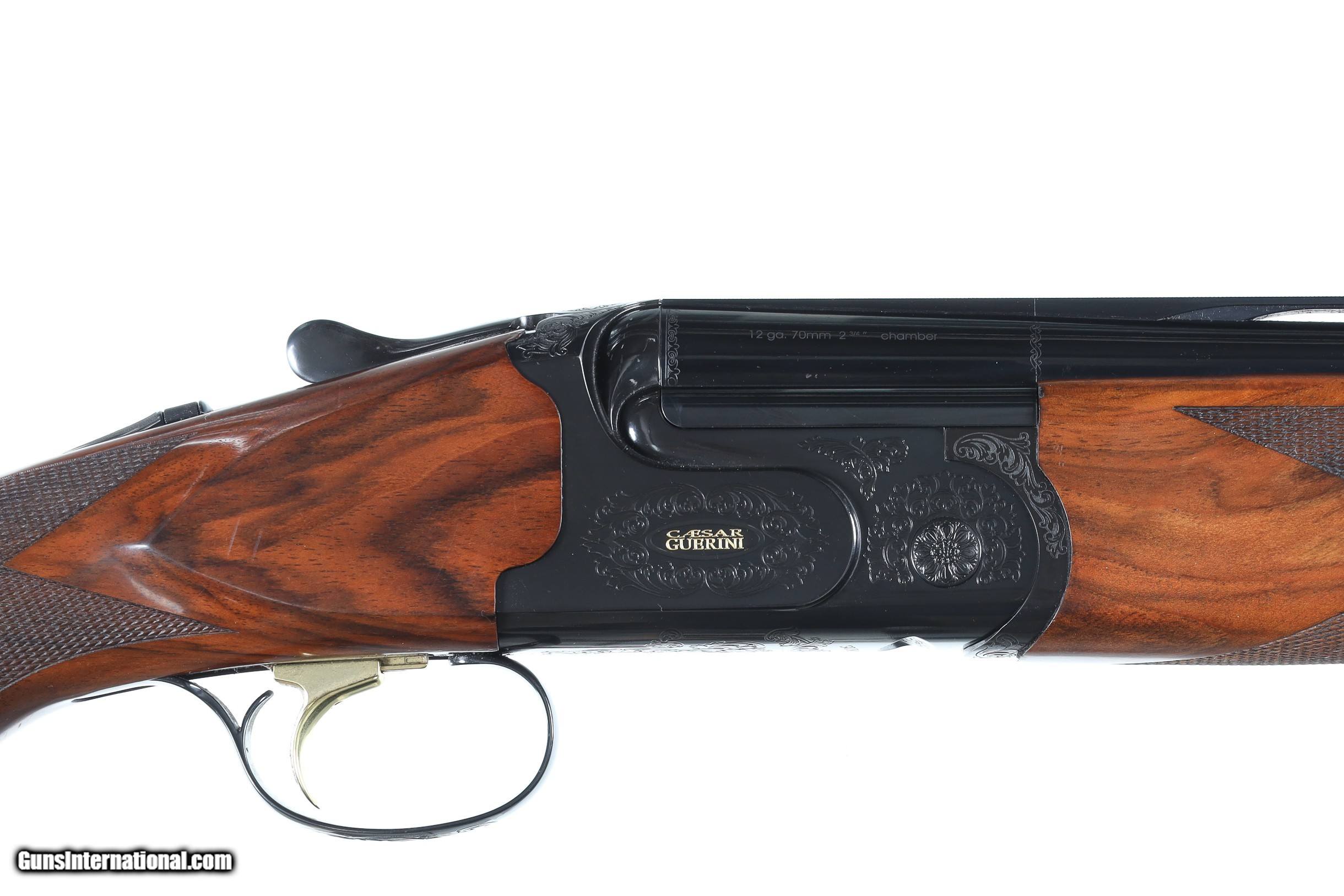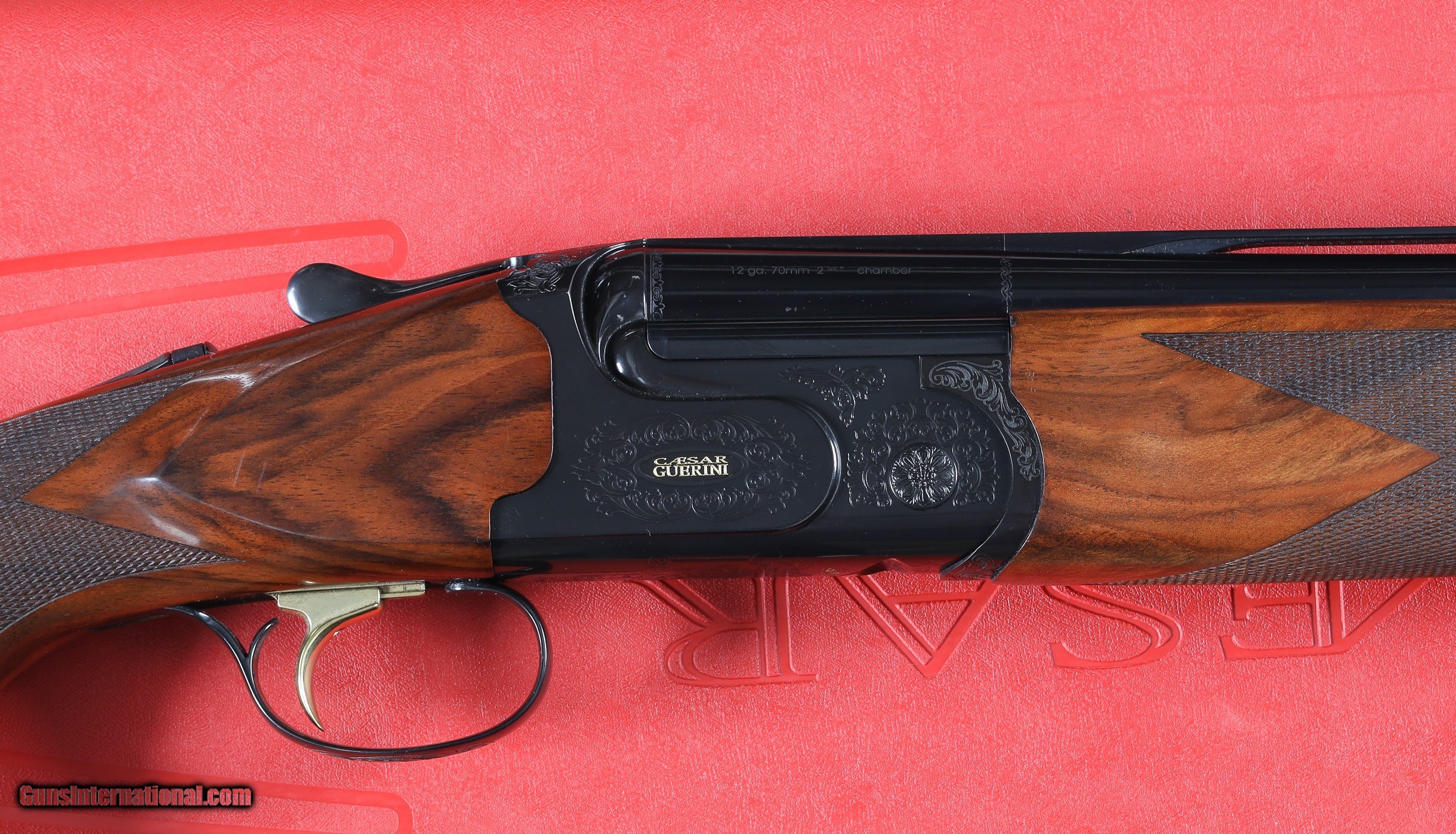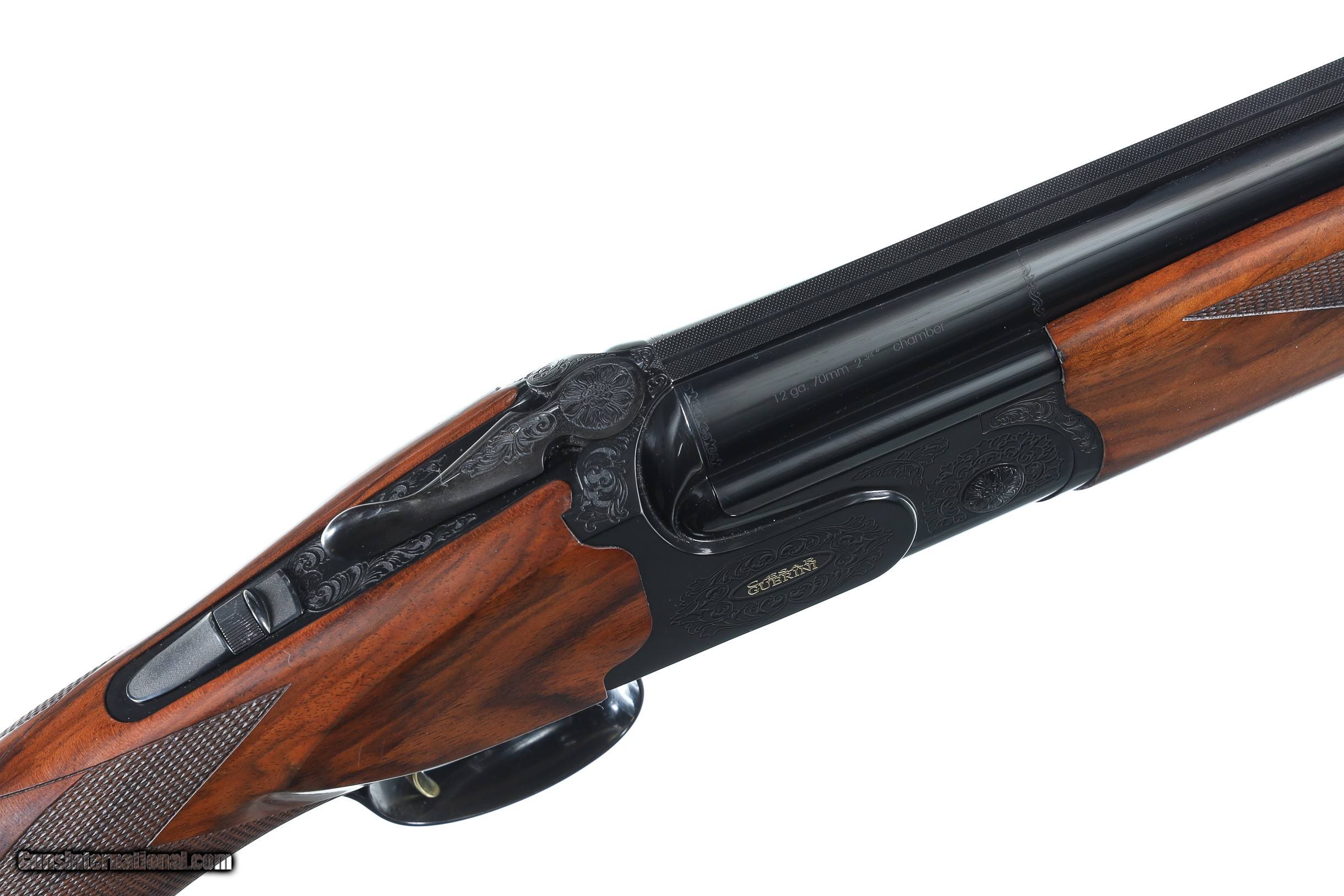 Description: Caesar Guerini Summit Sporting Clays over / under 12 ga shotgun with high polished blue finish, scroll engraved receiver with gold inlaid company mono gram and model on underside. Varnished, highly figured checkered pistol grip sporting clay stock with matching forearm. Full set of 8 interchangeable factory choke tubes w/ wrench and housed in factory locking luggage case with travel sleeves. Condition: Very fine with bright bores and metal retains over 98% factory blue. Stocks are excellent with some light handling marks. Action operates properly and locks solidly. 15" LOP over factory 3/4" recoil pad. 1-3/8" DAC 2-1/8 DAH. 2-3/4" chamber. Mfg in 2018. Slight left hand cast, 4 lb trigger pull, weight is 8 pounds 8 ounces. • Free Shipping, No Credit Card Fees. • Lay-a-way available for this firearm. • 1/3 Down, a 1/3 in 30 Days, 1/3 in 60 Days. SOLD Manufacturer: Caesar Guerini Model: Summit Serial Number: 156033 Barrel Length: 31 3/4 Bore: 12 Ga, Chambers: 2 3/4 Ejectors: Yes Condition: Excellent Metal Condition: Excellent Wood Condition: Excellent Bore Condition: Bright Barrels: 31 3/4 Barrel Type: Over Under Action: Box Lock Triggers: Single Selective Stock: Checkered Walnut Stock Comb: 1 3/8 Stock Heel: 2 1/8 LOP: 15 Rib: Vent Finish: Blue Sights: Bead Manufacture Date: 2018 Chokes: Interchangeable Tubes Extras: Luggage Case / Tools |