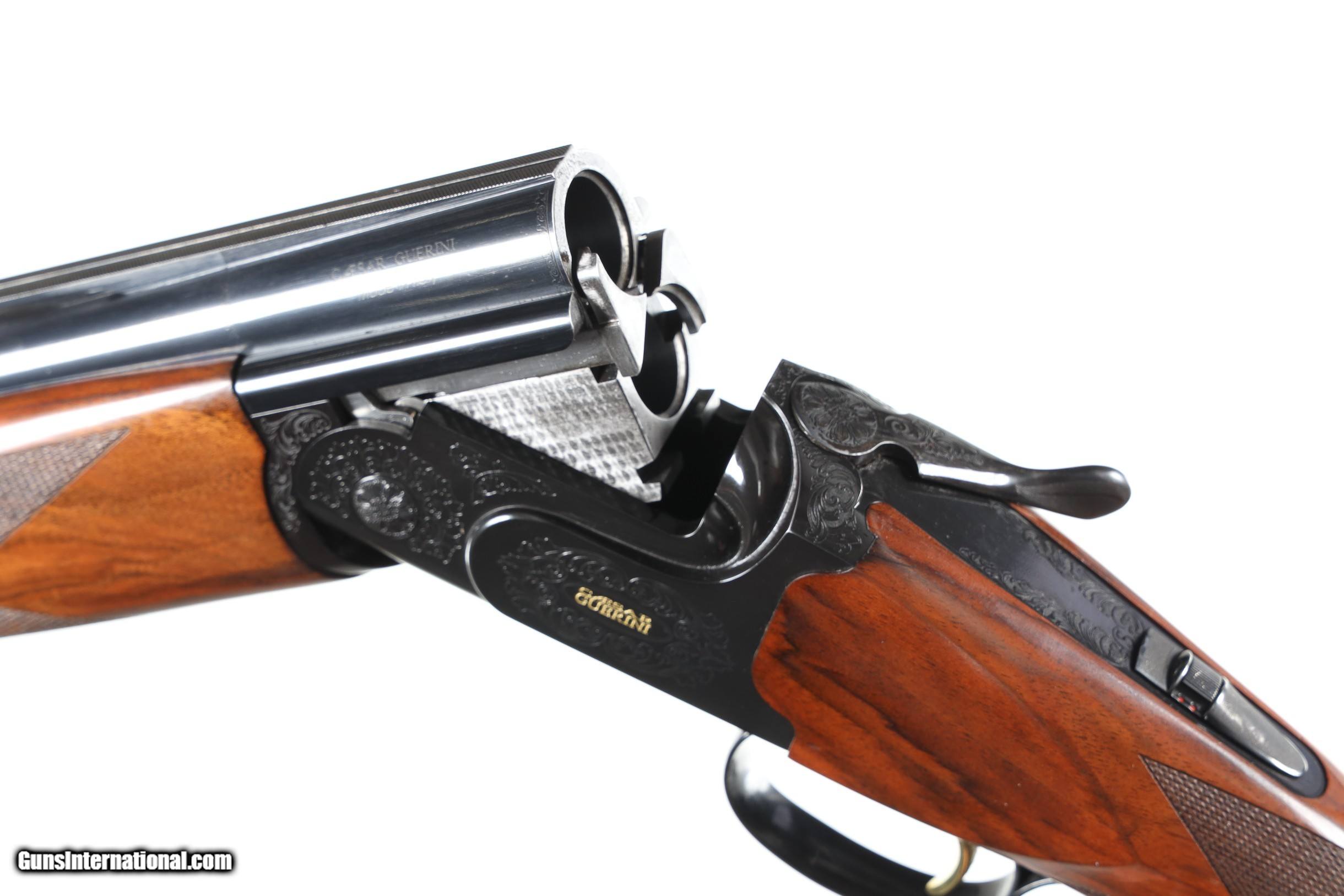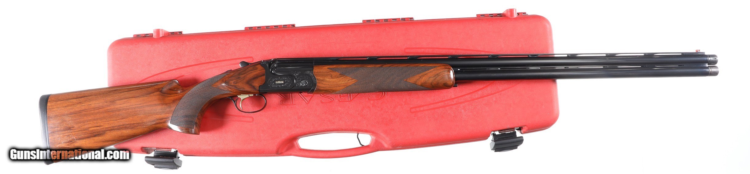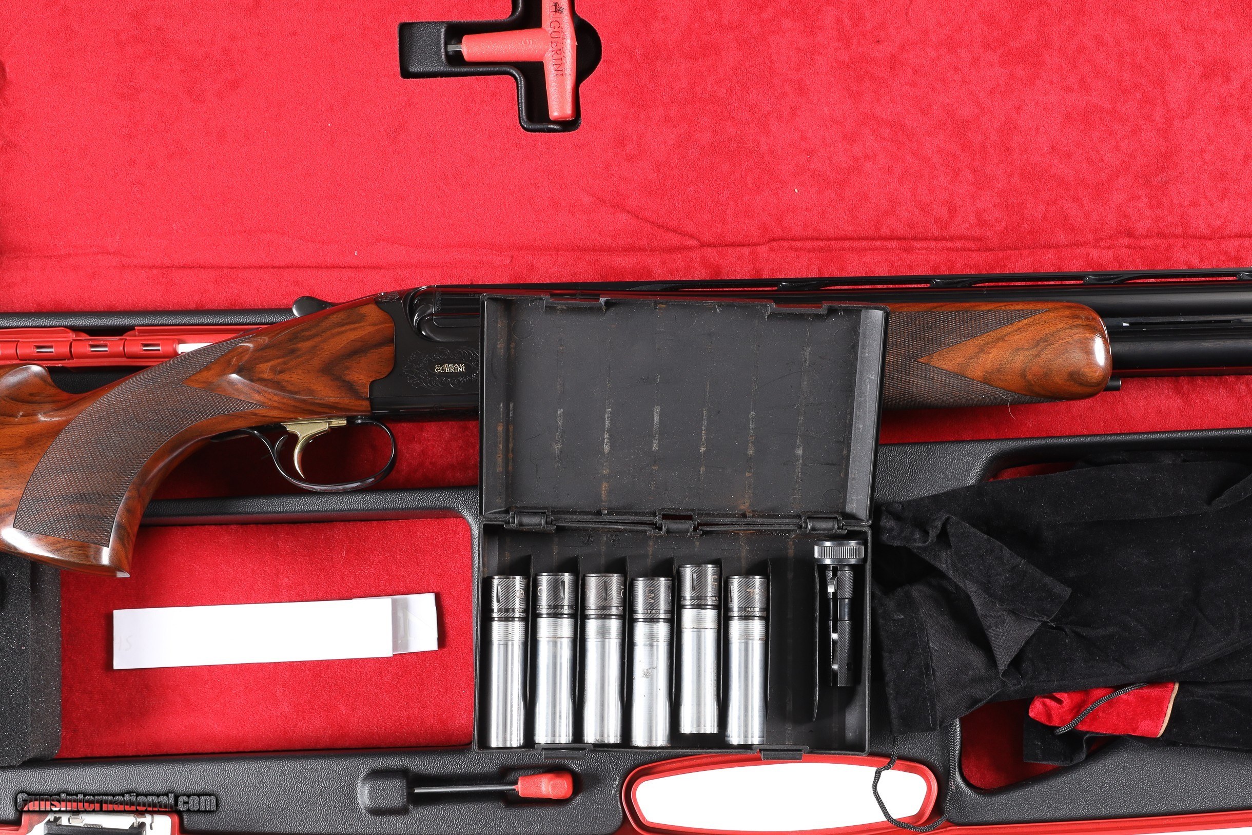 Description: Caesar Guerini Summit Sporting Clays over / under 12 ga shotgun with high polished blue finish, scroll engraved receiver with gold inlaid company mono gram and model on underside. Varnished, highly figured checkered pistol grip sporting clay stock with matching forearm. Full set of 8 interchangeable factory choke tubes w/ wrench and housed in factory locking luggage case with travel sleeves. Condition: Very fine with bright bores and metal retains over 98% factory blue. Stocks are excellent with some light handling marks. Action operates properly and locks solidly. 15" LOP over factory 3/4" recoil pad. 1-3/8" DAC 2-1/8 DAH. 2-3/4" chamber. Mfg in 2018. Slight left hand cast, 4 lb trigger pull, weight is 8 pounds 8 ounces. • Free Shipping, No Credit Card Fees. • Lay-a-way available for this firearm. • 1/3 Down, a 1/3 in 30 Days, 1/3 in 60 Days. SOLD Manufacturer: Caesar Guerini Model: Summit Serial Number: 156033 Barrel Length: 31 3/4 Bore: 12 Ga, Chambers: 2 3/4 Ejectors: Yes Condition: Excellent Metal Condition: Excellent Wood Condition: Excellent Bore Condition: Bright Barrels: 31 3/4 Barrel Type: Over Under Action: Box Lock Triggers: Single Selective Stock: Checkered Walnut Stock Comb: 1 3/8 Stock Heel: 2 1/8 LOP: 15 Rib: Vent Finish: Blue Sights: Bead Manufacture Date: 2018 Chokes: Interchangeable Tubes Extras: Luggage Case / Tools |
