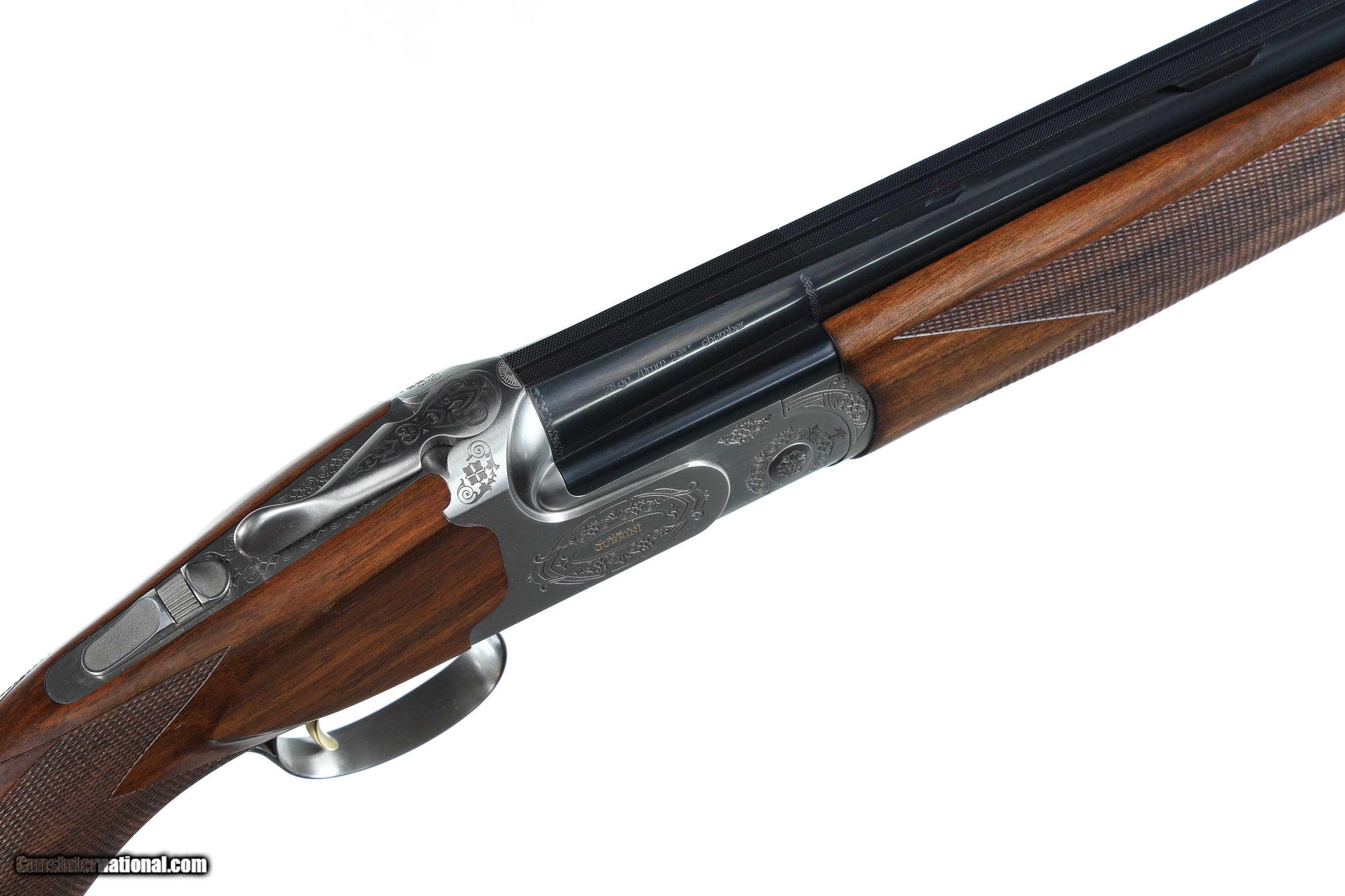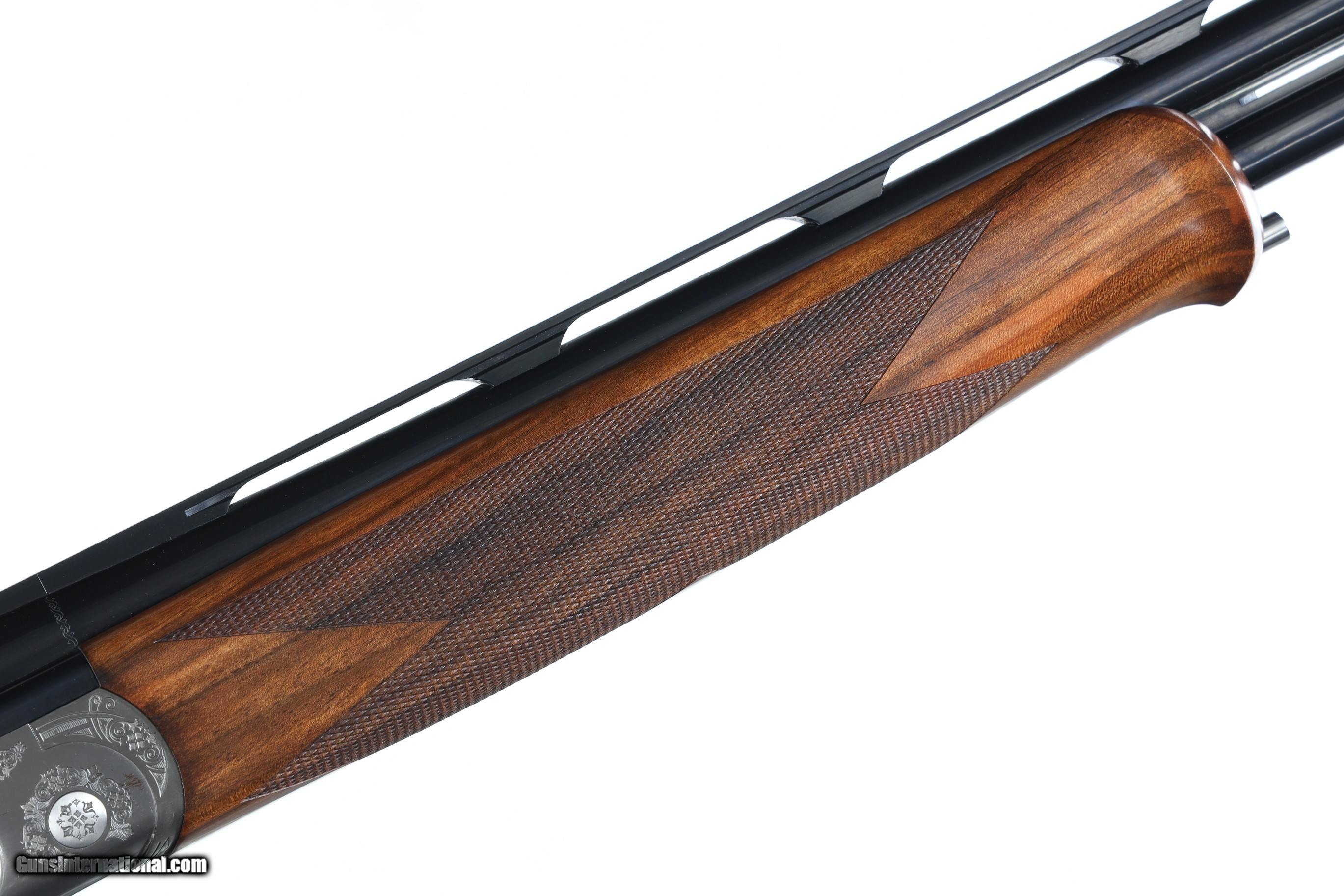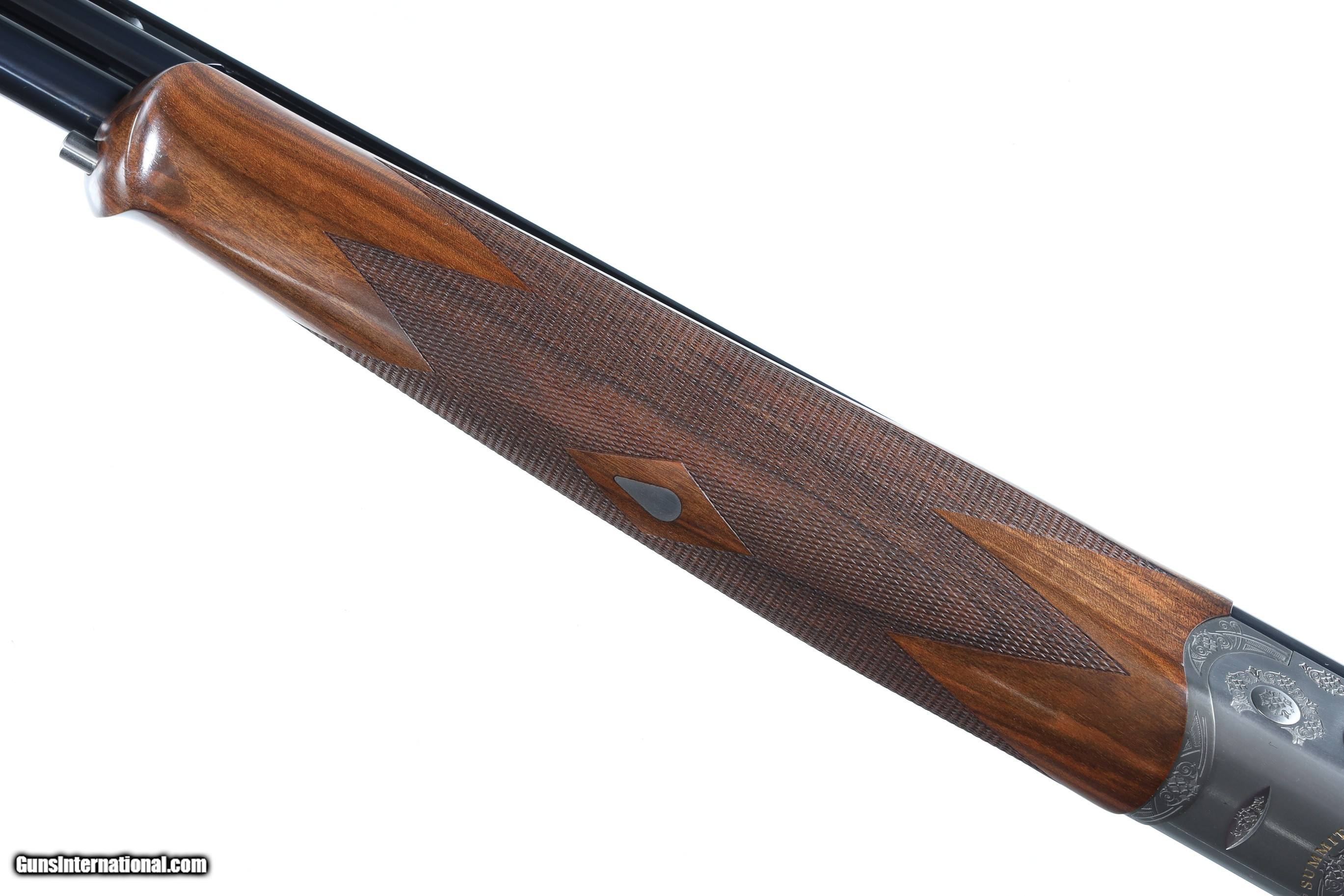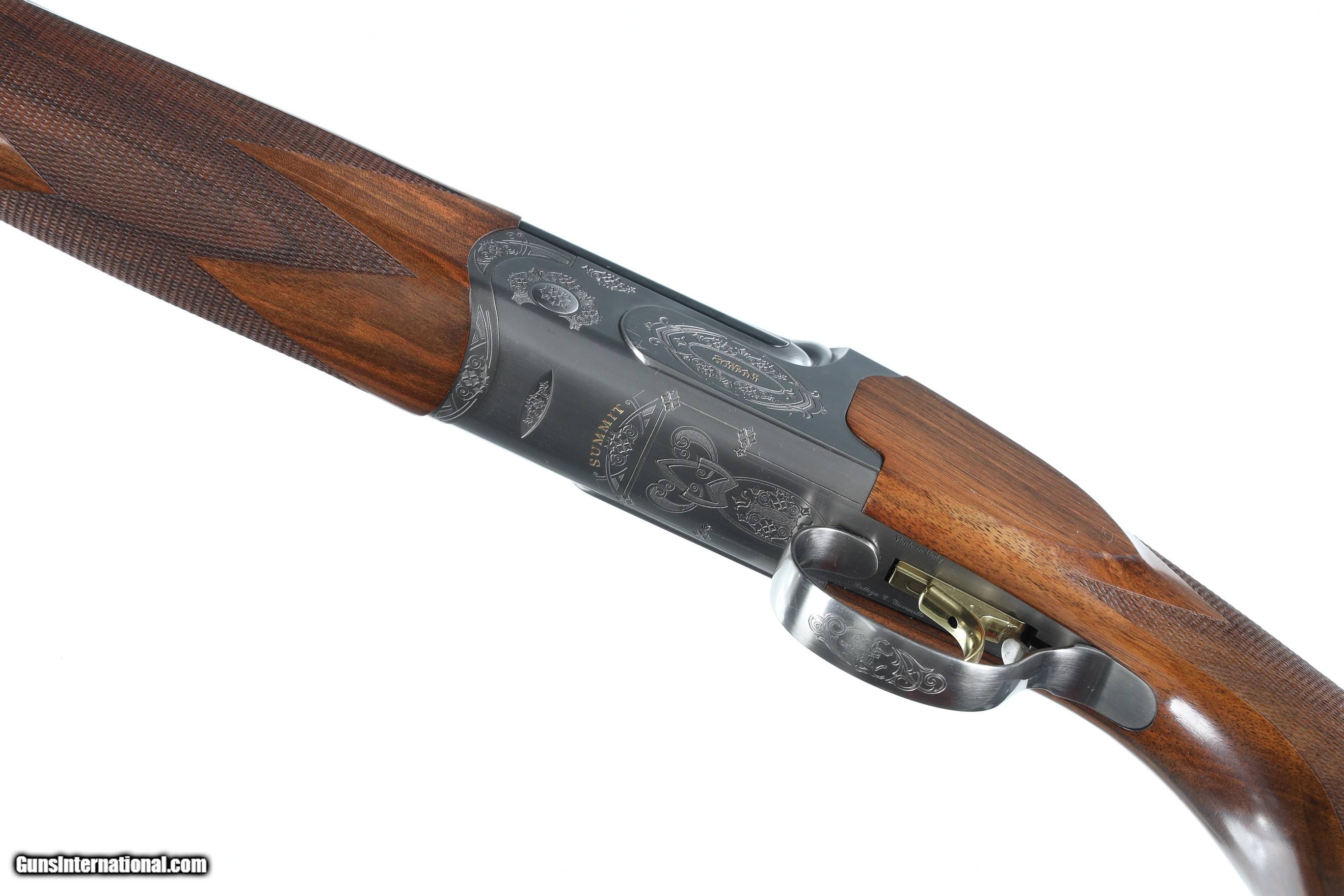 Description: Vent rib barrels with interchangeable choke tubes, 2 3/4" chambers. Single selective trigger with automatic ejectors. Wide sporting vent rib with dual sight beads. Coin finished receiver with modest rose and scroll engraving with "Summit" on underside in gold with engravers signature Bottega C Giovanelli. Varnished checkered pistol grip with 15" LOP. DAC 1 1/2", DAH 2 3/8". Excellent overall condition to near new with little use evident. Housed in factory travel case with full complement of choke tubes, wrench, and instruction manual. Case is like new. Mfg in 2015 • Free Shipping, No Credit Card Fees. • Lay-a-way available for this firearm. • 1/3 Down, a 1/3 in 30 Days 1/3 in 60 Days. SOLD Manufacturer: Caesar Guerini Model: Summit Serial Number: 144567 Barrel Length: 32 |