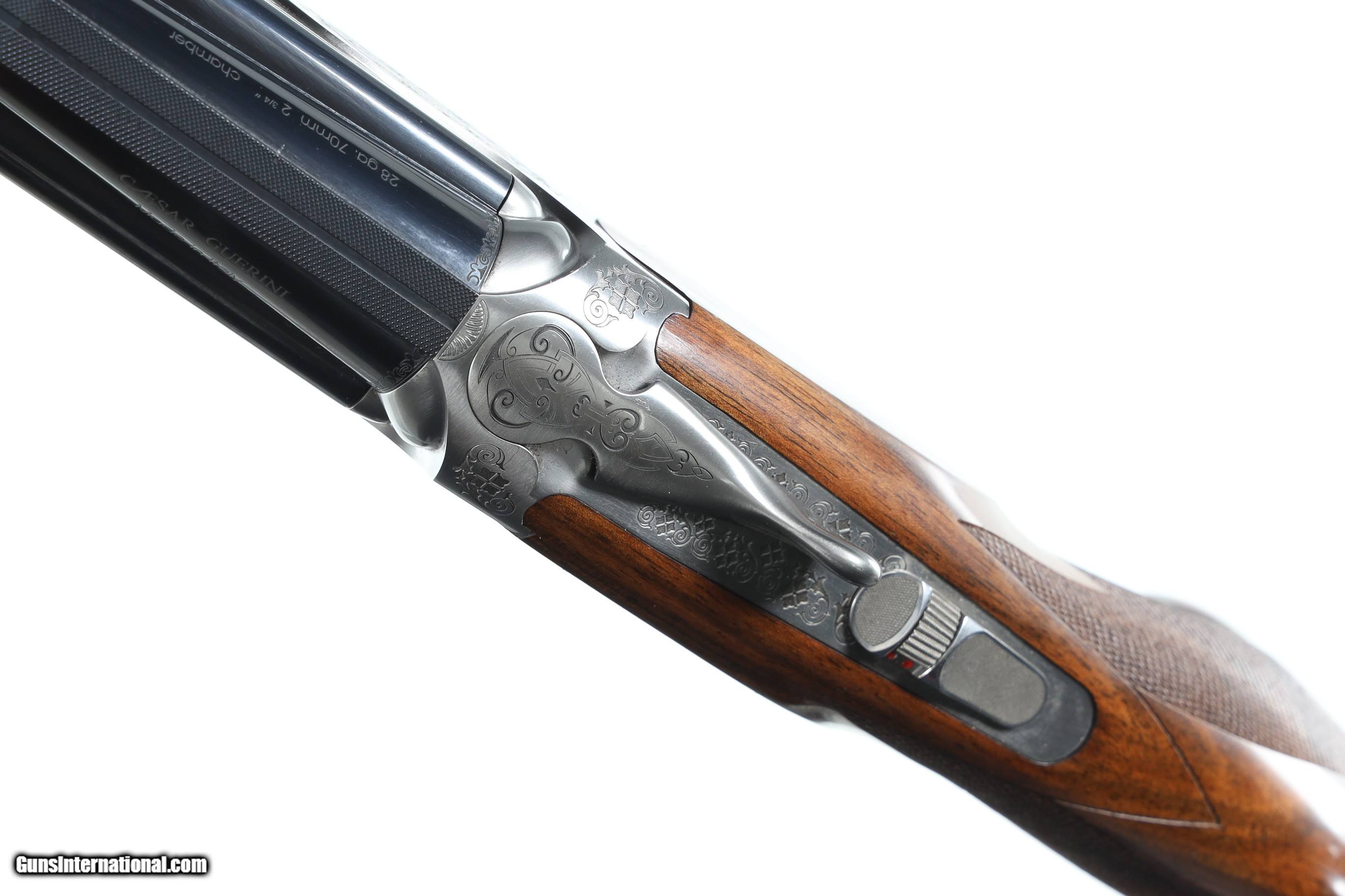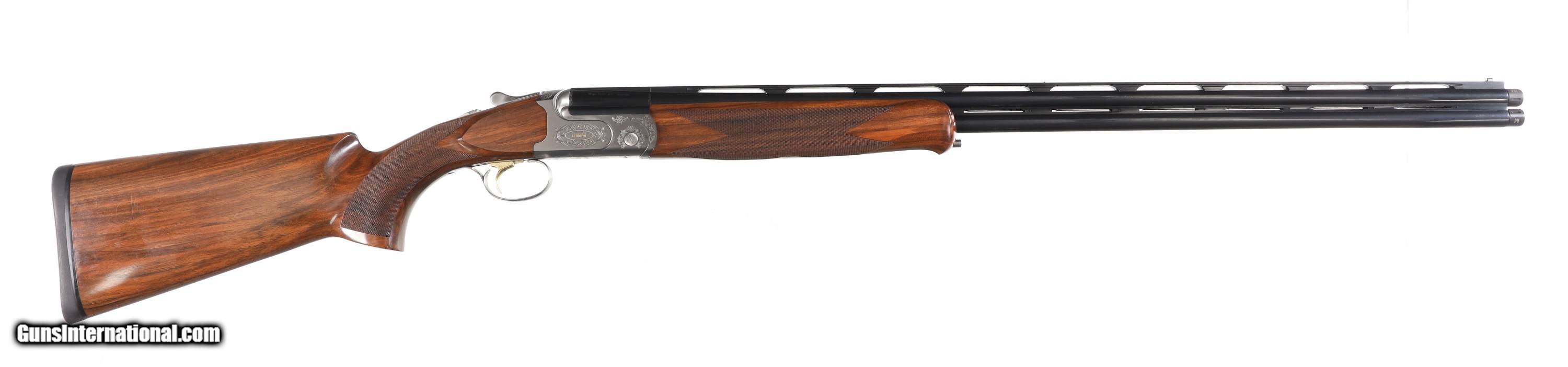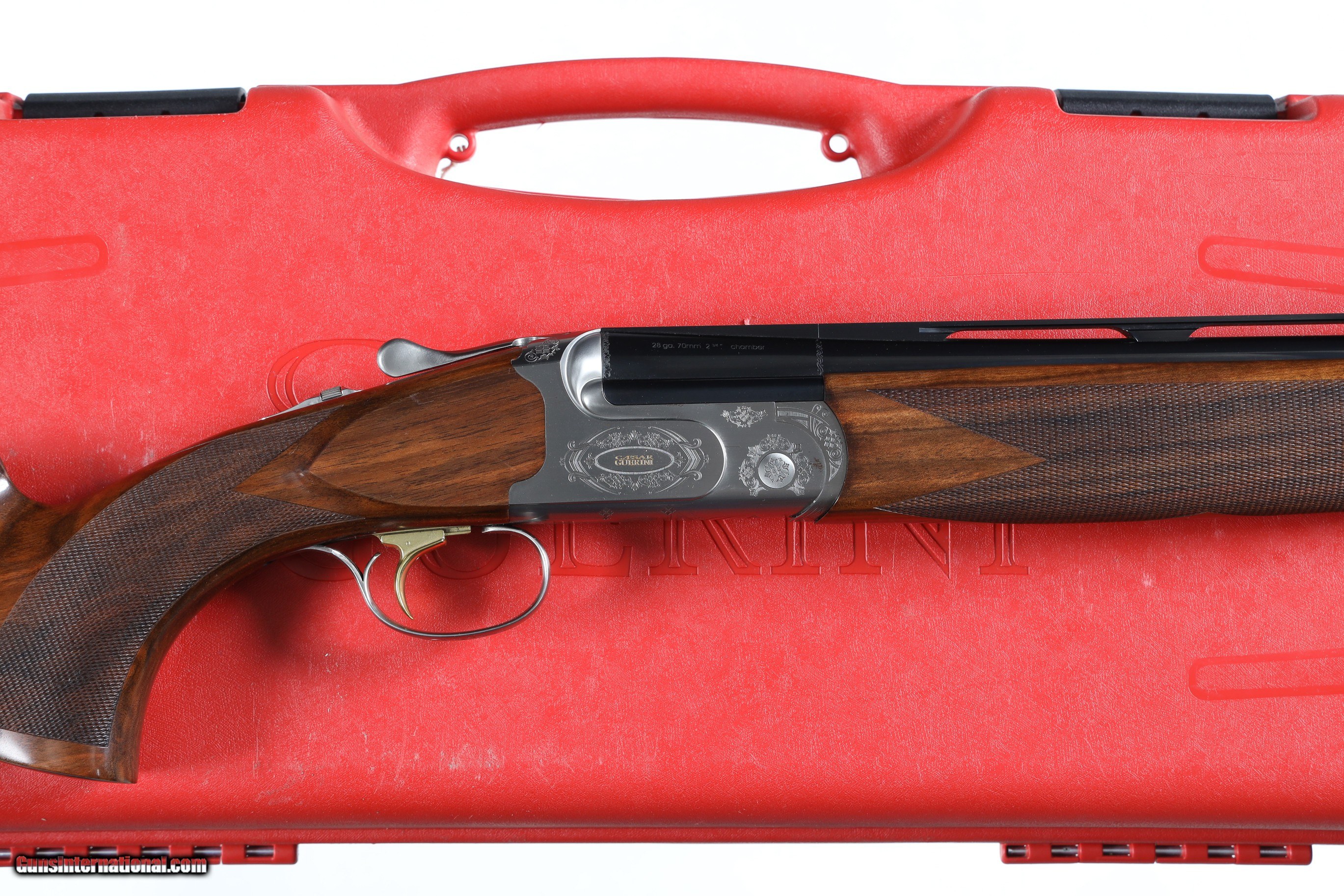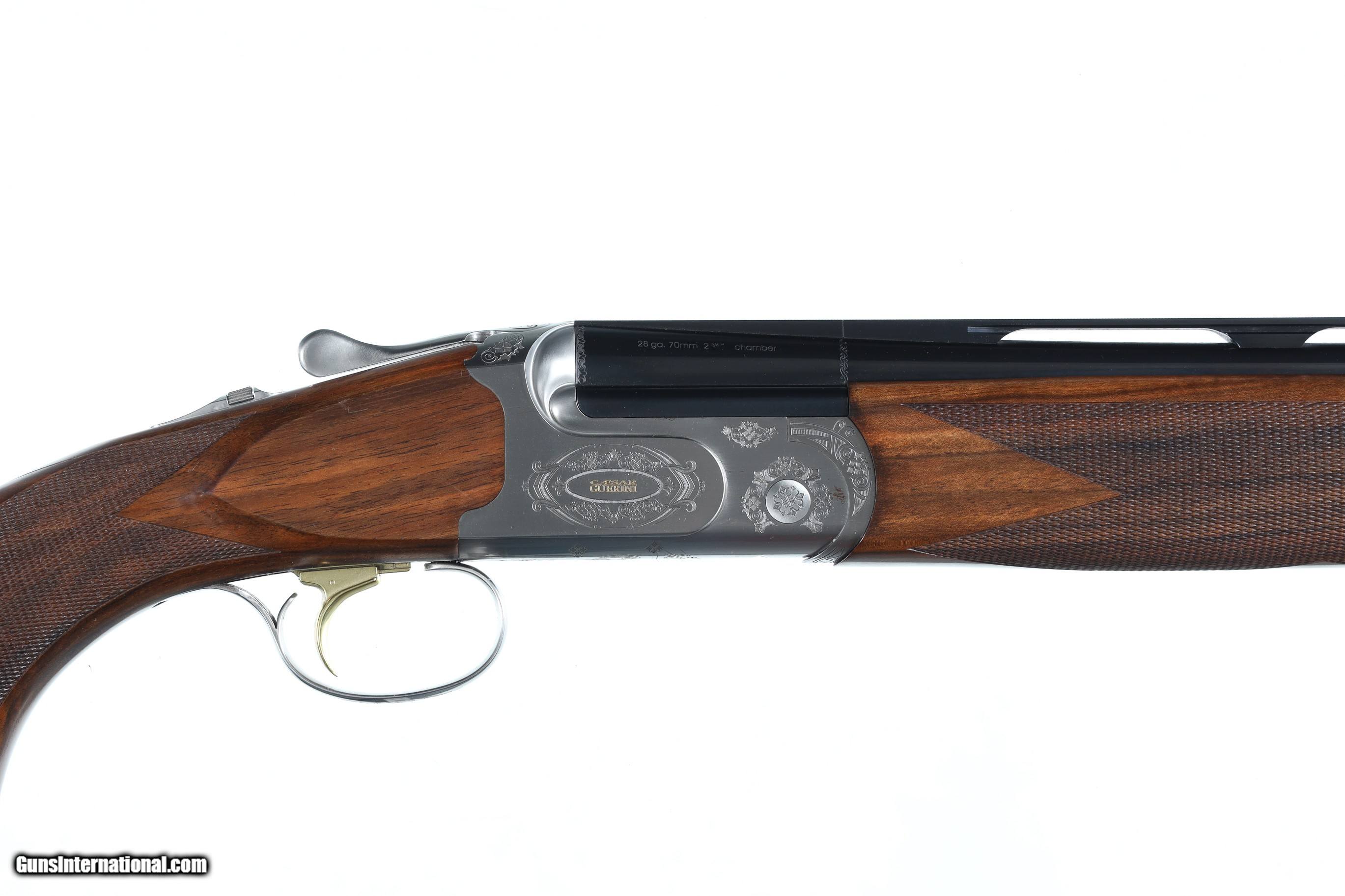 Description: Vent rib barrels with interchangeable choke tubes, 2 3/4" chambers. Single selective trigger with automatic ejectors. Wide sporting vent rib with dual sight beads. Coin finished receiver with modest rose and scroll engraving with "Summit" on underside in gold with engravers signature Bottega C Giovanelli. Varnished checkered pistol grip with 15" LOP. DAC 1 1/2", DAH 2 3/8". Excellent overall condition to near new with little use evident. Housed in factory travel case with full complement of choke tubes, wrench, and instruction manual. Case is like new. Mfg in 2015 • Free Shipping, No Credit Card Fees. • Lay-a-way available for this firearm. • 1/3 Down, a 1/3 in 30 Days 1/3 in 60 Days. SOLD Manufacturer: Caesar Guerini Model: Summit Serial Number: 144567 Barrel Length: 32 |