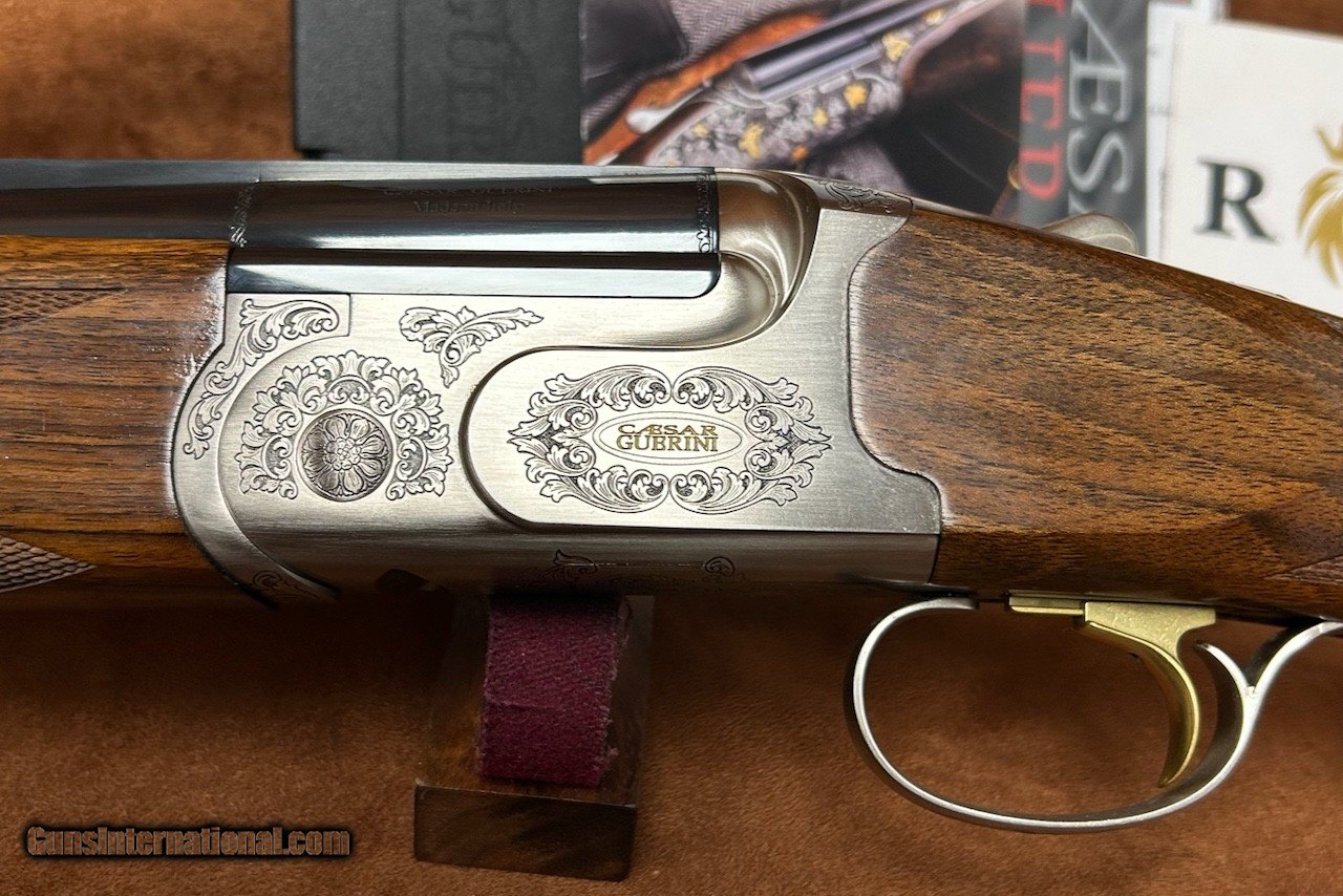 Description: Just Arrived at Royal Sporting Arms | Caesar Guerini Summit Sporting 12GA 32" Over-Under Shotgun | NEW The Summit Sporting is an efficient tool designed to accomplish only one task: breaking targets. Every feature is carefully conceived and executed. The receiver is designed to withstand a lifetime of competitive shooting. When you compare the thick receiver walls and large bearing surfaces with any other over and under, it becomes clear this gun is designed for durability. No matter how unlikely they are to wear out, the trunnions and locking lugs can be easily replaced. The stock includes palm swell, cast off, and toe rotation for either a right or, as an option, a left hand shooter. Each barrel length is designed to balance perfectly while offering stability, and the 12 gauge models feature our new Maxis Bore and Choke System. Features of the Caesar Guerini Summit Sporting 12GA 32" | 25070071: