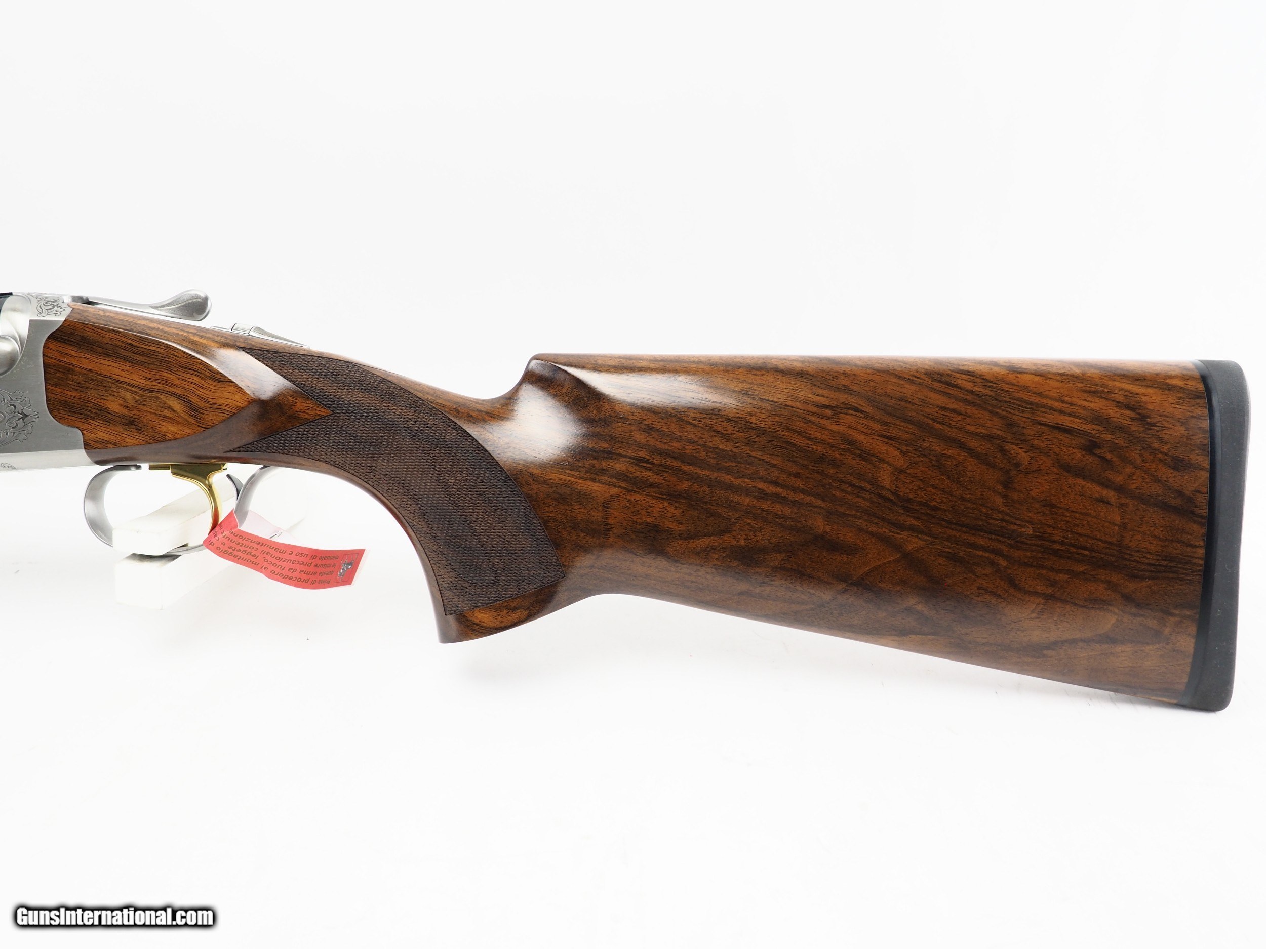 Description: Book #184. MSRP: $3995.00 (call for competitive pricing). The Summit Sporting is Caesar Guerini's workhorse flat rib gun that performs equally well on the skeet and sporting clays fields. Quite honestly, we find it hard to beat the Summit's combination of durability, aesthetics, and handling in the $3k-$4k price bracket. Add to that the truly top-shelf service and support of the CG gunsmith shop, and you have product value that remains untouched in the industry. For smaller-statured shooters, the Summit Compact is available. Drop at comb: 1.5" Drop at heel: 2.25" Length of pull: 14.75" Cast at heel: .12" Cast at toe: .2" Pitch: 5° Gauge: 12 Barrel length: 32" Avg. Weight**: 8lbs. Receiver finish: Hand polished coin finish with Invisalloy™ protective Stock Finish: Hand rubbed oil Checkering: 26 lines per inch Recoil Pad: Black rubber Chamber: 2 3/4" Top Rib Width: 10mm (.4") parallel and ventilated Rib Height*: 6mm Center Rib: Ventilated Forcing Cones: 5" DuoCon Avg. Barrel Weight: 32"-1.52kg (3.35lbs.) Avg. Bore: .735, Chrome lined Chokes: C, SK, IC (x2), LM, M Sight(s): White Bradley style front - Silver center bead Fore-end: Schnabel Trigger: New DTS trigger system with length of pull adjustments. Factory selective release triggers available in single and double release for 12ga Safety: Manual (automatic is optional) Accessories: Stock and trigger wrench, choke case, friction choke wrench Case: Plastic hard case with fit interior and velvet stock sleeve and barrel sleeve SOLD |