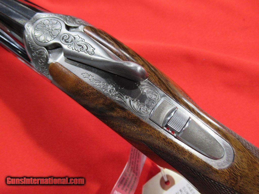 Description: Coin finished receiver, nicely figured stock and schnabel forend, vented side ribs, parallel flat rib, six extended Maxis choke tubes, adjustable trigger, factory hard case. SOLD |