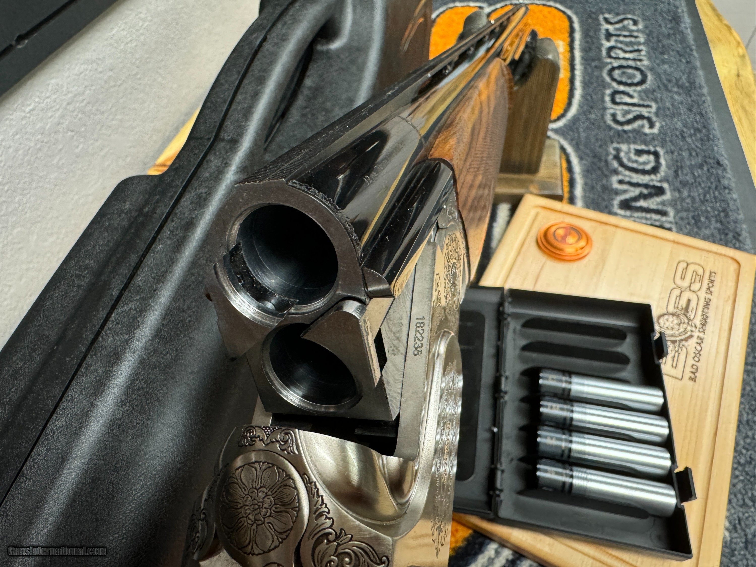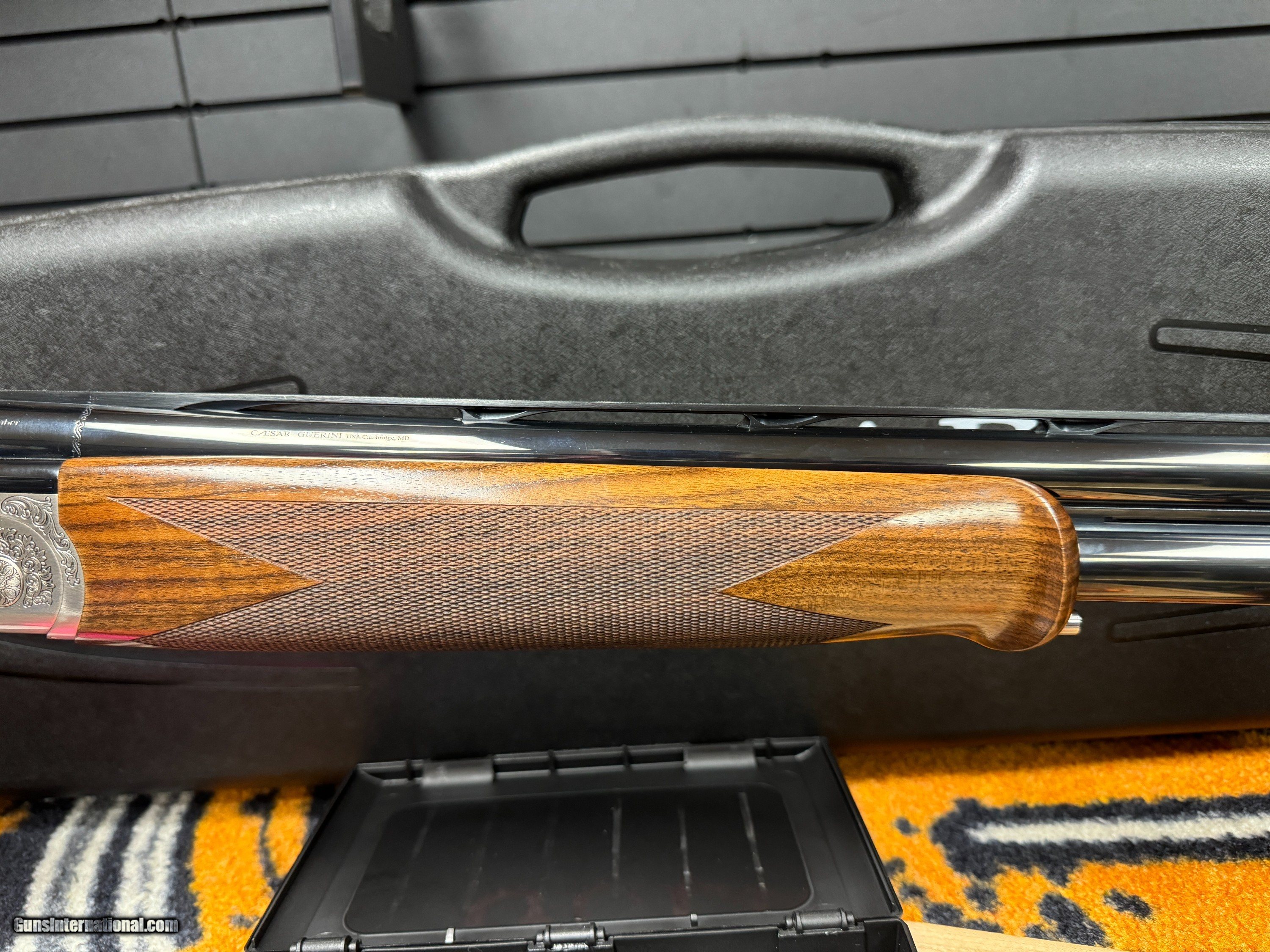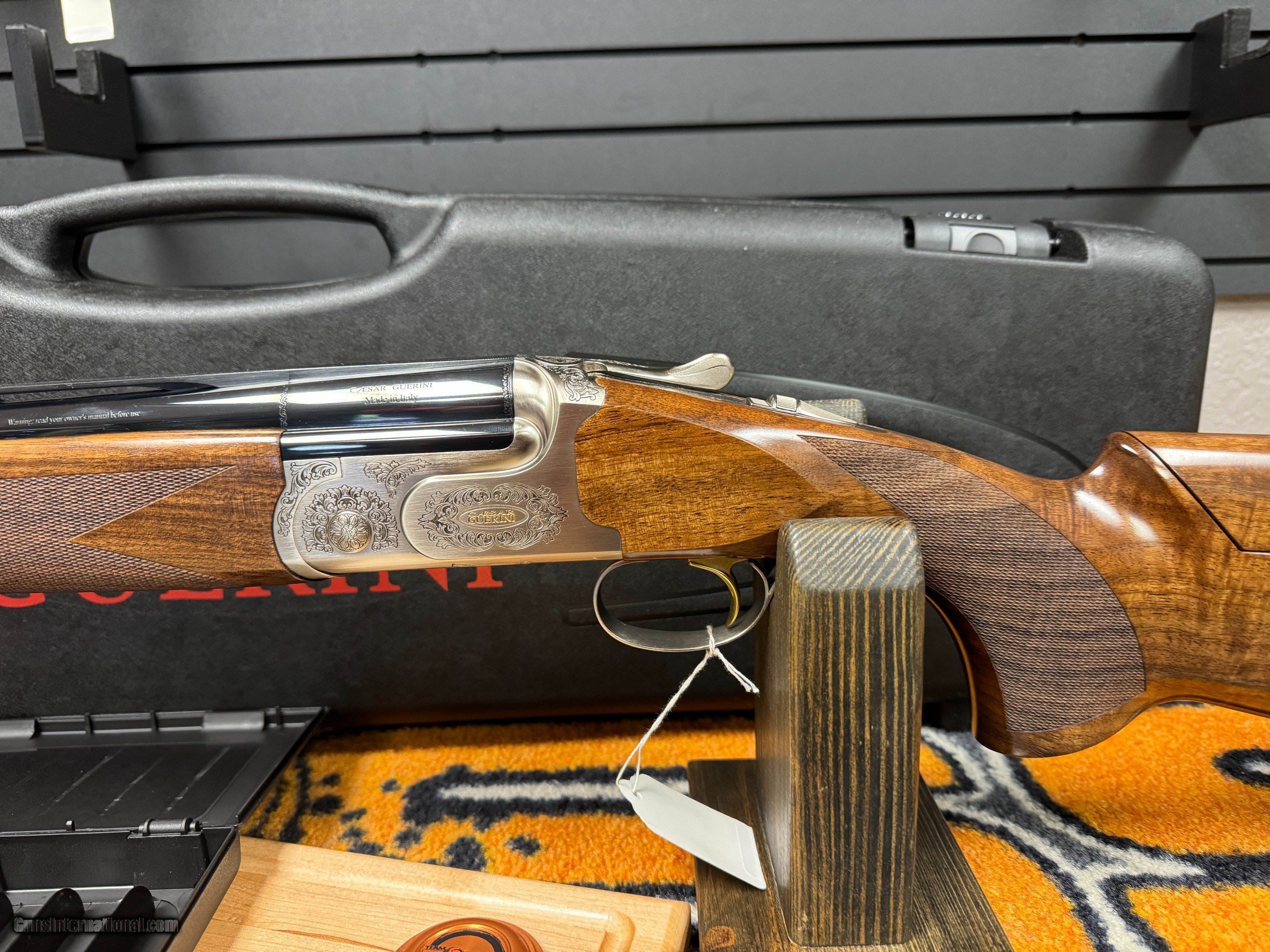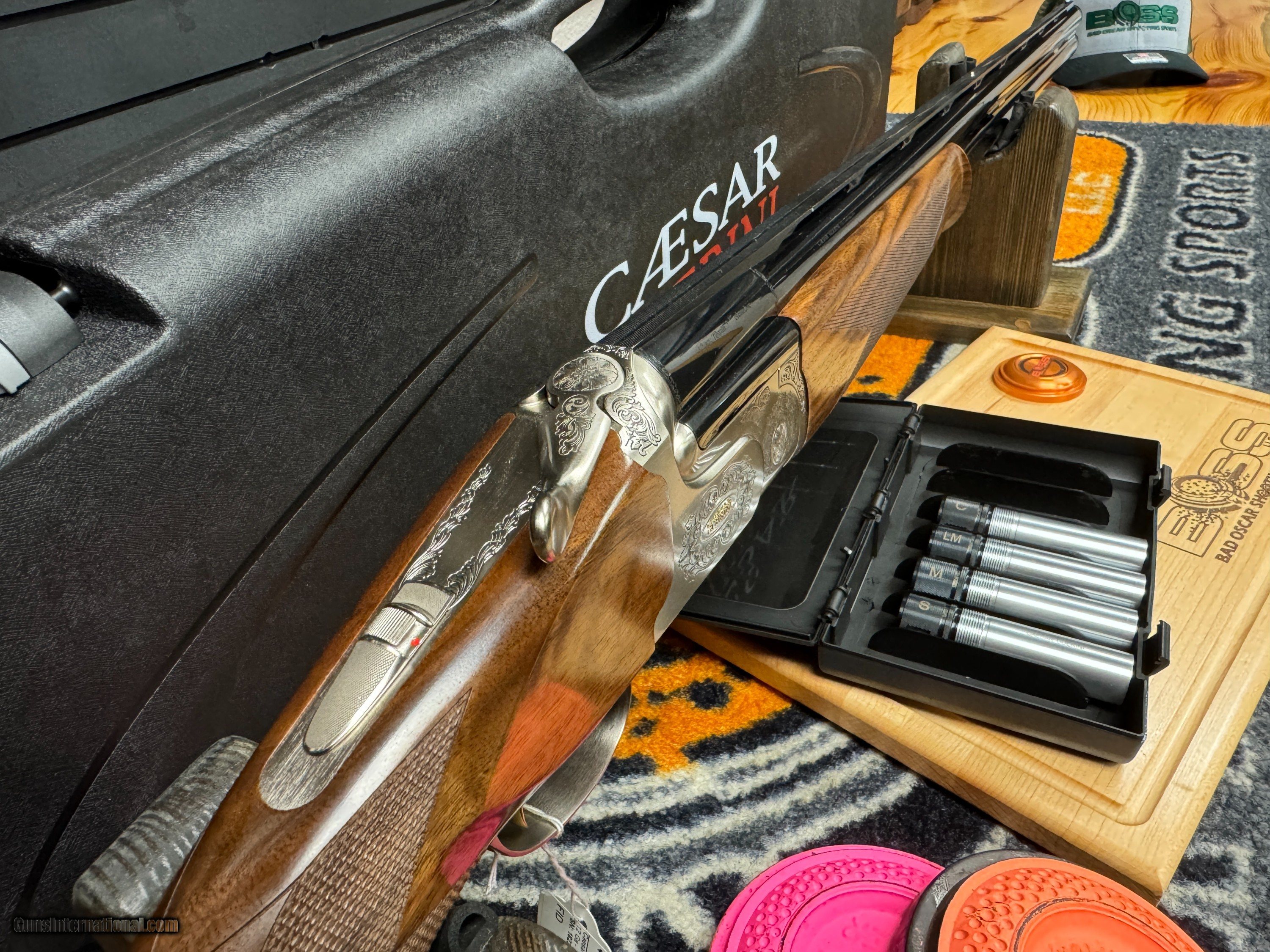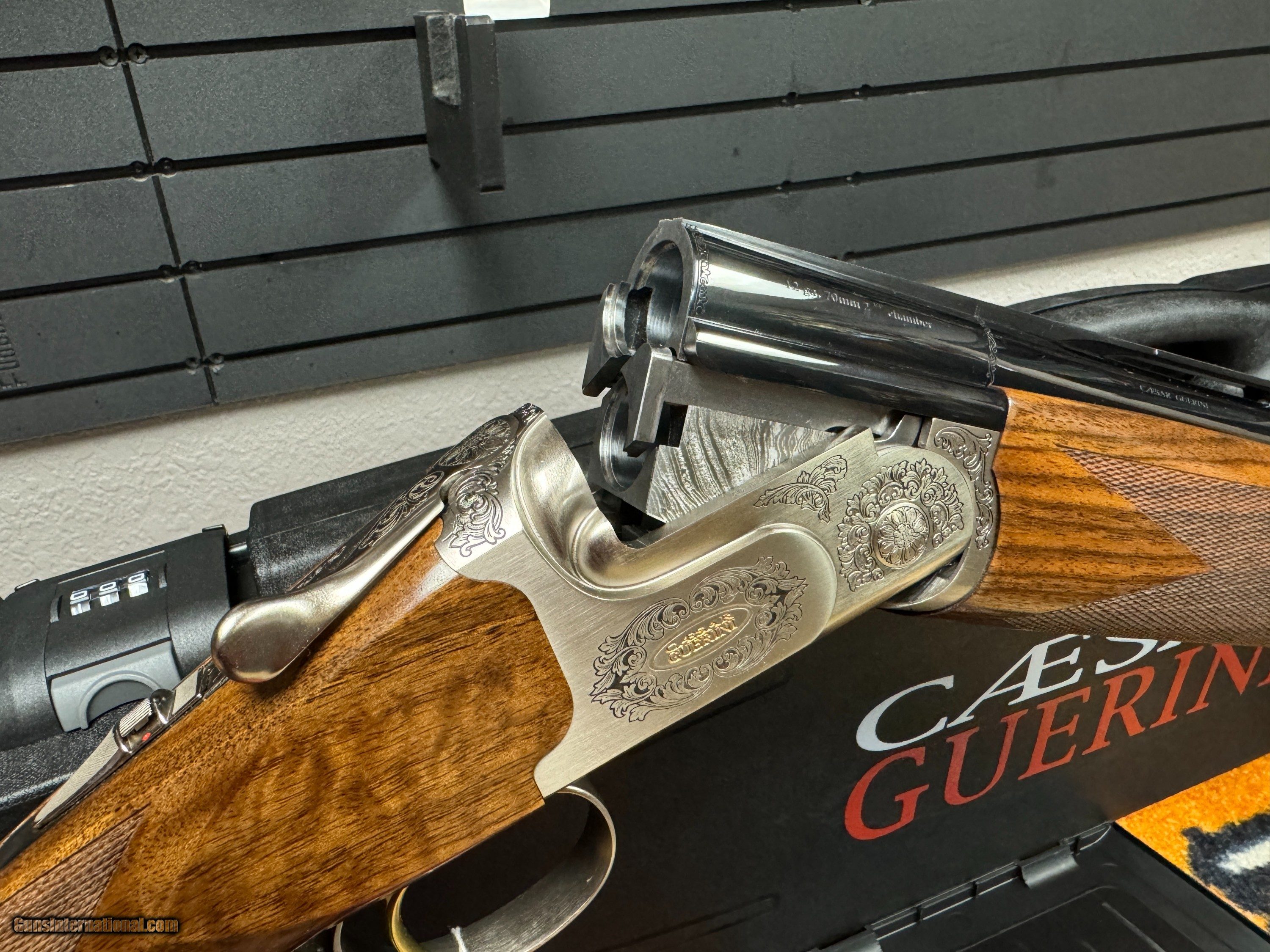Description: New Arrival - NEW IN BOX - Caesar Guerini Summit Sporting 32" Adjustable Comb This beautiful BRAND NEW Caesar Guerini Summit Sporting is here to adorn our shelves. Designed to break targets and look good while doing it, this competition shotgun is the perfect addition to your collection. Using only the strongest and most durable materials this gun is built to last, and with the Pit Stop Program (included with purchase) it is sure to be a life long purchase. The Summit Sporting is a worthy acquisition for the competitive clay target shooter looking to up their game! Included: . DTS trigger system with two trigger pull weight options, take up, over travel and length of pull adjustments. . Adjustable Comb . Adjustable Reach . 6 MAXIS Competition Chokes . Fitted Negrini Hard Case . Caesar Guerini Pit Stop Program For more information contact Bad Oscar Shooting Sports at 715-388-8411 and ask for Don! SOLD Shotgun Gauge: 12 Gauge Manufacturer: Caesar Guerini Model: Summit Sporting Serial Number: 182238 Bore: .735, Chrome lined Chambers: 2 3/4 Ejectors: Automatic Condition: MINT IN BOX Barrels: Over Under Action: Break Triggers: DTS trigger system Stock: Hand rubbed oil finsih Stock Comb: 1.5" Drop at Comb Stock Heel: 2.25" Drop At Heel Stock Cast: 0.15 Cast at Heel Fore End: Schnabel Butt Pad: Black Rubber LOP: 14.75" (adjustable) Rib: Width 10mm (.4") parallel and ventilated Finish: Hand rubbed oil Weight: 8lbs Sights: White Bradley style front Silver center bead Manufacture Date: 2024 Chokes: 6 MAXIS Competition Chokes Case: Negrini Fitted Hard Case Item Location: Wisconsin |