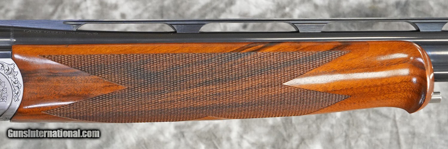 Description: Pre-Owned Caesar Guerini Summit Sporting .410 Bore with 32" factory choke tubed barrels, flat-tapered sporting rib. Silver nitride finished action with adj. and selective trigger. Factory pistol grip sporting stock with right-hand palmswell and schnabel forearm, handling marks on receiver, minor scuffs. Minor finish wear on stock/forearm, minor scuffs and scratches. Includes case, chokes and tools. SOLD Shotgun Gauge: .410 Gauge |