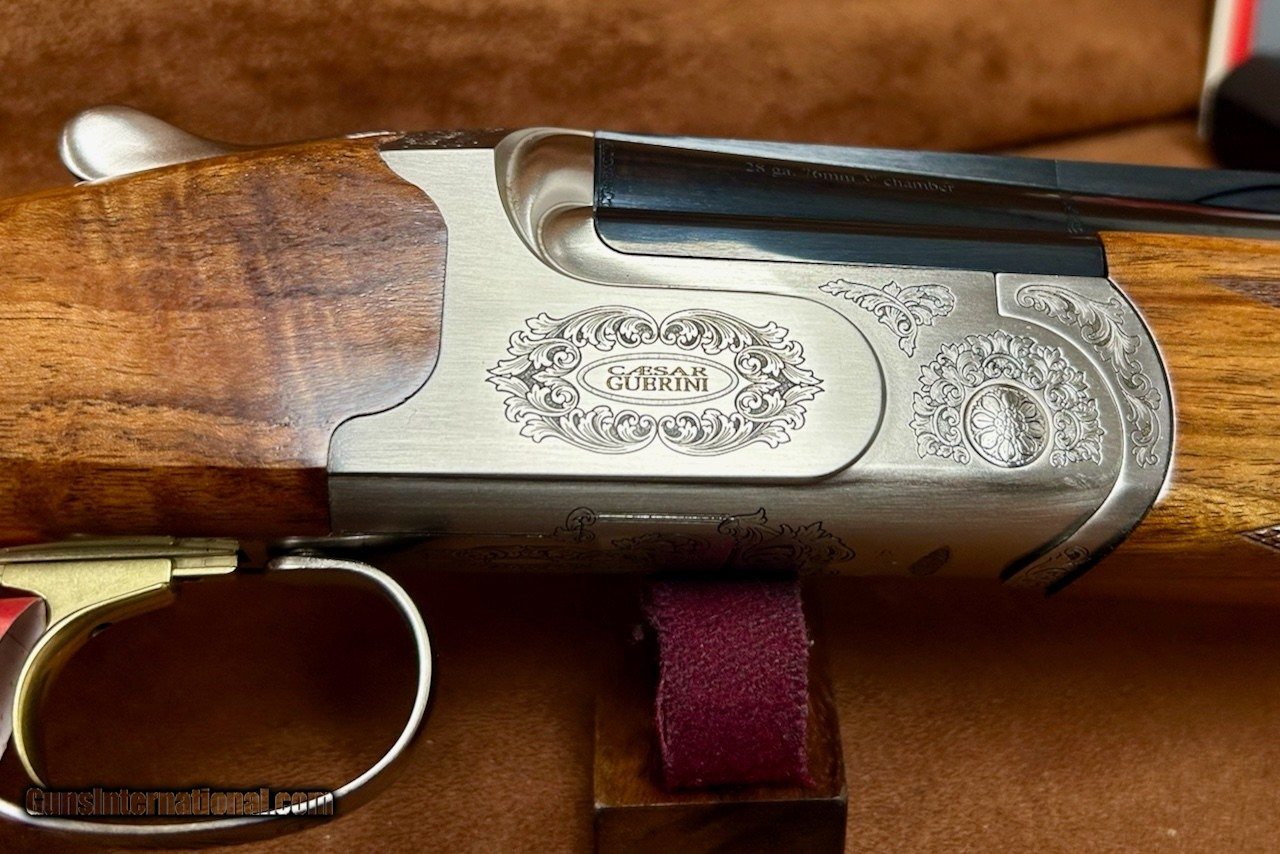 Description: Just Arrived at Royal Sporting Arms | Caesar Guerini Summit Sporting Adjustable Upgrade 28GA 32" Over-Under Shotgun | NEW The Summit Sporting is an efficient tool designed to accomplish only one task: breaking targets. Every feature is carefully conceived and executed. The receiver is designed to withstand a lifetime of competitive shooting. When you compare the thick receiver walls and large bearing surfaces with any other over and under, it becomes clear this gun is designed for durability. No matter how unlikely they are to wear out, the trunnions and locking lugs can be easily replaced. The stock includes palm swell, cast off, and toe rotation for either a right or, as an option, a left hand shooter. Each barrel length is designed to balance perfectly while offering stability. Features of the Caesar Guerini Summit Sporting Adjustable Upgrade 28GA 32" O/U Left Handed | 25120023: